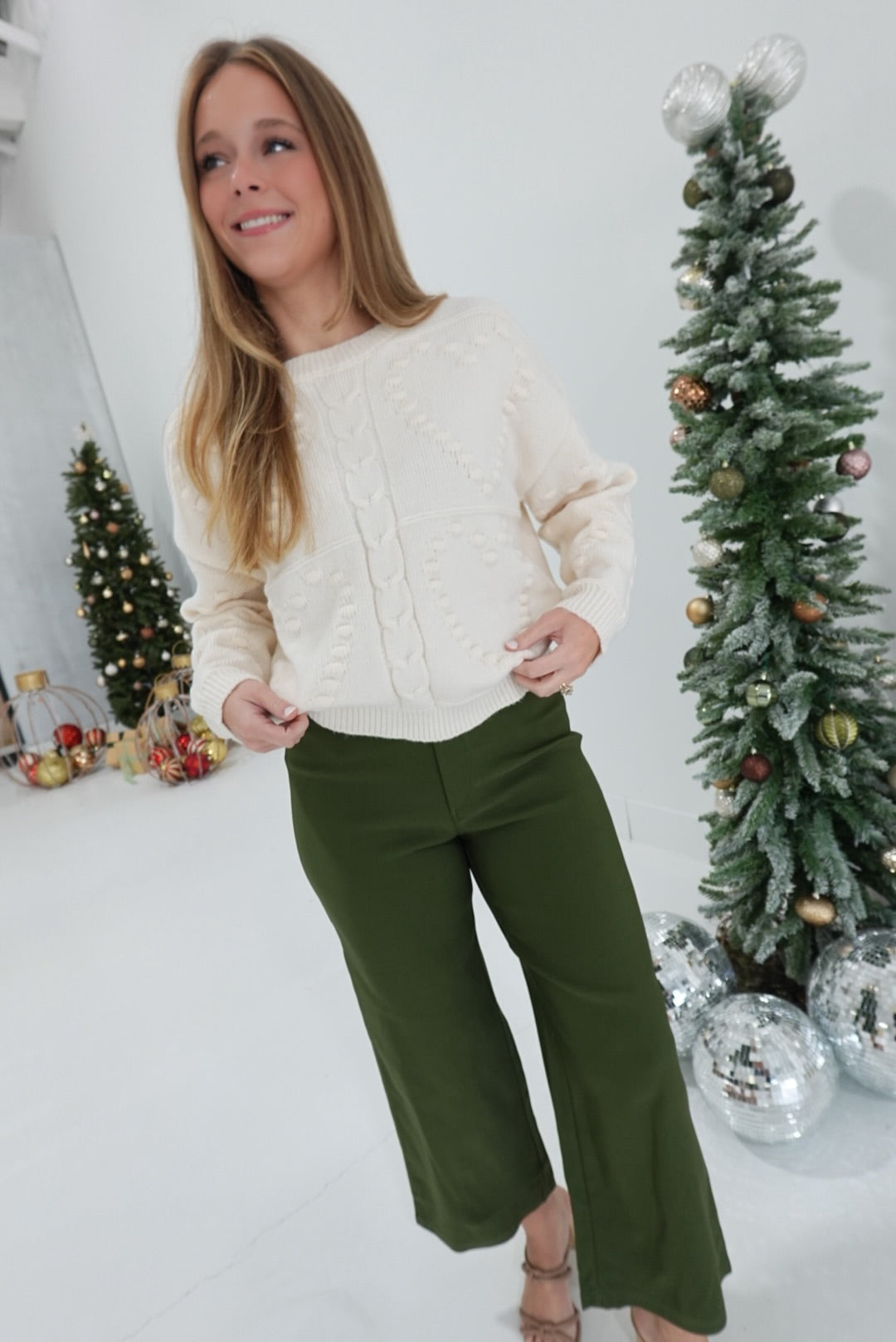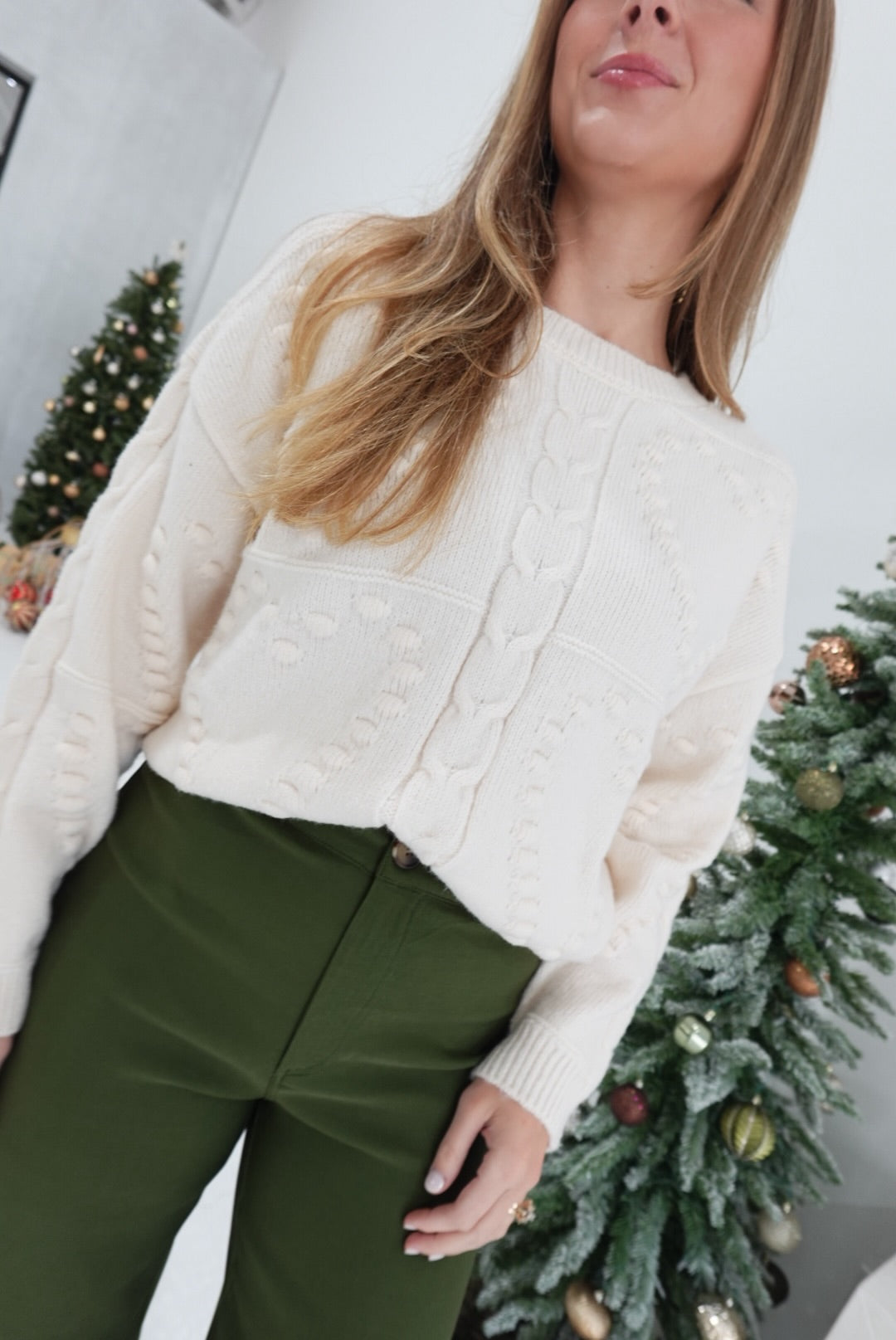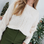 Embrace cozy elegance with the Miranda Motif Cable Sweater. Featuring a charming heart motif knitted into a classic cable design, this long-sleeve sweater offers warmth and style for cooler days. Its soft texture and thoughtful detailing make it a comforting choice for everyday wear. Perfect for layering or wearing on its own, this sweater supports your need for both comfort and subtle charm.