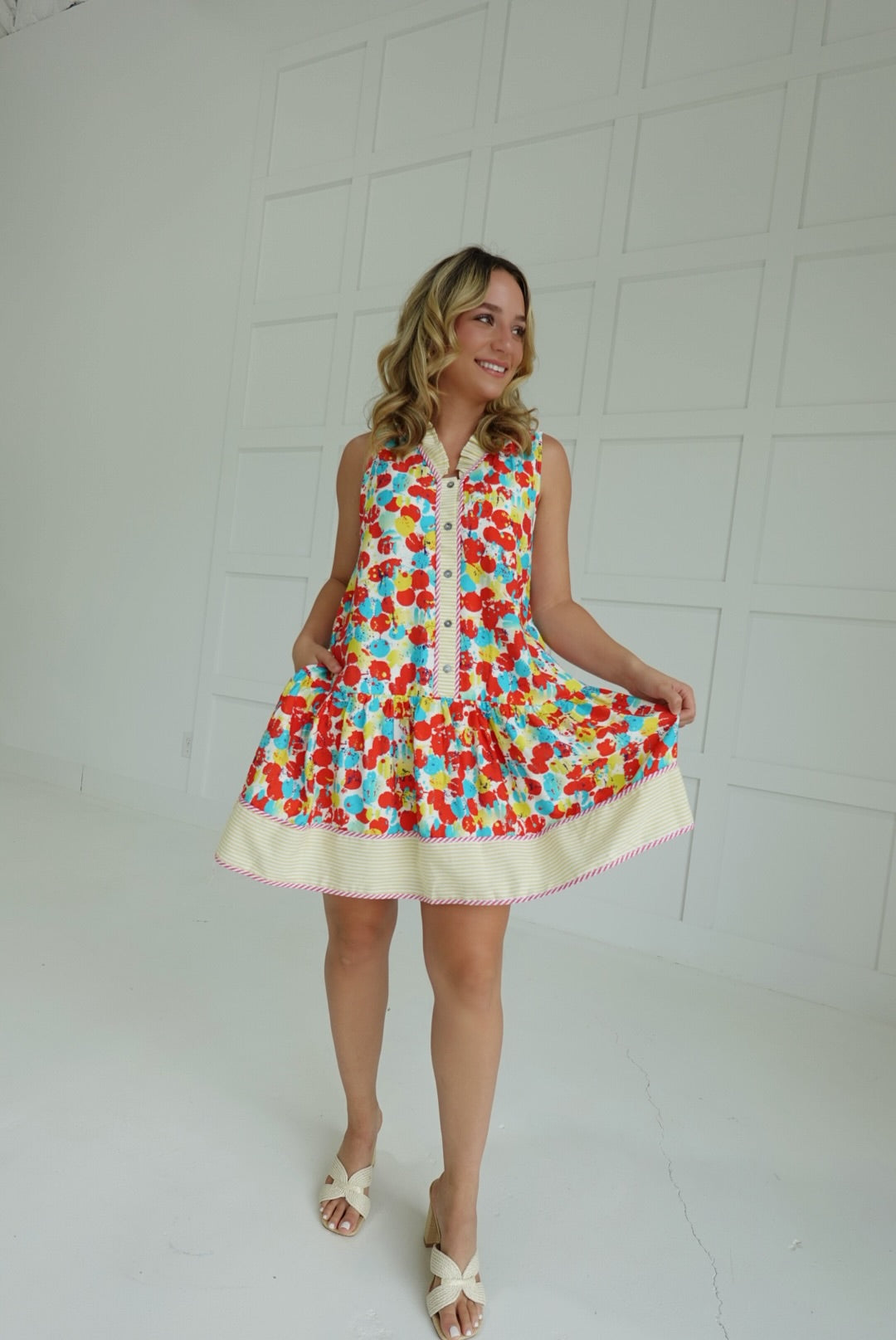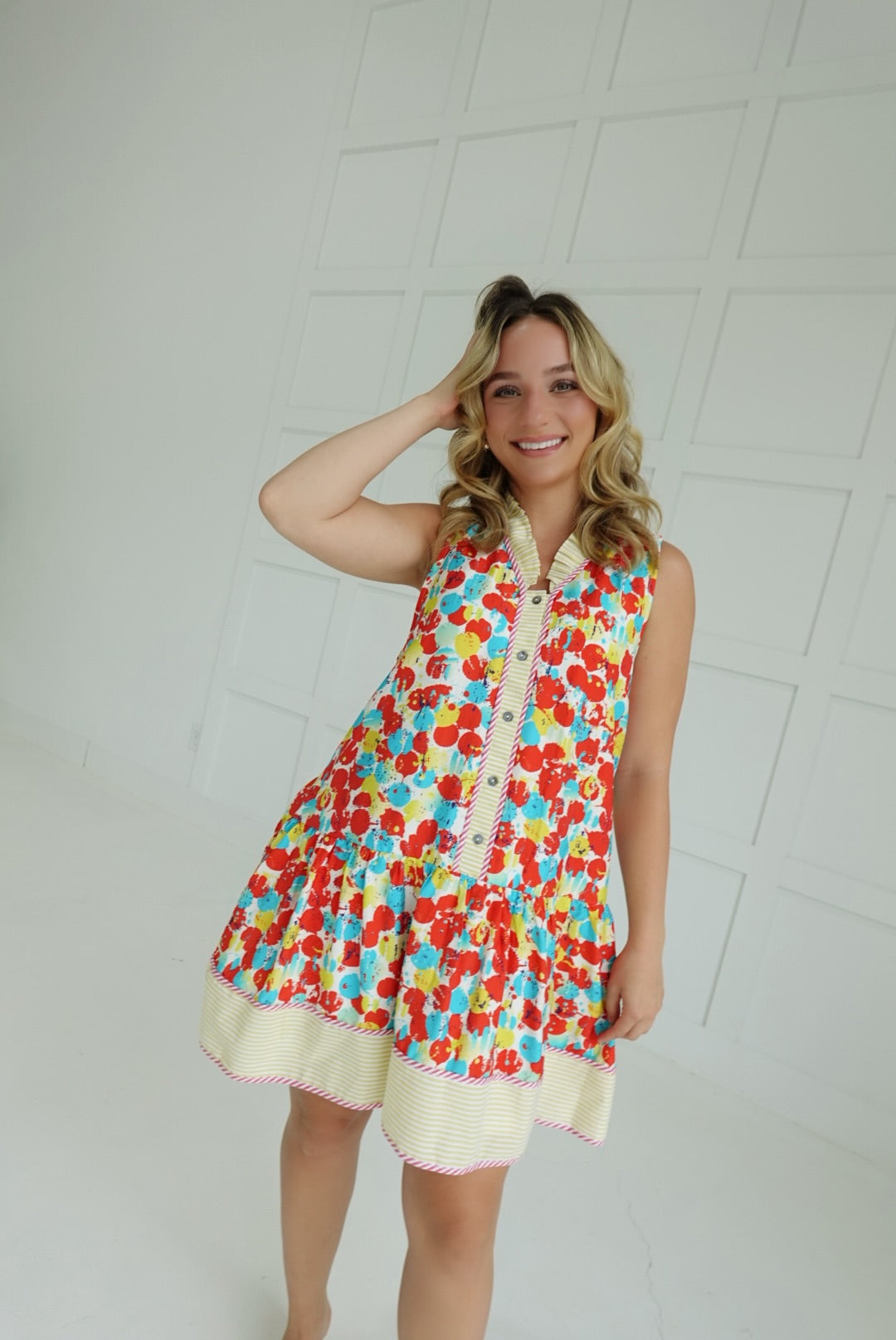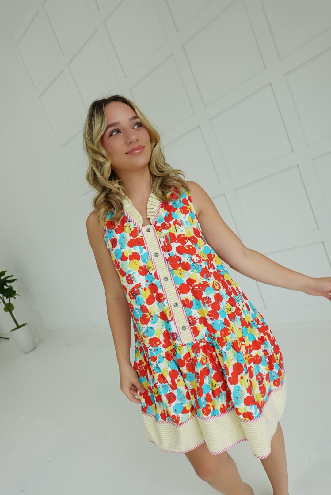 The Miss Hospitality Mini Dress offers a fresh floral design with structured shoulders and short sleeves for a polished look. Its contrast scallop trim adds subtle elegance, while the button-front closure and convenient side pockets enhance functionality. Crafted from lightweight, woven fabric that is fully lined and non-sheer, this dress provides comfort and confidence for any occasion.