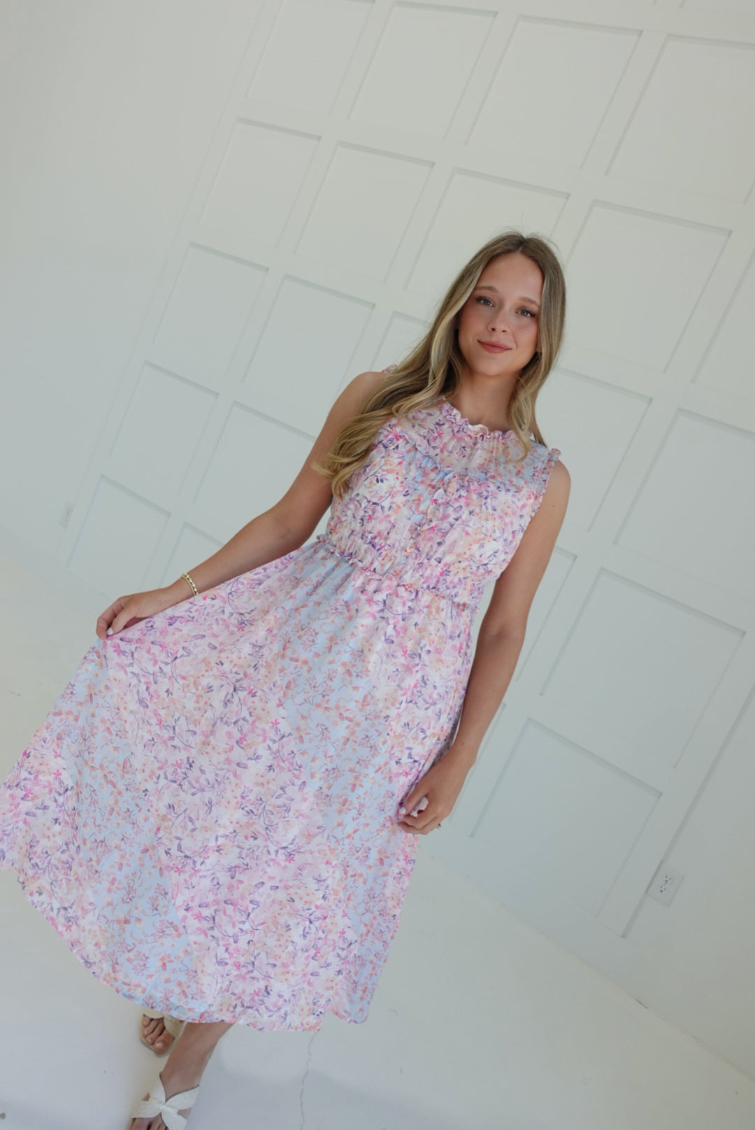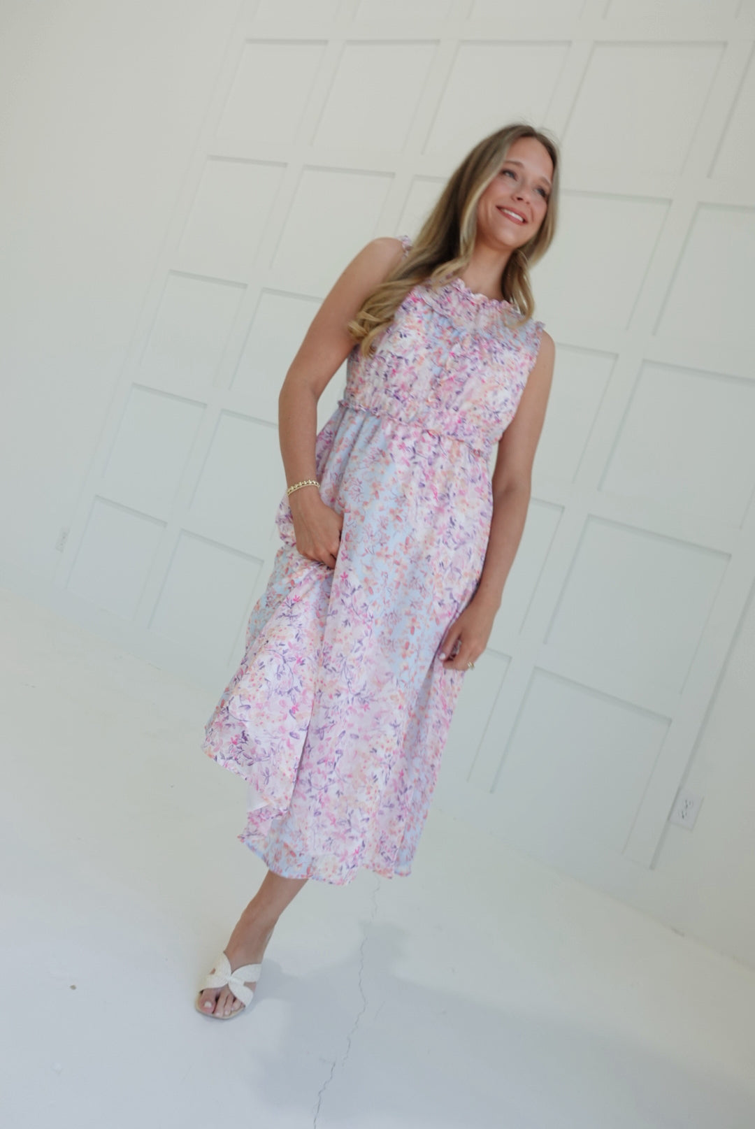 Be a blooming beauty in our Misty Ruffle Midi Dress! With delicate ruffle trim and a stunning floral pattern, this midi dress is perfect for any occasion. It's the ultimate combination of elegance and playfulness!