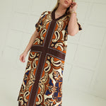 The Moira Printed Maxi Dress commands attention with its bold, eye-catching print and flattering V-neckline. This short-sleeve maxi delivers effortless sophistication—perfect for making a statement at events, dinners, or whenever you want to turn heads. The flowing silhouette skims the body while the vibrant design ensures you'll stand out from the crowd. Versatile enough for day-to-night styling, this dress is a daring essential for women who refuse to blend in.