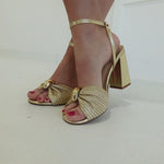 Strut into the spotlight with the Montego Muse Heel—a bold statement piece that refuses to blend in. Featuring a striking gold block heel and an eye-catching braided bow accent, these sandals command attention with every step. The sturdy block heel delivers all-day comfort without sacrificing edge, while the intricate bow detail adds an unexpected twist of sophistication. Perfect for those ready to turn heads and own their moment.