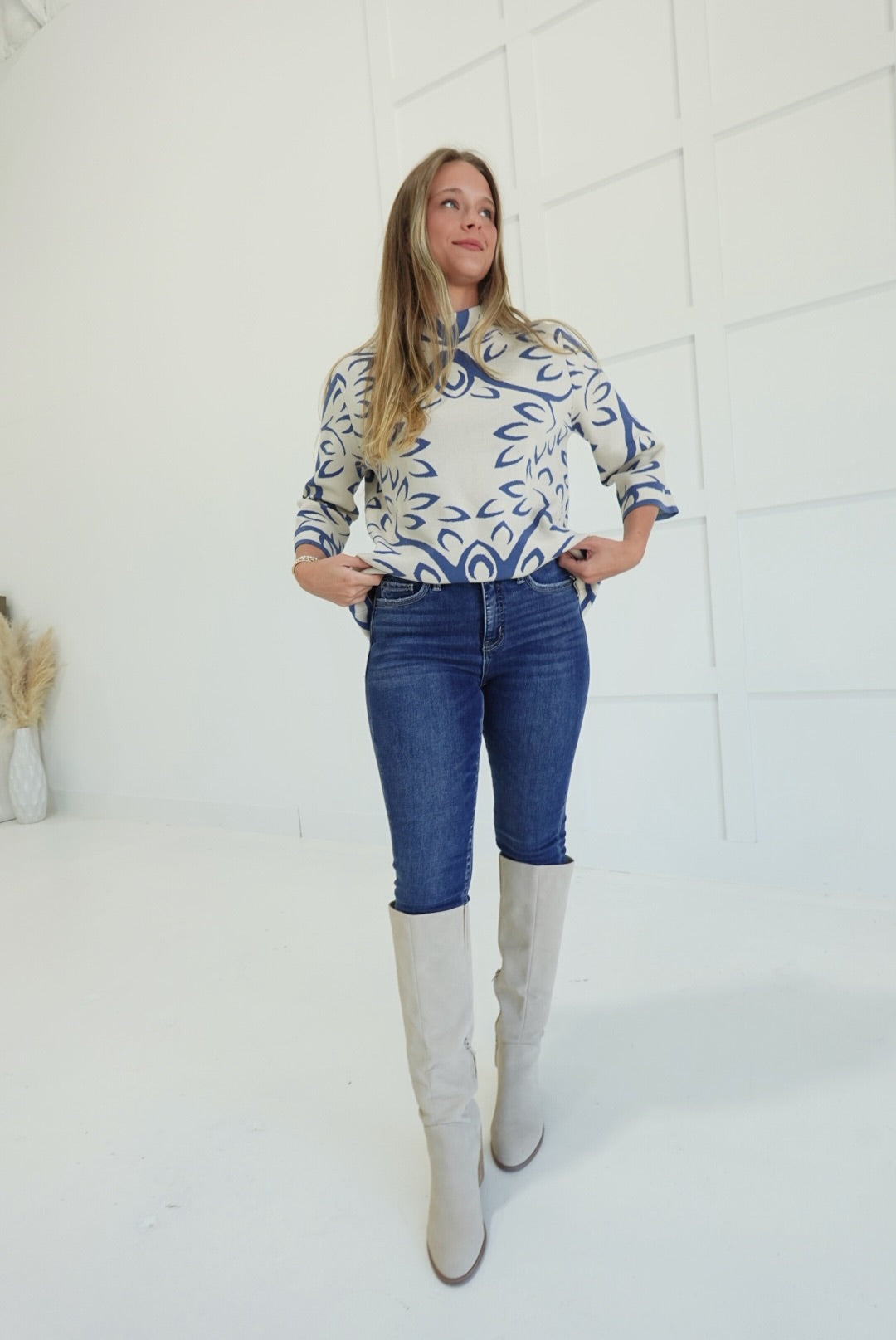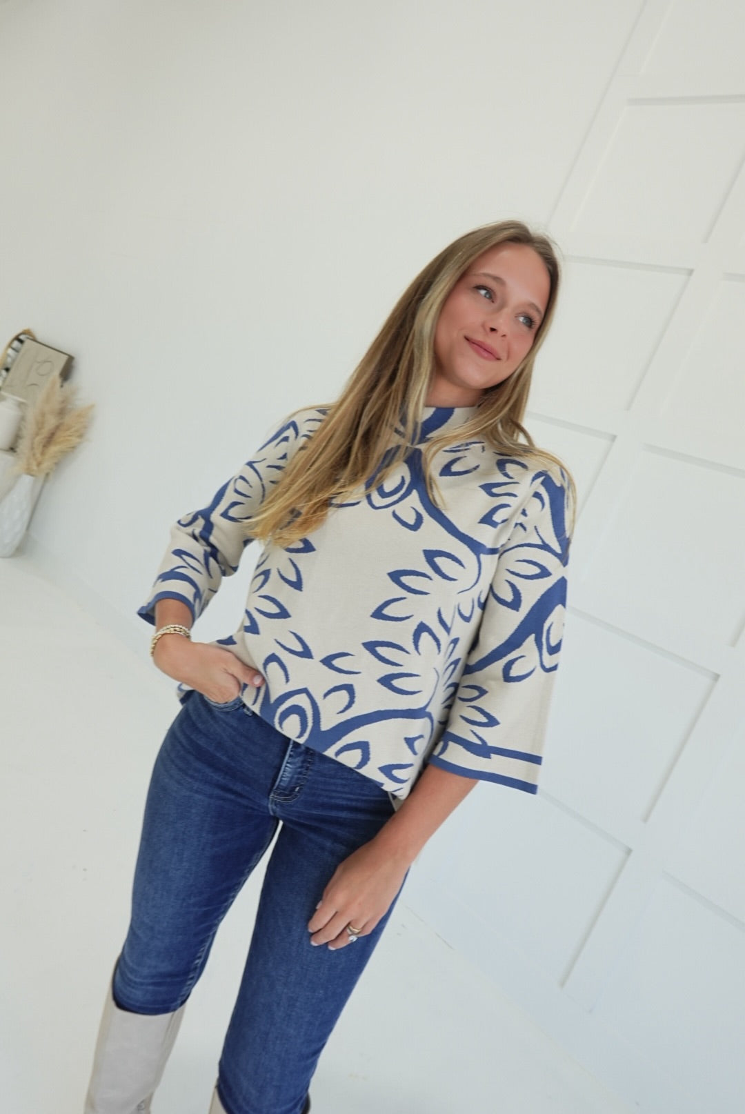 The More Inspiration Sweater combines cozy jacquard knit fabric with a flattering mock neck design, offering warmth and style in one. Its textured pattern adds subtle interest while the soft material ensures comfortable wear throughout the day. Perfect for layering or wearing on its own, this sweater supports your goal of staying cozy without compromising on a polished look.