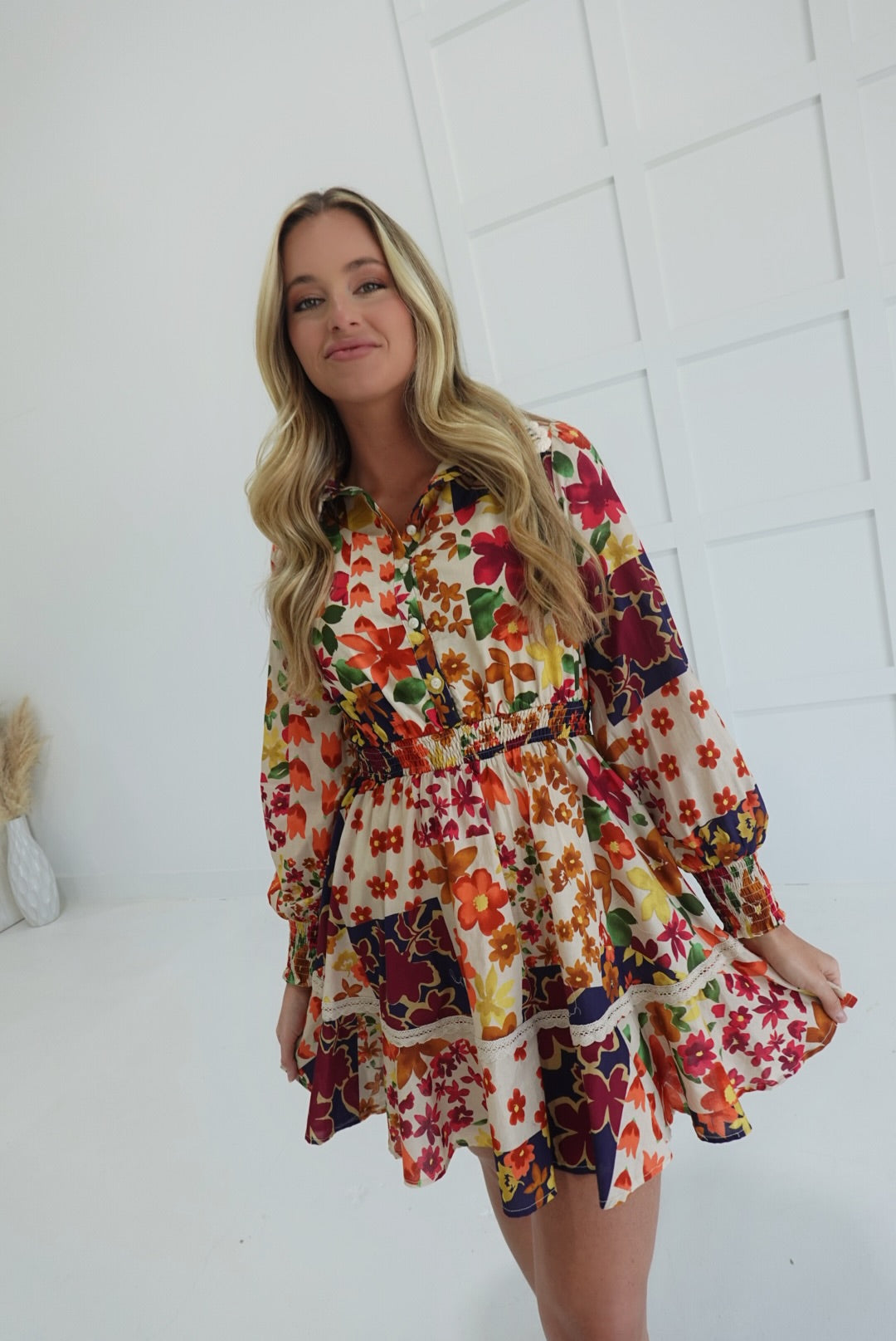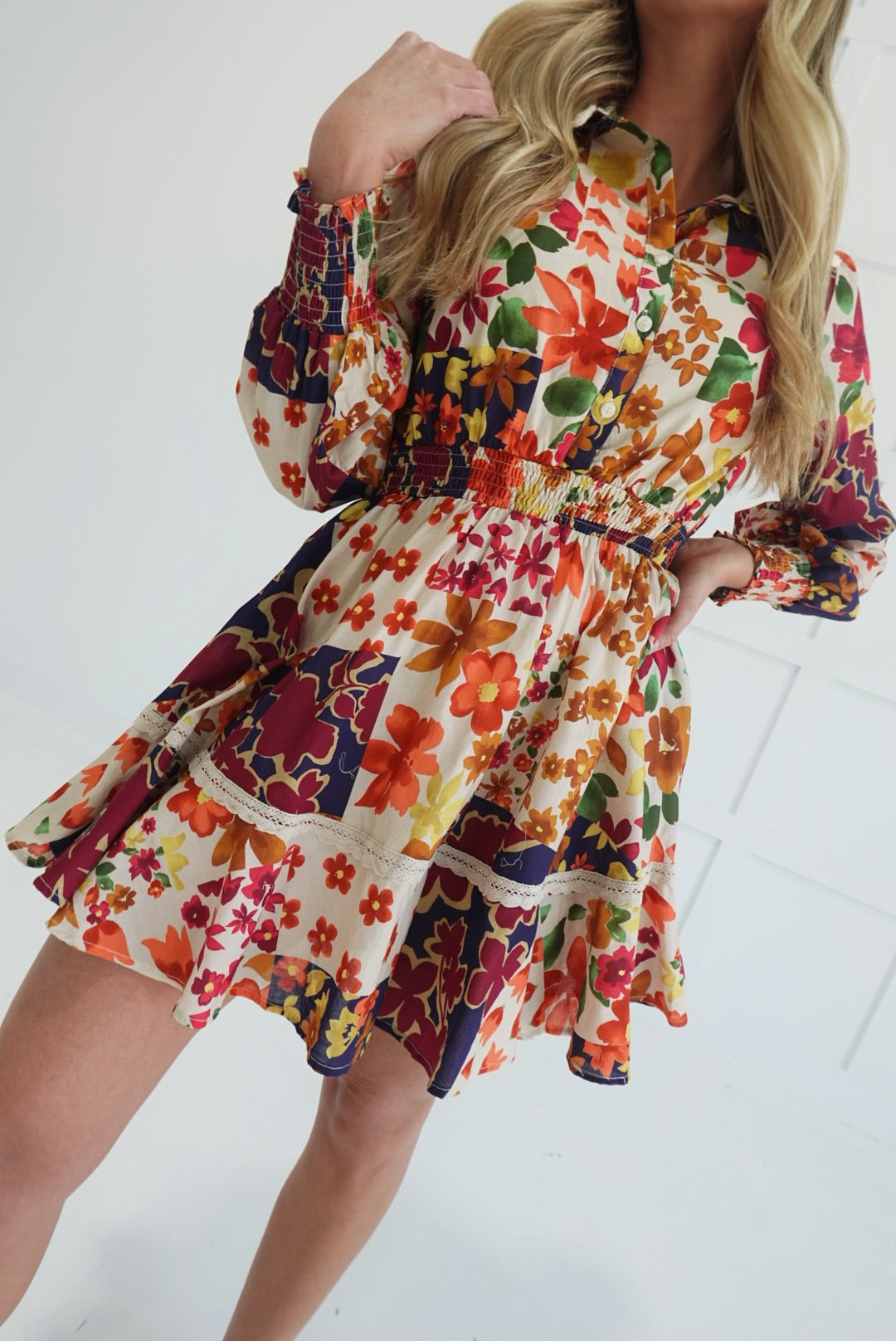 Embrace effortless elegance with the Mostly Mora Midi Dress, featuring a vibrant patchwork floral print that brings a fresh, lively touch to your wardrobe. Delicate lace trim details add a subtle, feminine charm, while the tiered design creates a flattering silhouette that moves gracefully with you. Perfect for any occasion, this dress combines comfort and style to help you feel confident and radiant all day long.