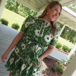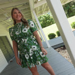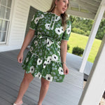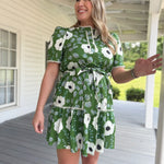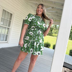 This Mum Grazing Mini Dress in green combines a charming floral print with thoughtful design details like contrast trim accents and a button-front closure. The removable self belt allows you to customize your fit, while side pockets add practical convenience. Crafted from lightweight woven fabric, it’s fully lined and non-sheer, ensuring comfort and confidence all day long. Perfect for warm days when you want to feel both stylish and supported.