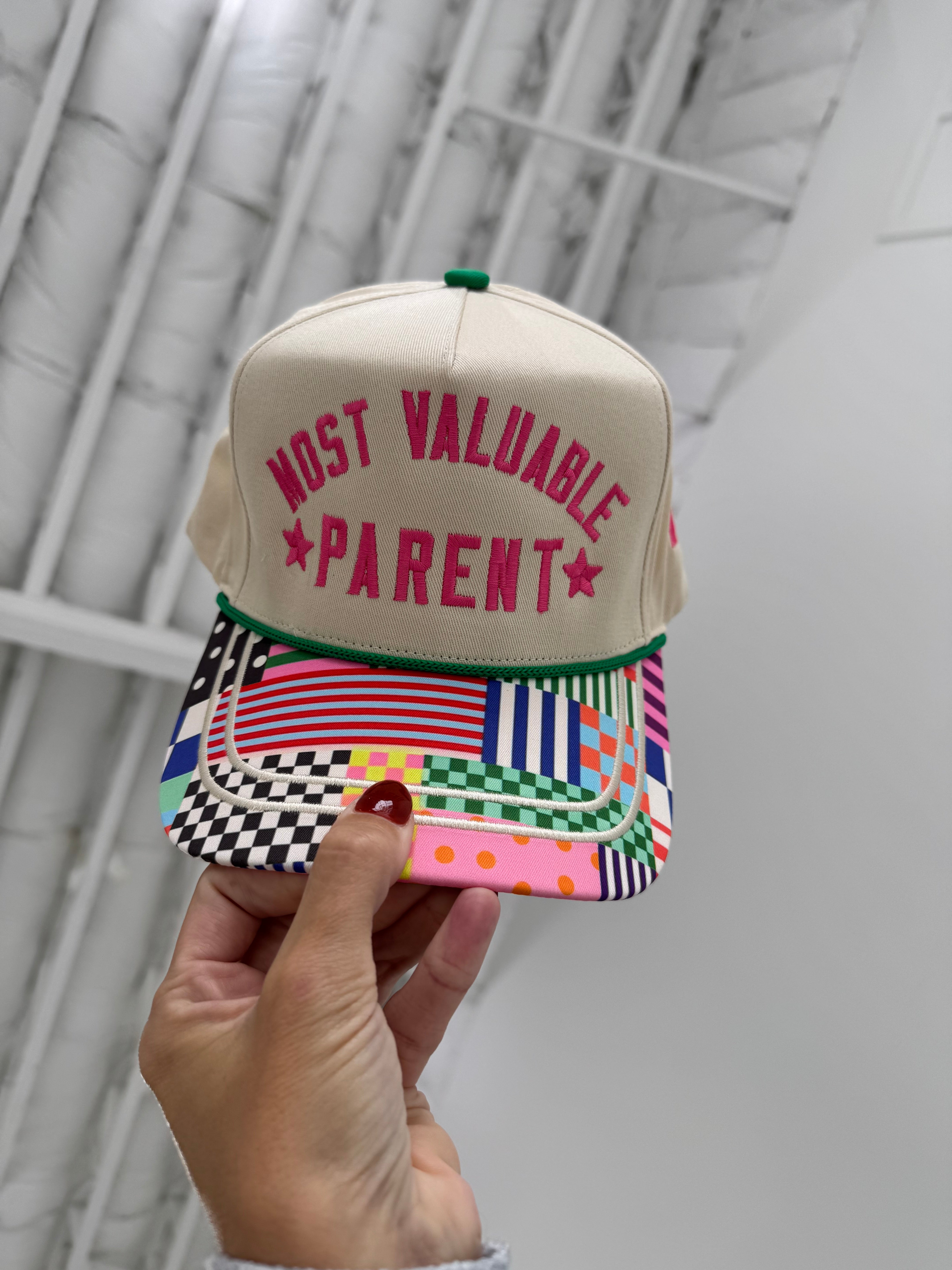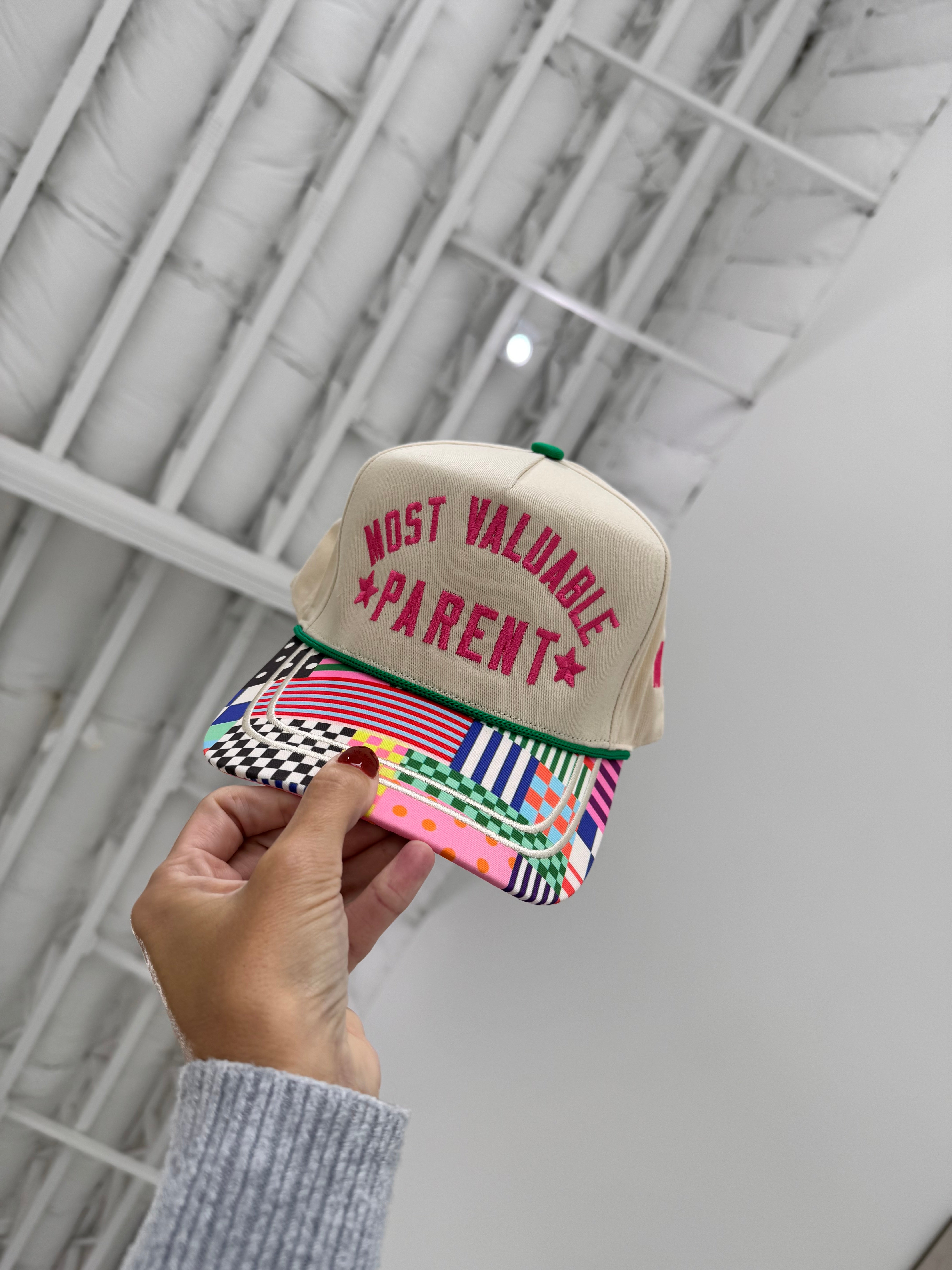 The MVP Hat celebrates the hardworking parents who juggle it all. Featuring a funky printed bill that adds personality to your everyday look, this cap is the perfect way to show off your most valuable player status. Comfortable, stylish, and unapologetically fun—because parenting deserves recognition. Wear it with pride and let everyone know you're the real MVP.