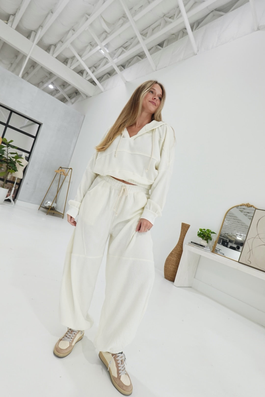 - Oversized Lounge Set - Baggie Pants, Cropped Hoodie