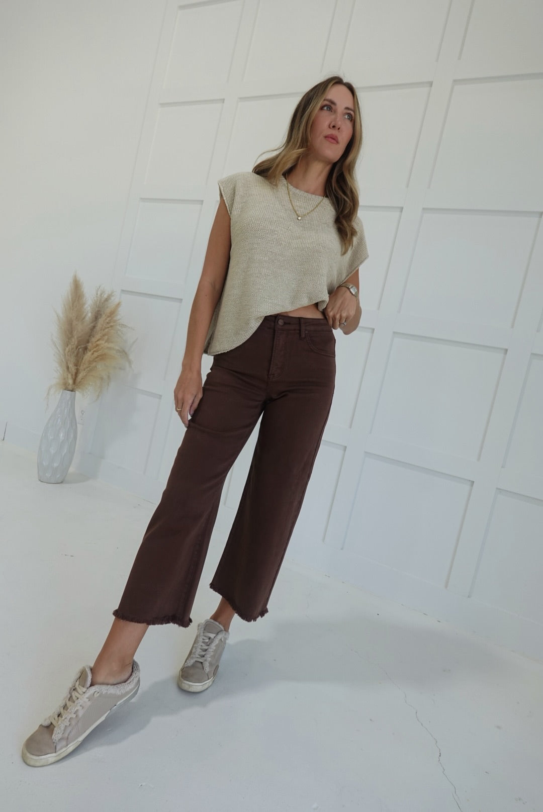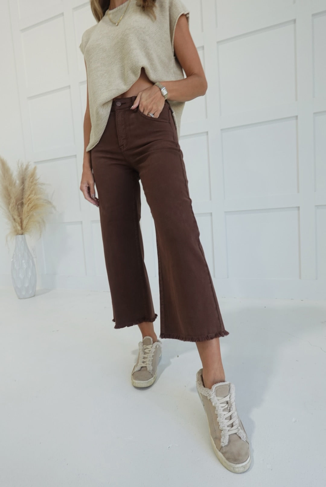 These My Functuay Pants feature a flattering high-rise fit and a wide leg silhouette, offering both comfort and style. The cropped length adds a modern touch, making them easy to pair with your favorite shoes. Perfect for everyday wear, they provide a relaxed yet polished look that supports your active lifestyle.