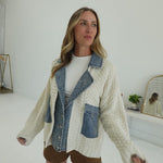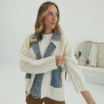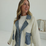 - Mixed Media Cable Knit Jacket With Denim Trim