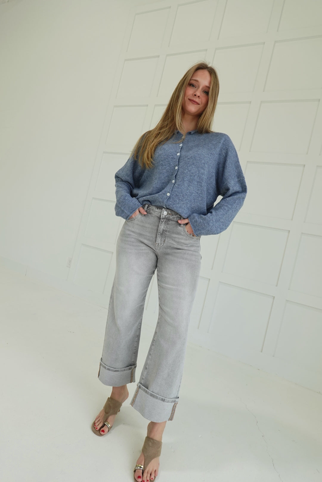 Nora Sweater Cardigan - Dusty Blue