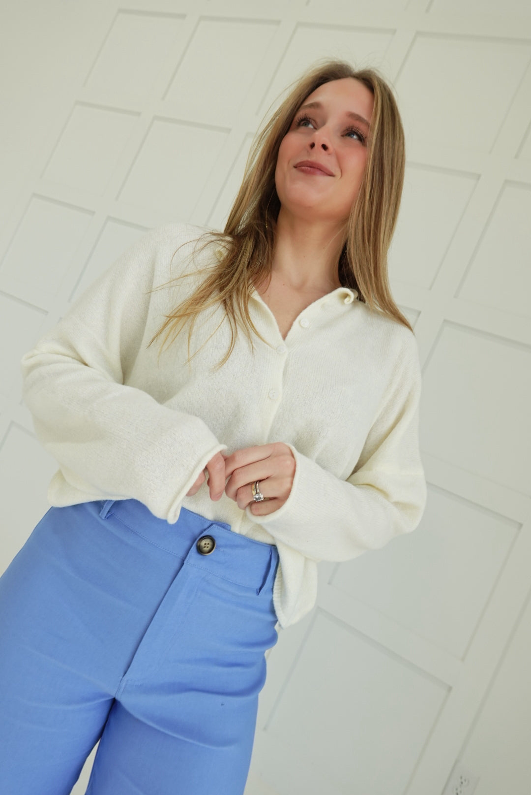 Effortlessly layer this lightweight knit cardigan for those in-between weather days. The Nora features a classic button-down design in a soft tone that pairs beautifully with everything in your wardrobe. Perfect for the office, casual outings, or layering over your favorite tee, this piece offers comfort without the bulk. A versatile staple that works as hard as you do.