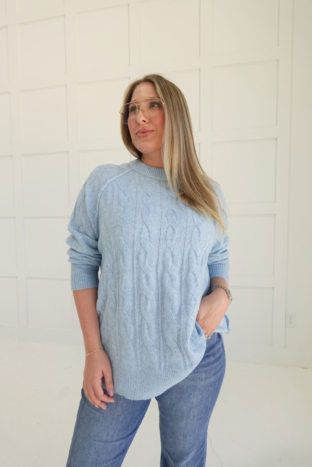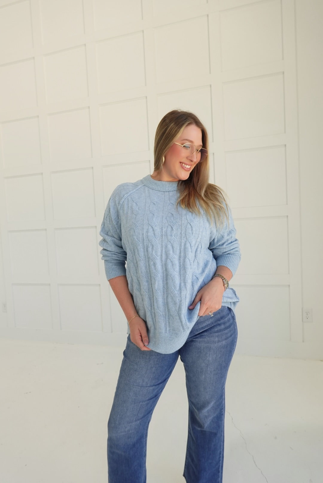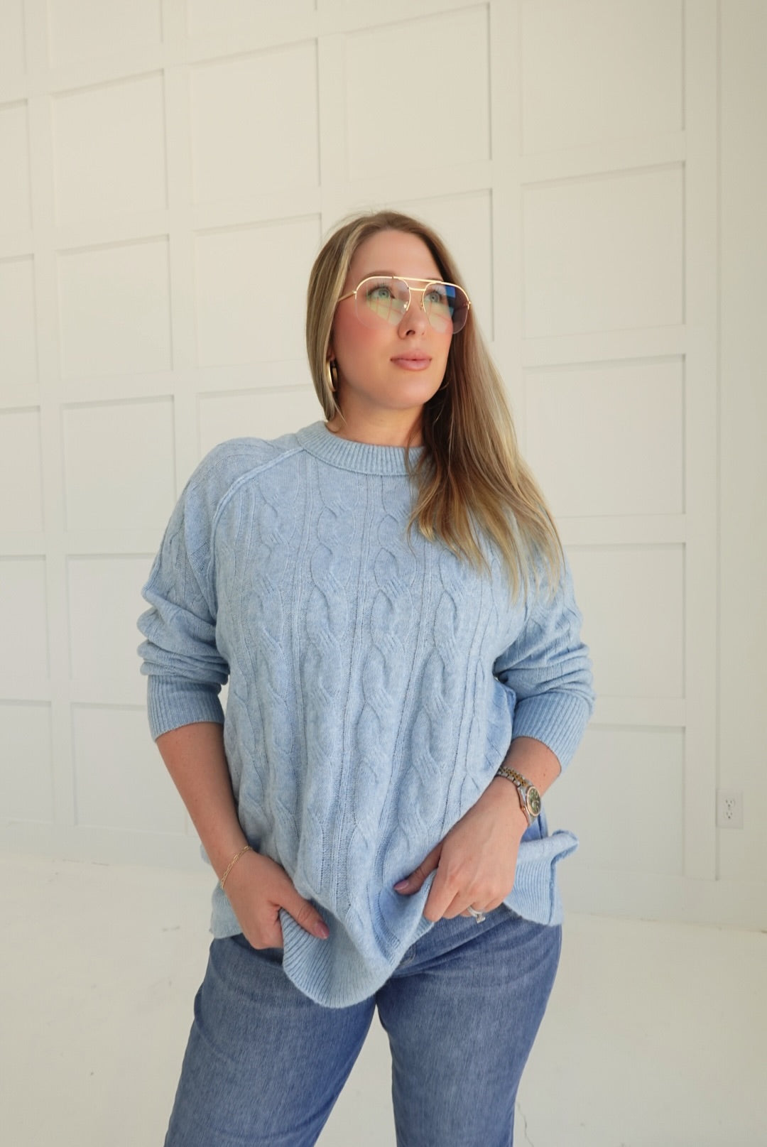 Stay cozy and stylish in the Not Your Boyfriends Sweater, an oversized cable knit crew pullover designed for ultimate comfort. Its relaxed fit offers warmth without restricting movement, making it perfect for layering or lounging. Enjoy the soft texture and timeless knit pattern that add character to any outfit, whether you're out and about or relaxing at home. This sweater supports your need for comfort and effortless style in one easy piece.