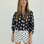 - Button Front Polkadot Blouse + Fitted Polkadot Mini Shorts