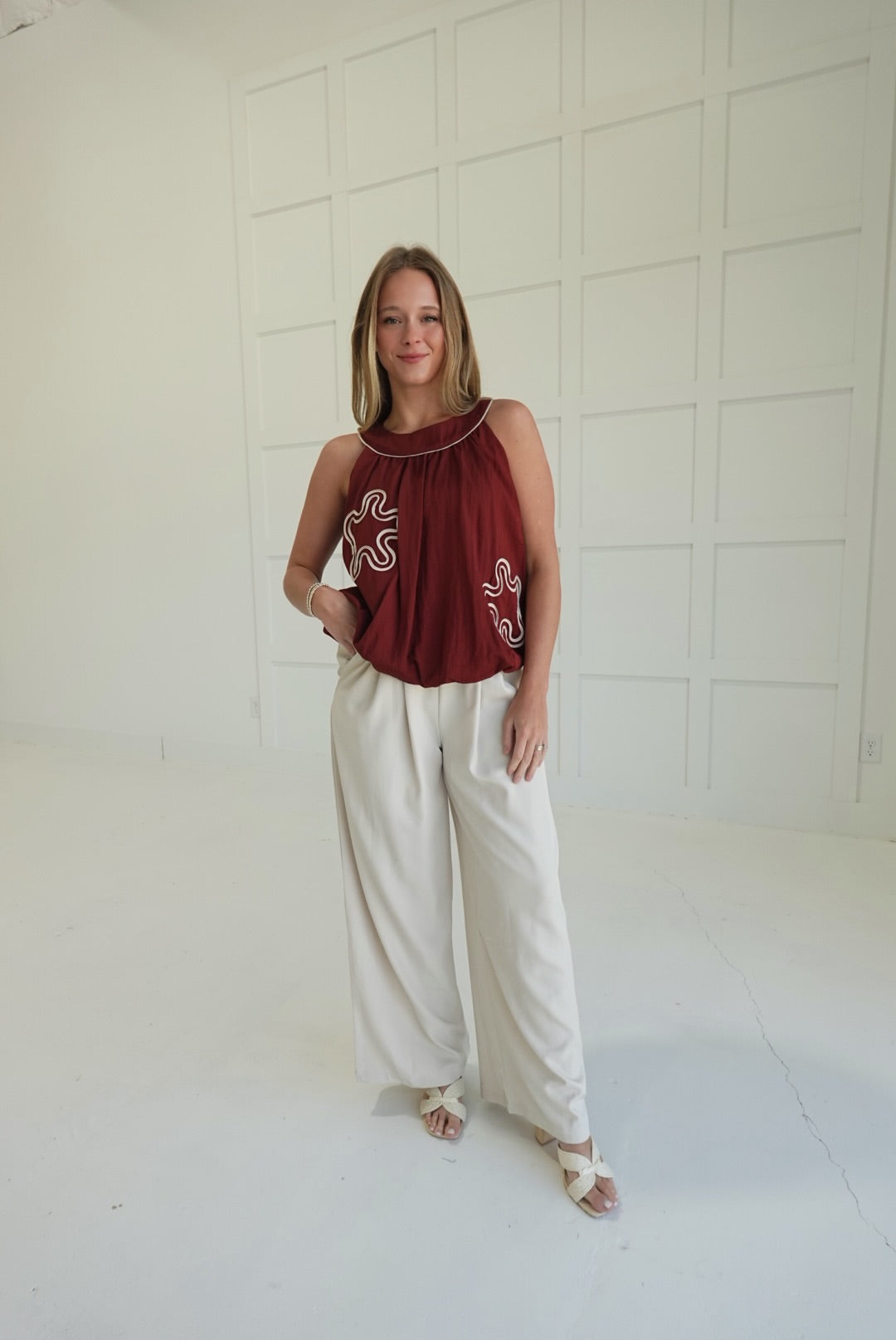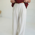 Experience comfort and style with the On My Dime Trousers. These pleated, wide-leg tailored trousers offer a flattering fit and elegant silhouette, perfect for both professional settings and casual outings. The pleats add a refined touch while allowing ease of movement, helping you feel confident and comfortable throughout your day. A versatile wardrobe essential designed to support your busy lifestyle with polished sophistication.