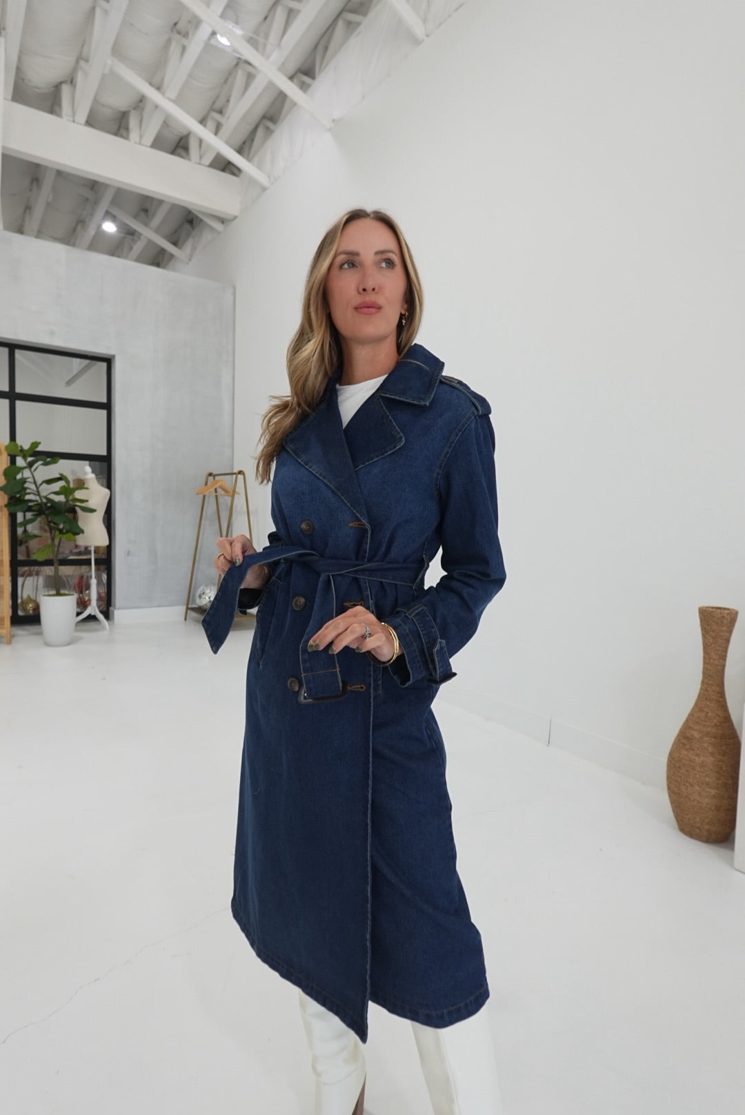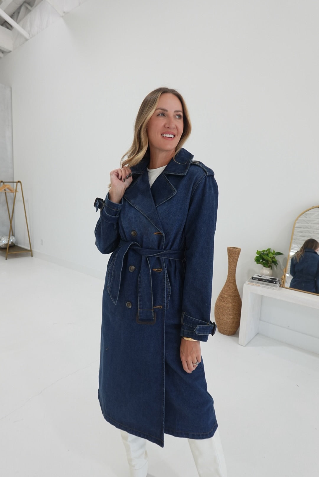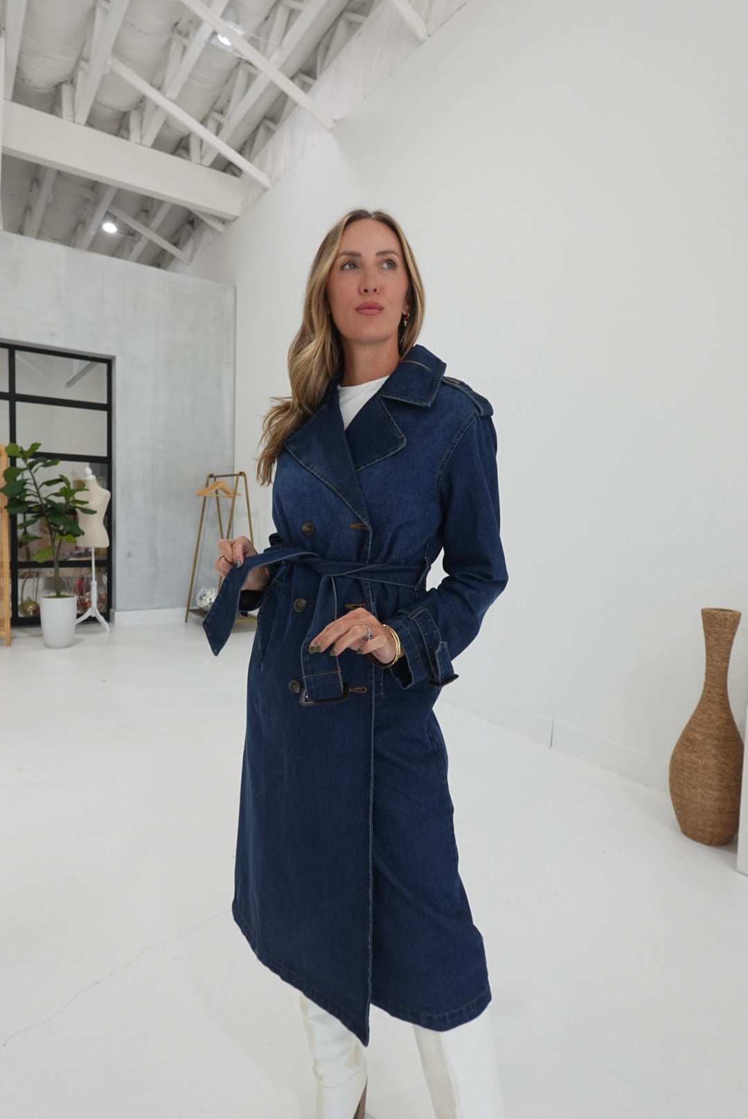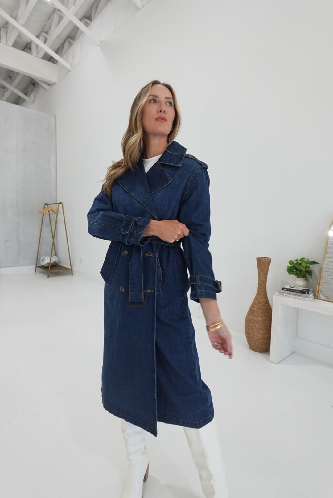 - Belted Denim Trench Coat