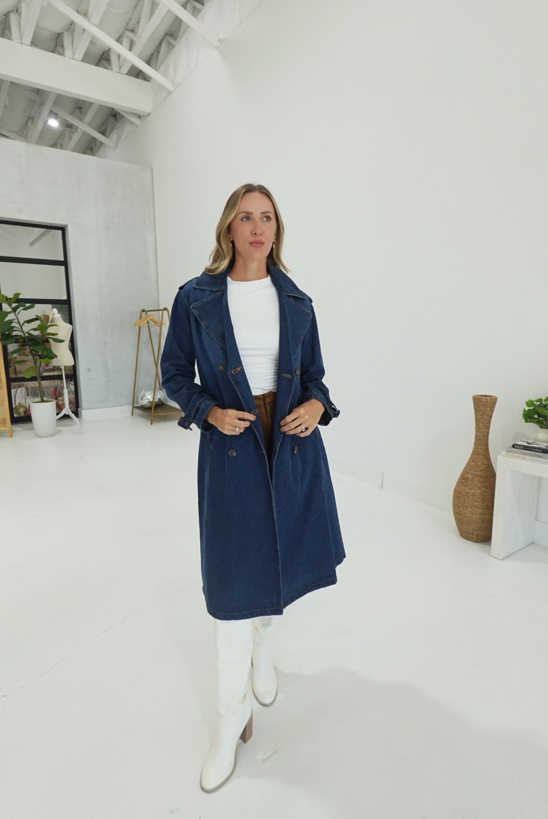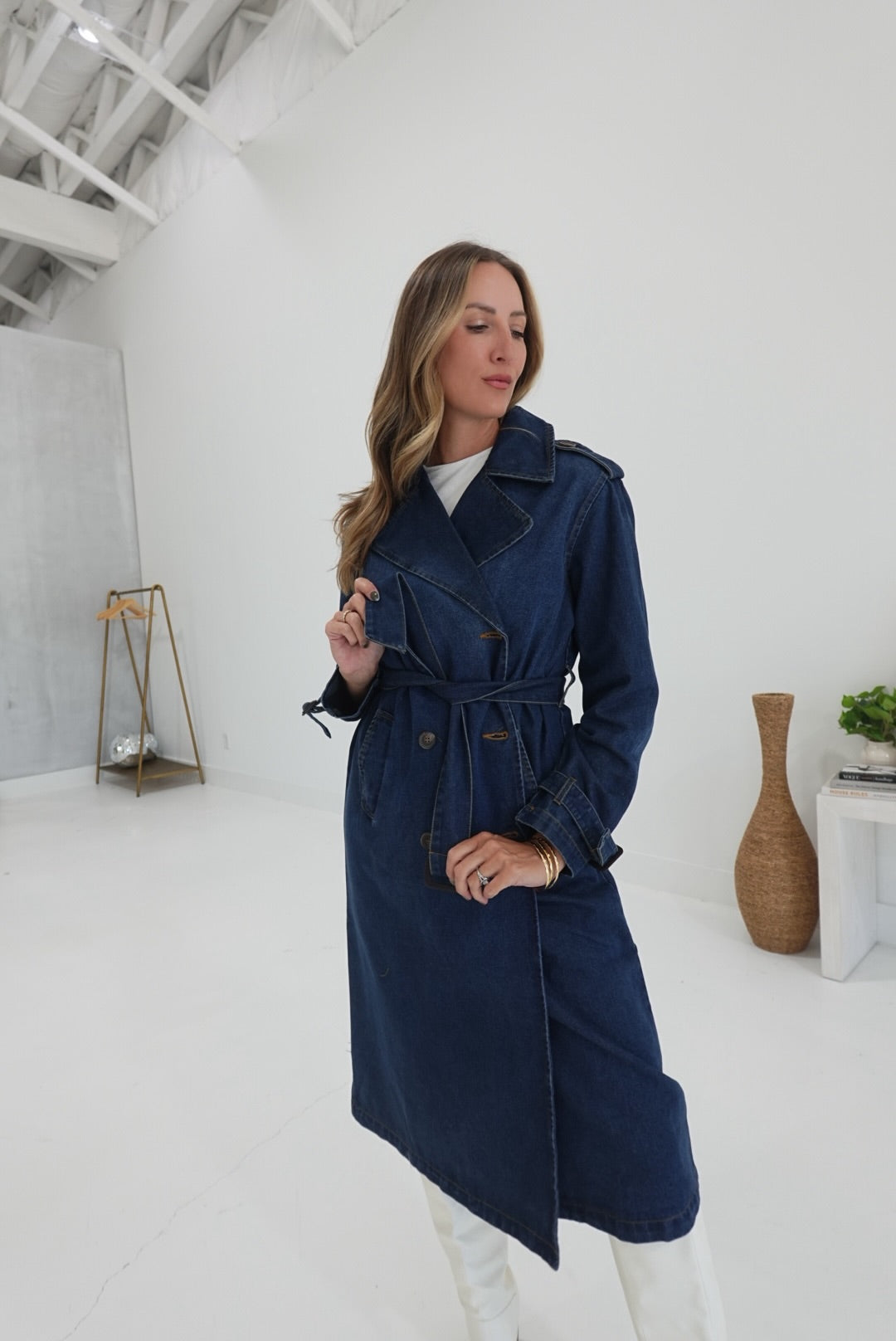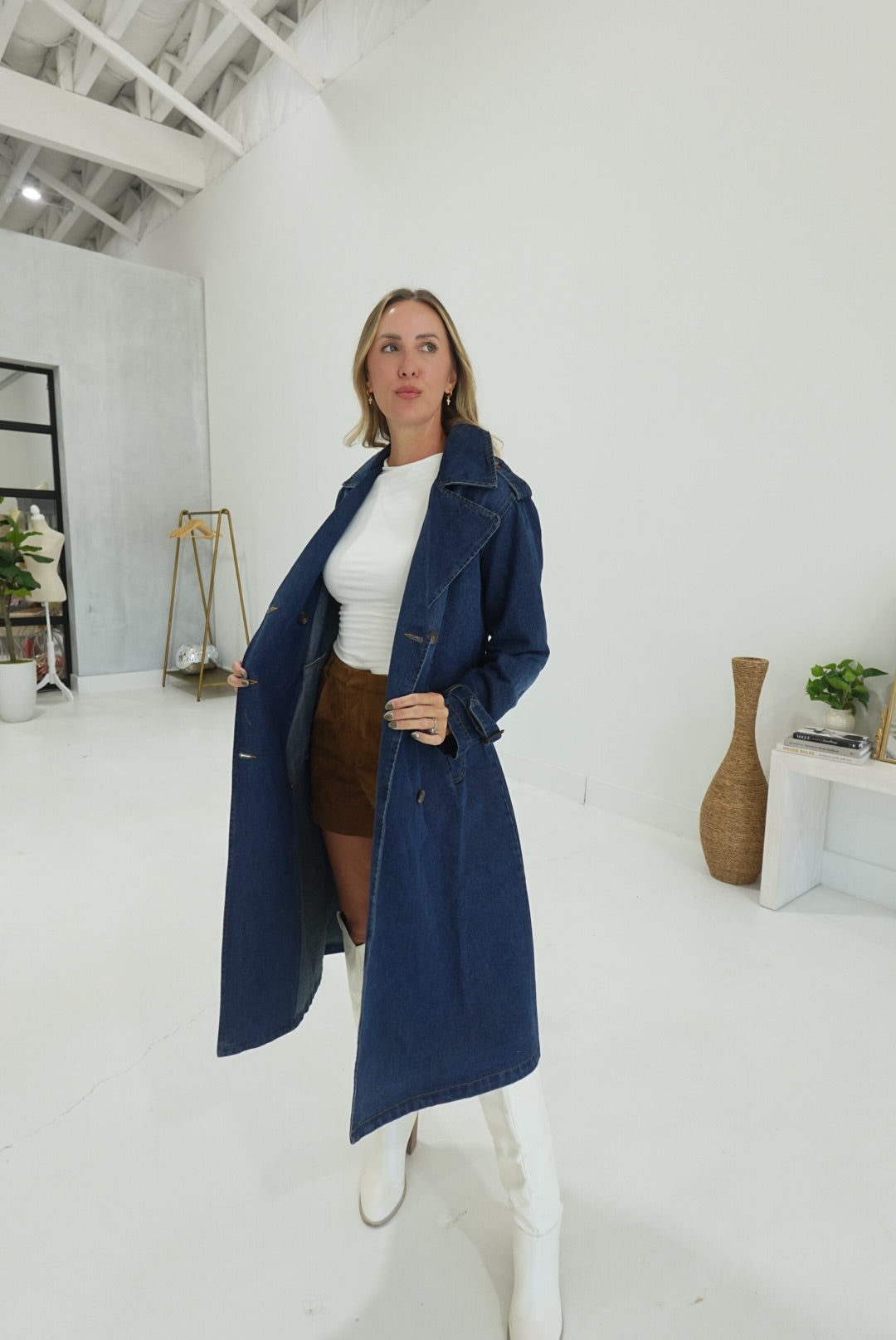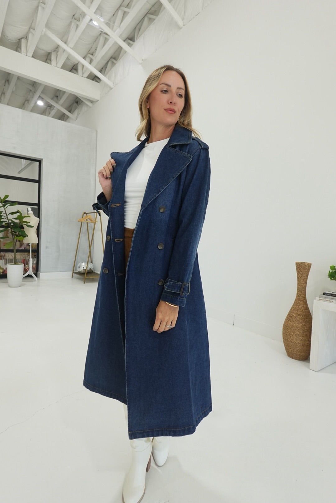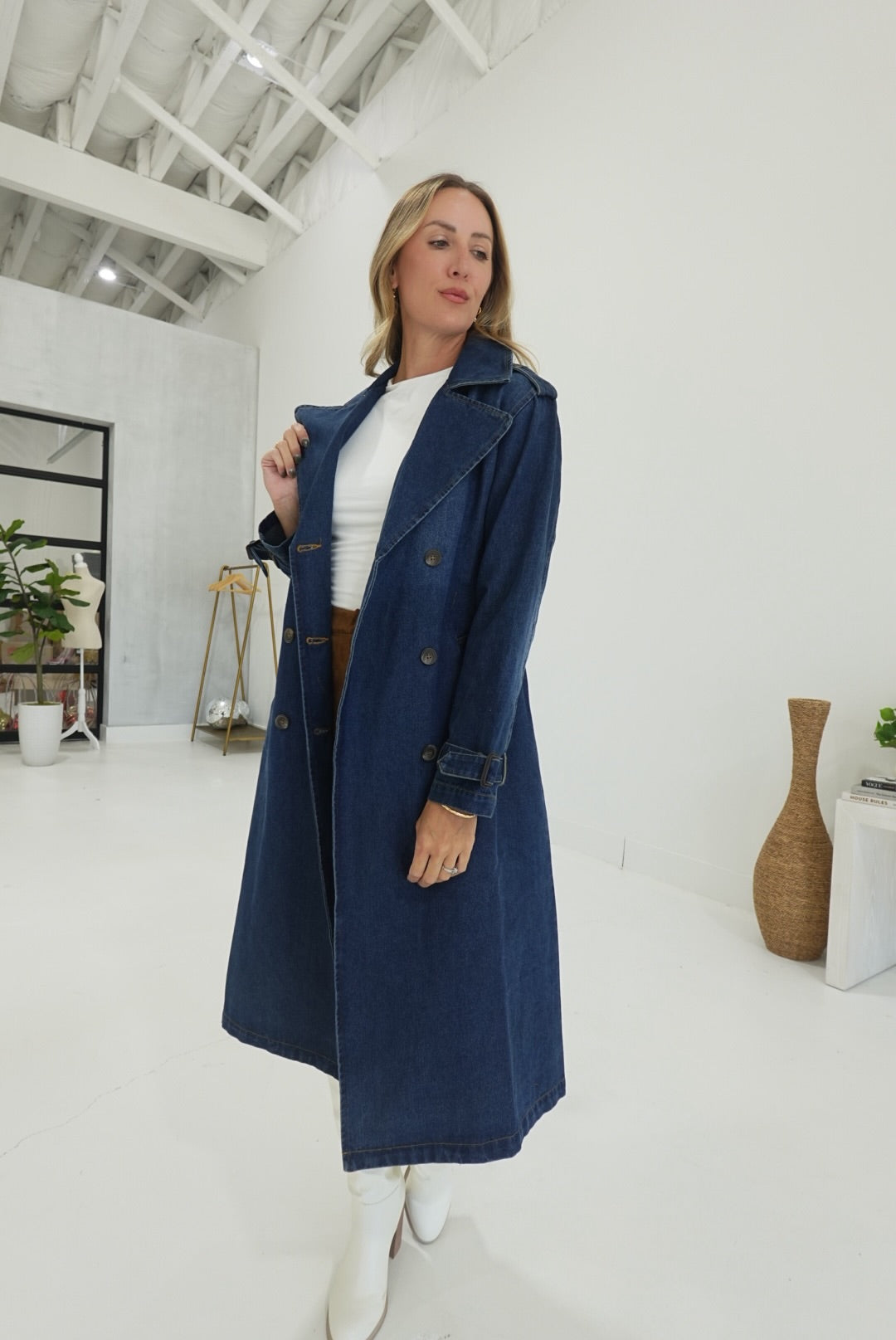 - Belted Denim Trench Coat