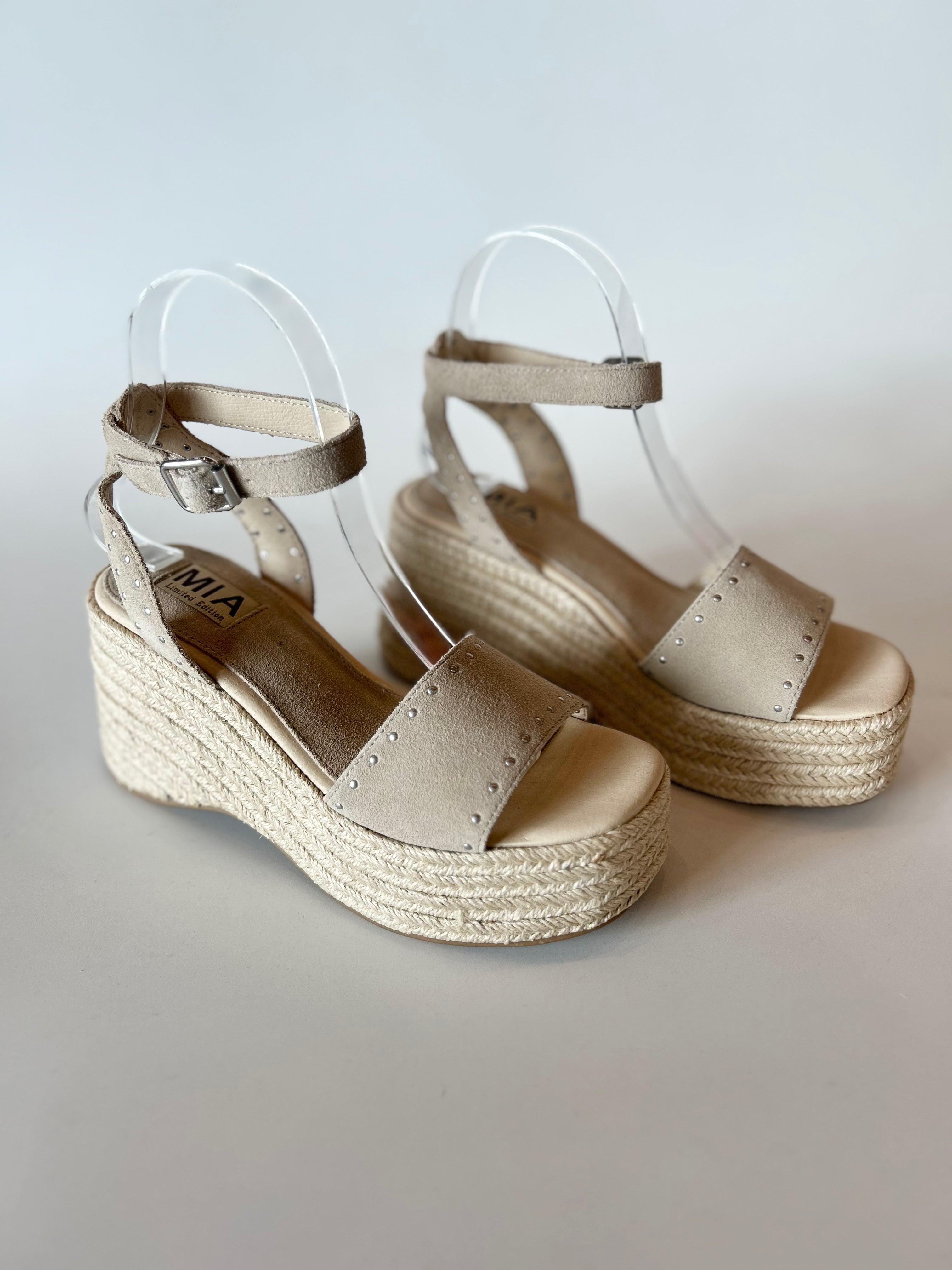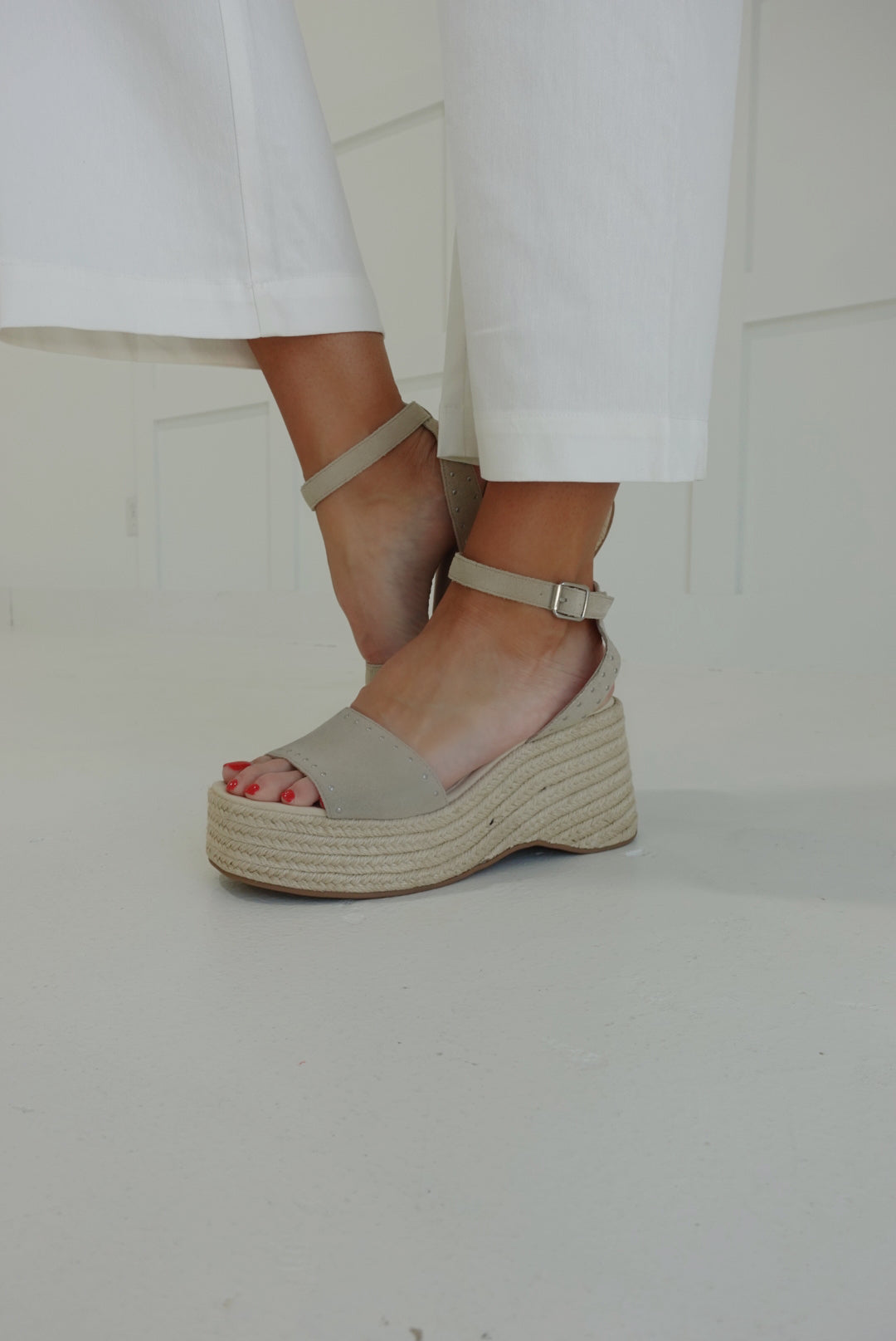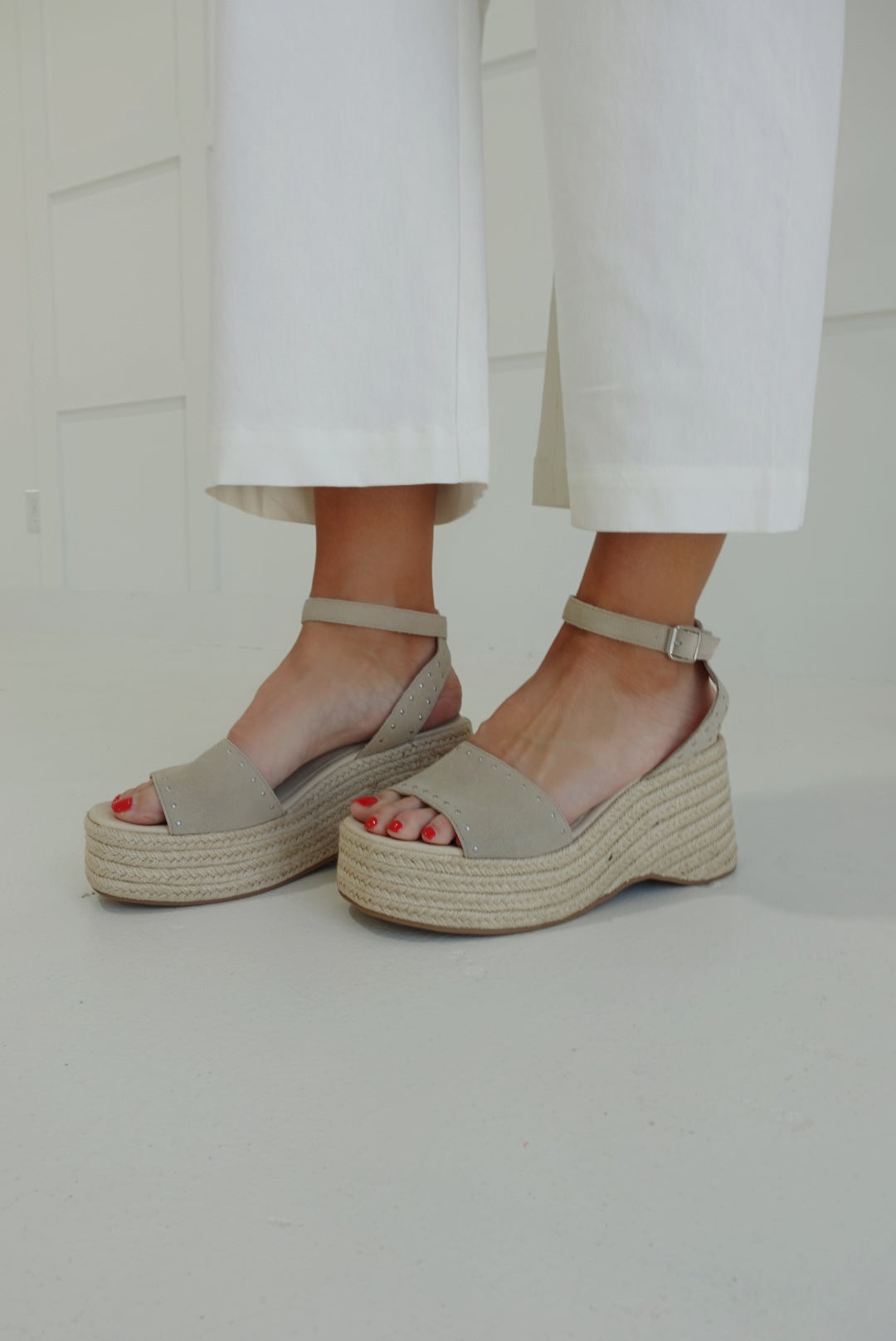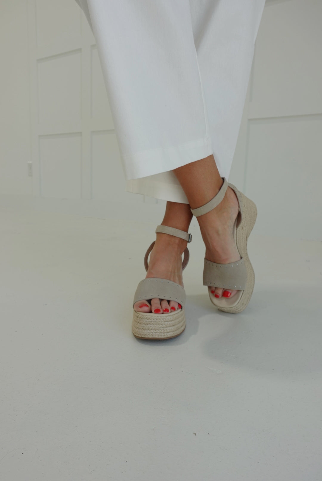 Elevate your style with our Pascha Espadrille Wedge! This wedge features authentic suede and studded detailing for a touch of edge. The 3.5" espadrille adds the perfect amount of height for a chic and comfortable look.