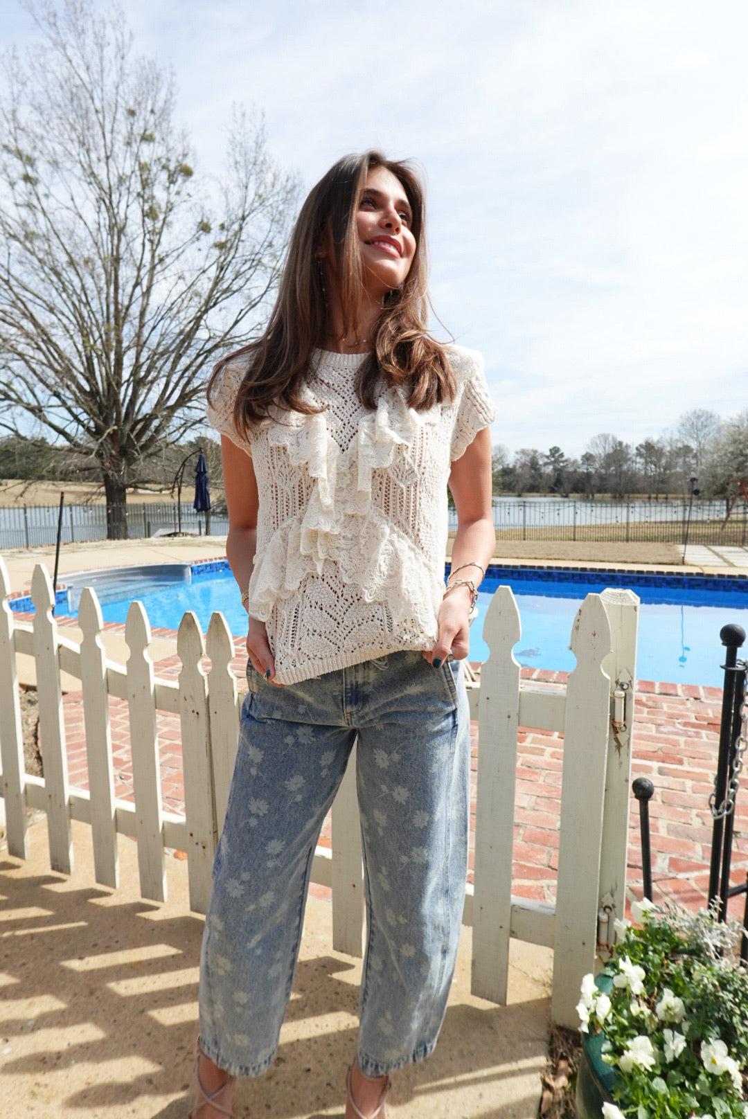 The Pathway To Spring Top channels bold confidence with its striking lace trim detailing that transforms an everyday sweater into a statement piece. Delicate lace edges frame the neckline and cuffs, adding an unexpected touch of elegance to the structured knit. Perfect for those ready to break free from conventional styling, this top pairs effortlessly with everything from tailored trousers to edgy leather. Embrace the daring contrast of soft lace against cozy knit—a piece that refuses to play it safe.