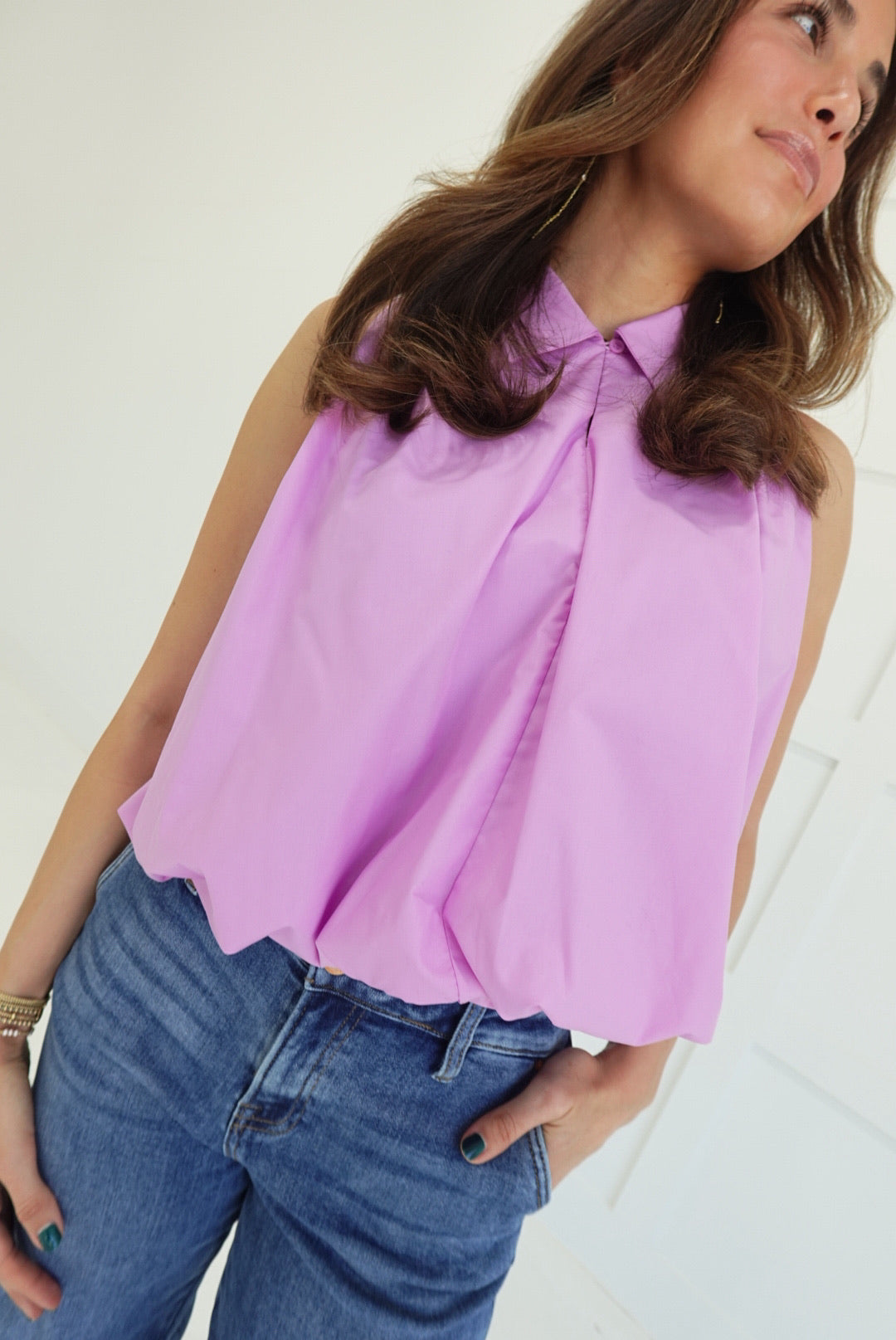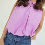 - Bubble Hem, Sleeveless Collared Top