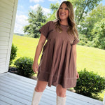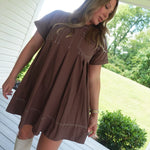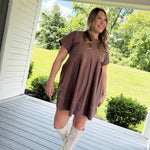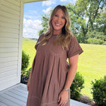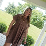 The Peyton Mini Dress offers a flattering fit with its solid short sleeves and delicate pleated design. Thoughtful details like exposed stitching, a single flap shirt pocket, and convenient side pockets add both style and function. The lightweight woven fabric is lined and non-sheer, ensuring comfort and confidence throughout your day. A single button keyhole closure at the back completes this easy-to-wear, versatile dress perfect for any occasion.