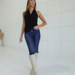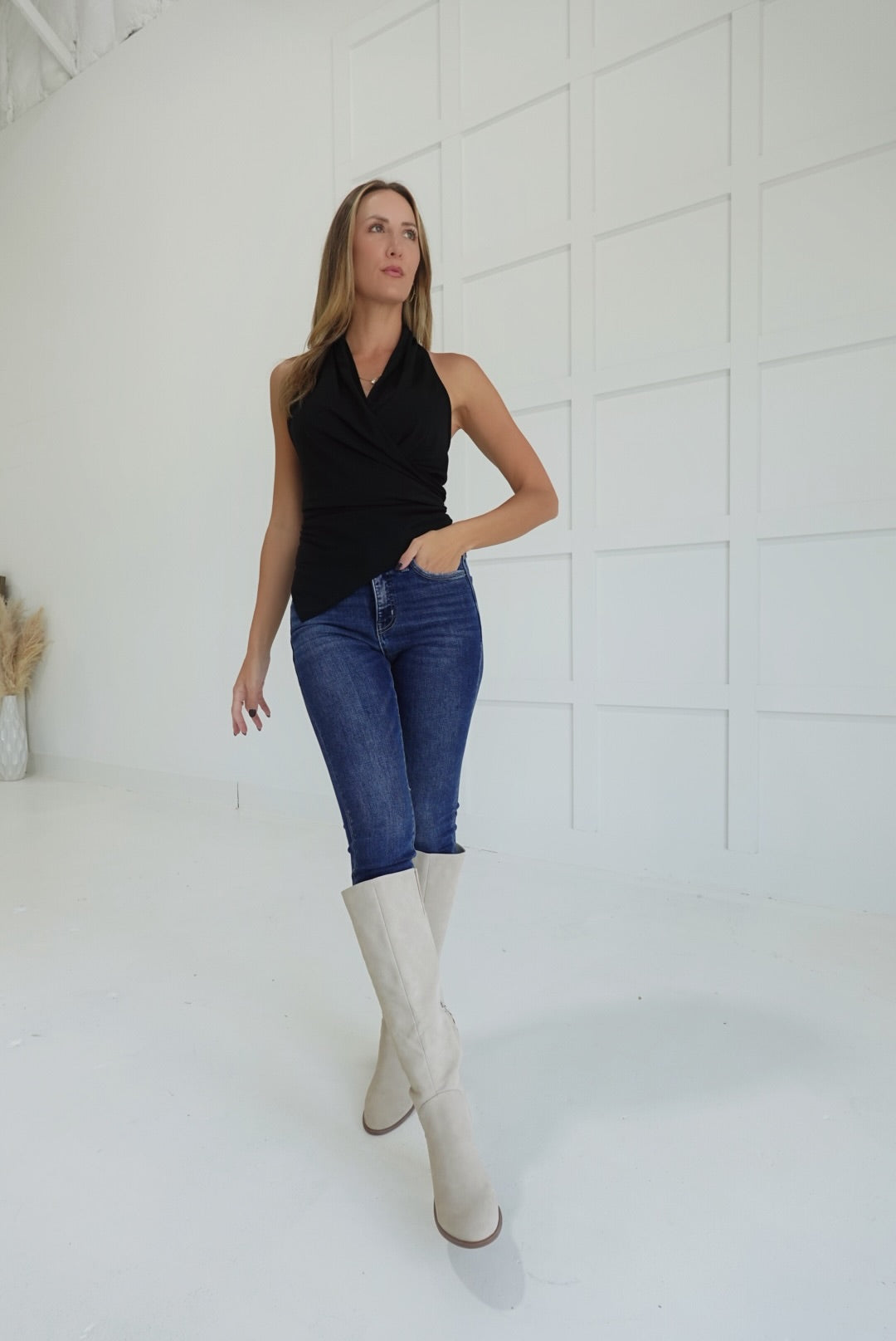 The Phoebe Halter Top features a flattering halter neck design that highlights your shoulders. Its asymmetrical bottom hem adds a modern, stylish touch, making it perfect for both casual outings and dressier occasions. Comfortable and eye-catching, this top supports your desire to look confident and chic effortlessly.