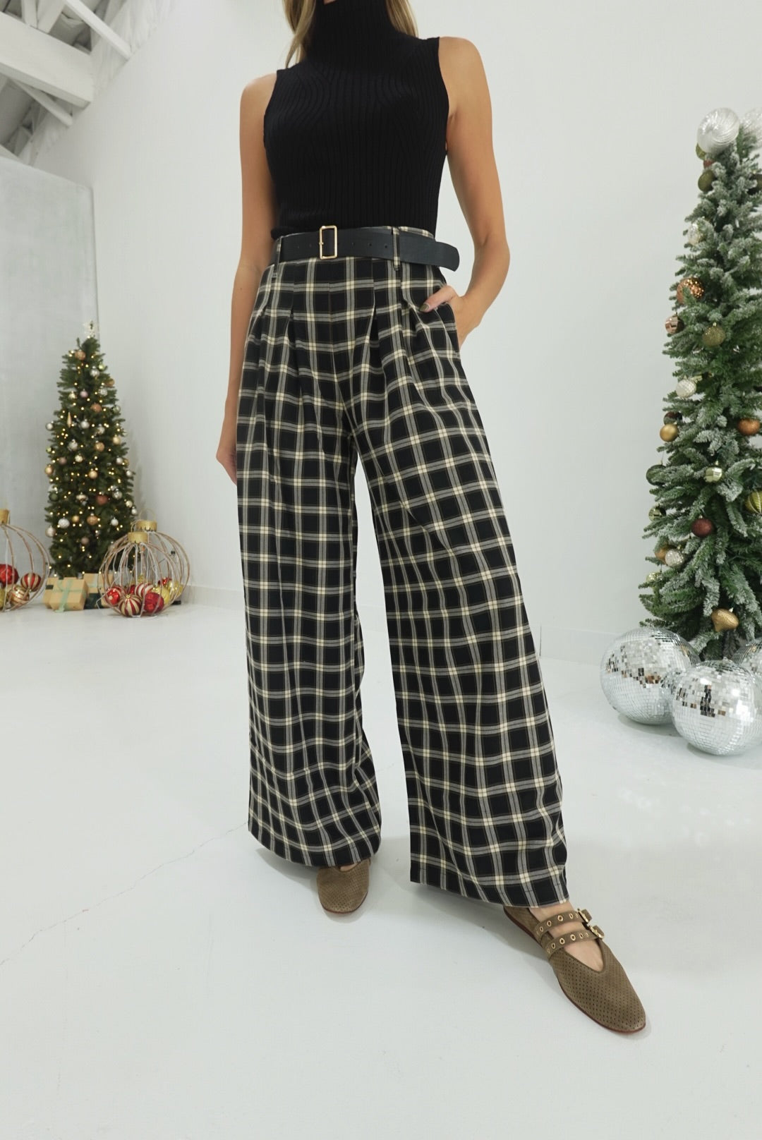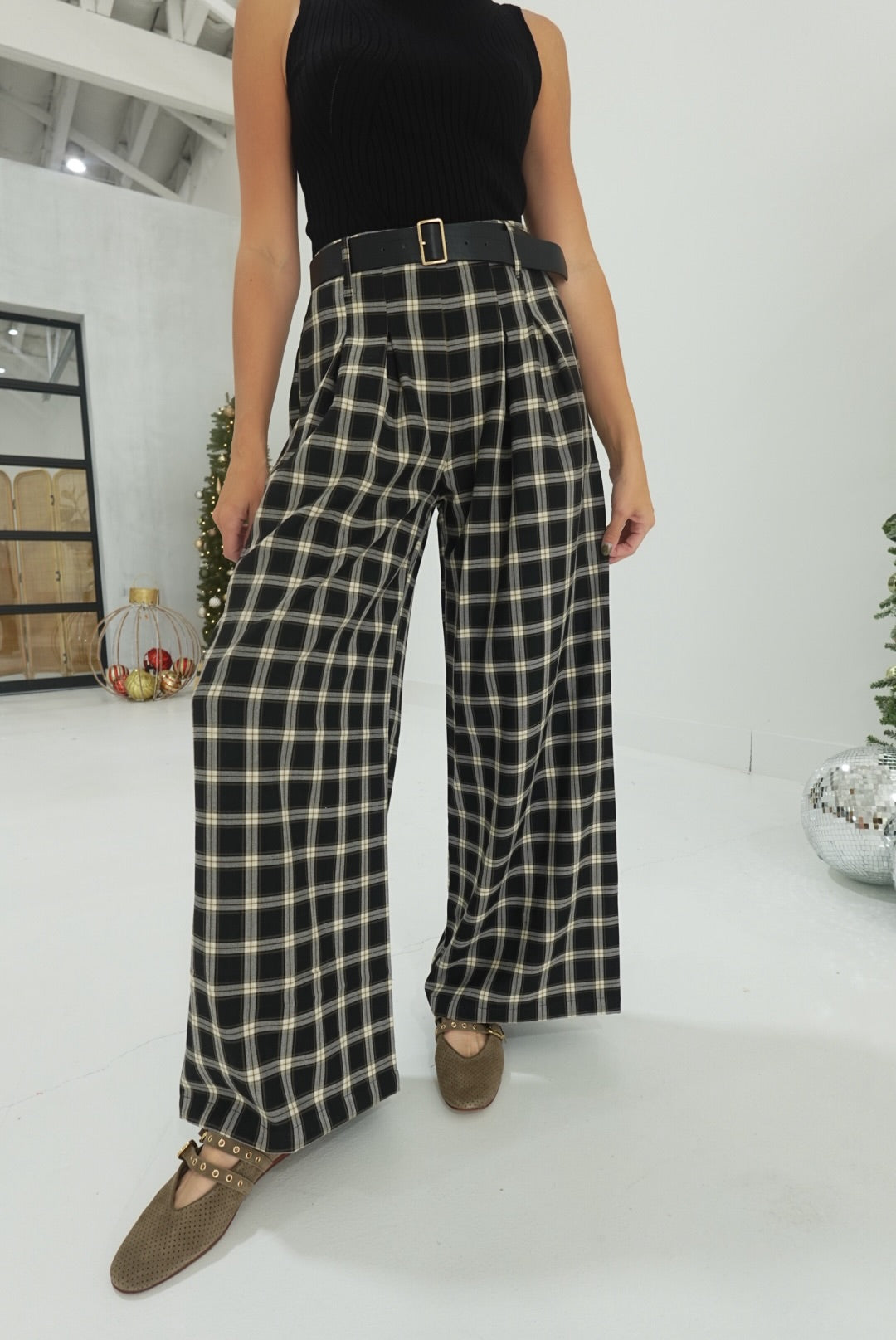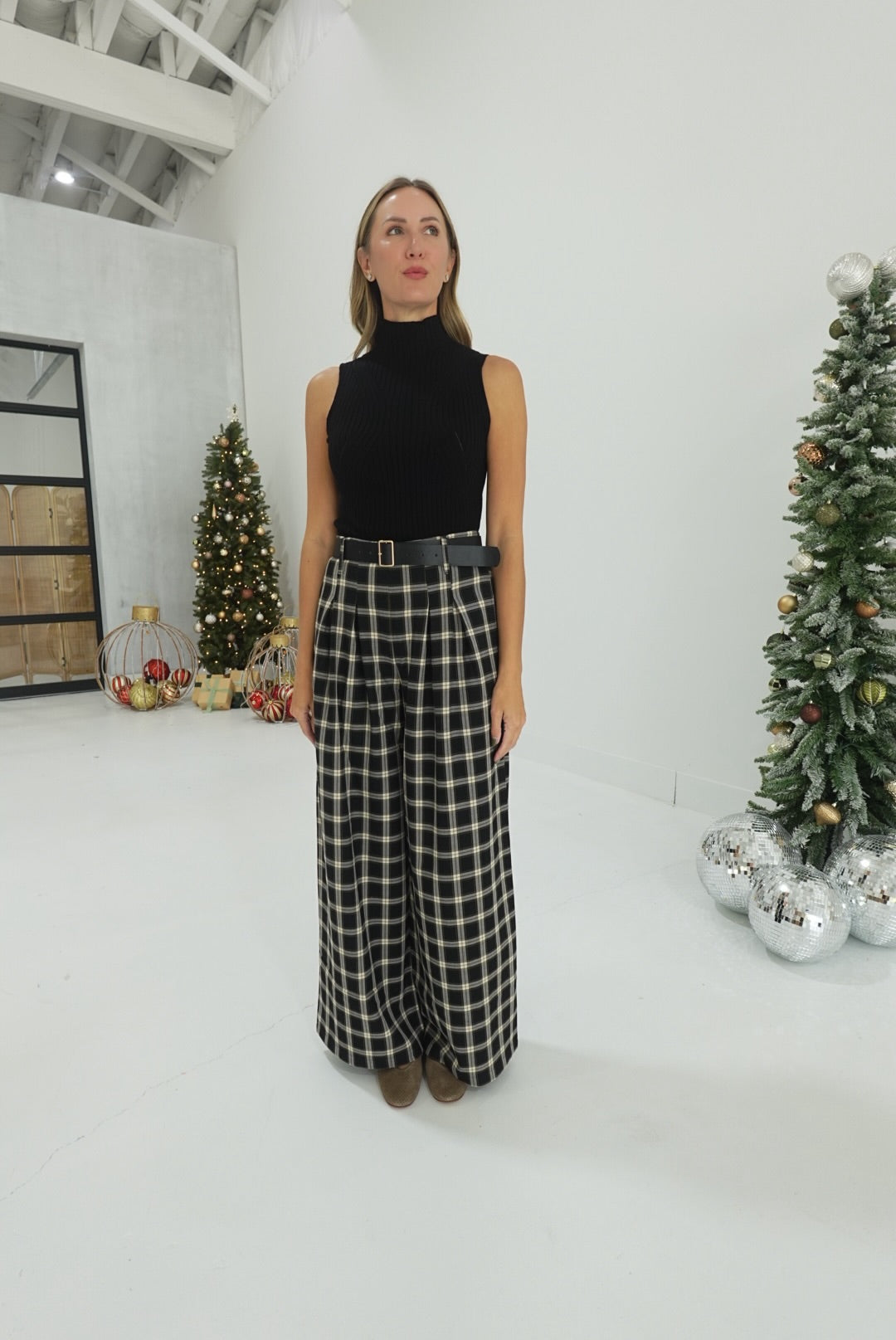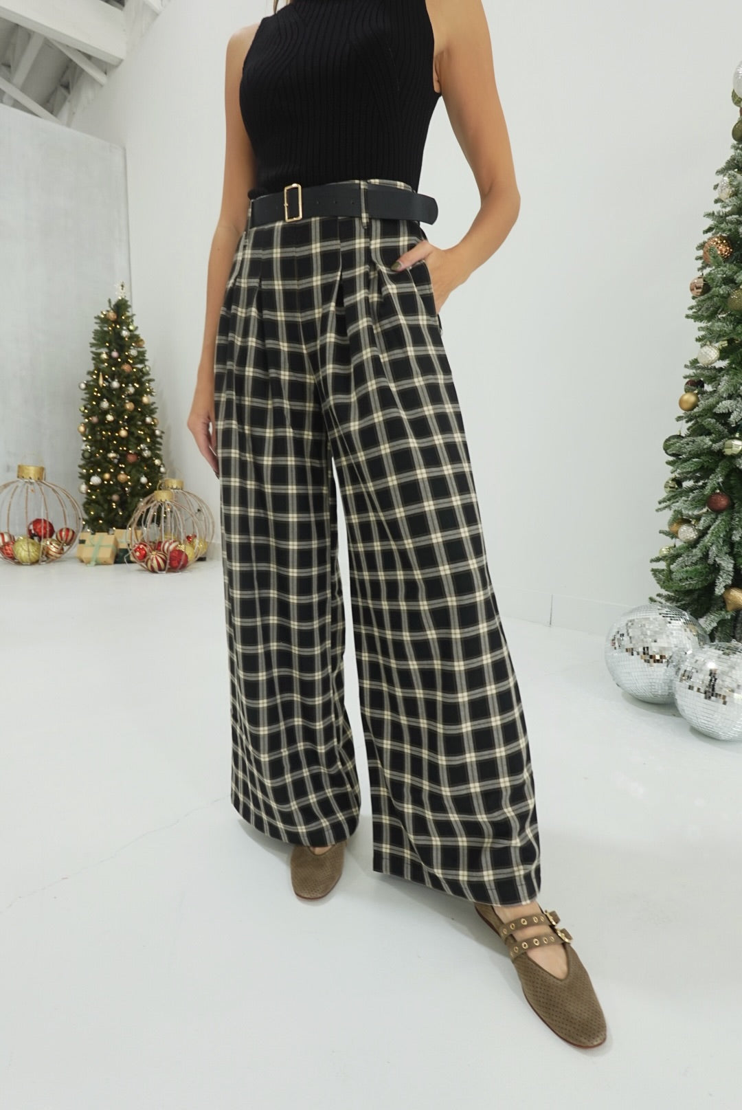 These Plaid To Be Here Pants in Black and Taupe combine style and comfort effortlessly. Featuring pleated details and a wide-leg cut, they offer a flattering fit while allowing freedom of movement. The belted waist adds a customizable touch, ensuring a secure and polished look. Perfect for elevating your everyday wardrobe with a timeless plaid pattern.