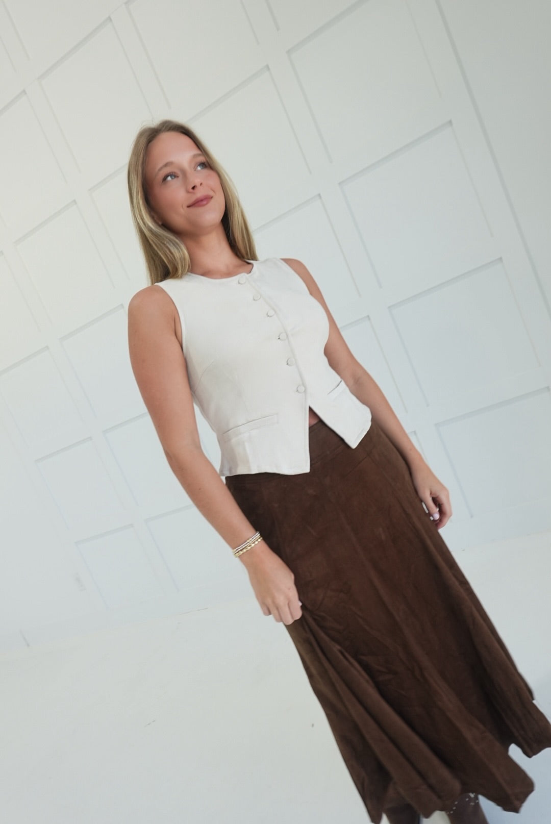 - Suede Split Hem Vest
