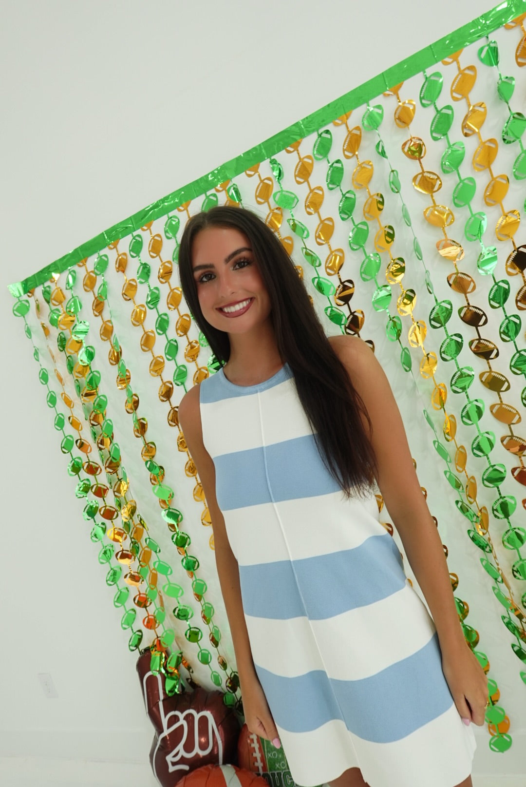 Get ready to make a statement with our Powder Blues Mini Dress! This sweater striped mini dress is perfect for showing off your team spirit on Ole Miss game days. Stay stylish and comfortable while cheering on your team. Game on!