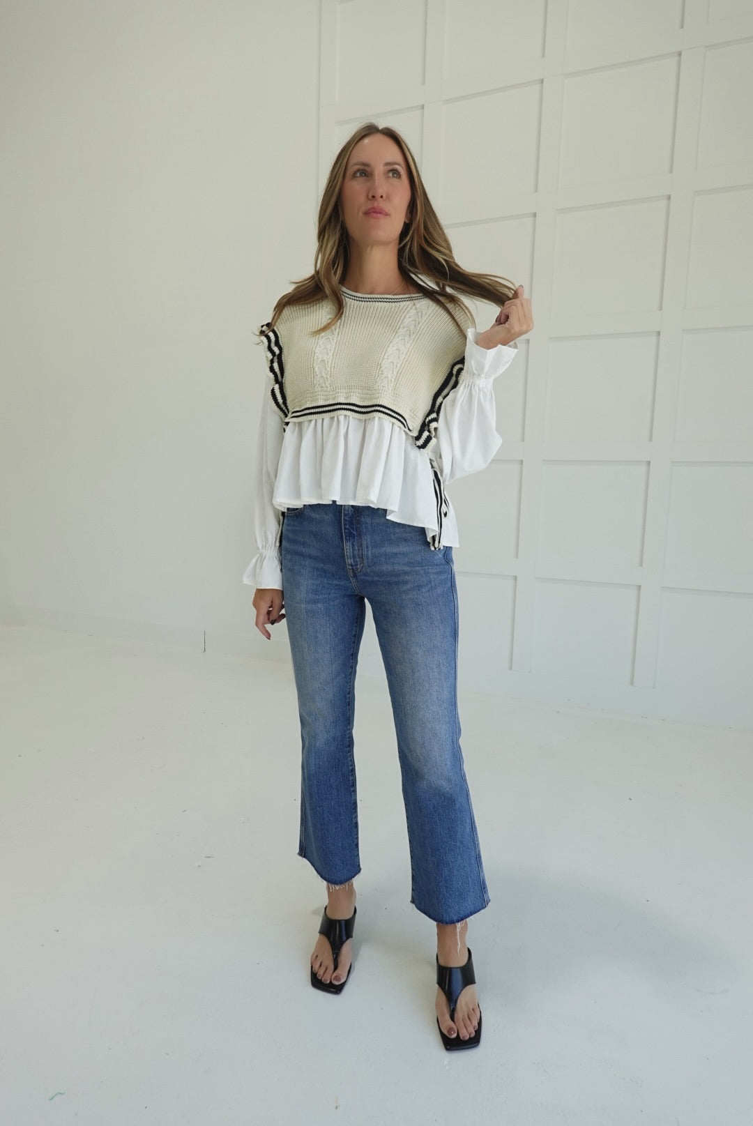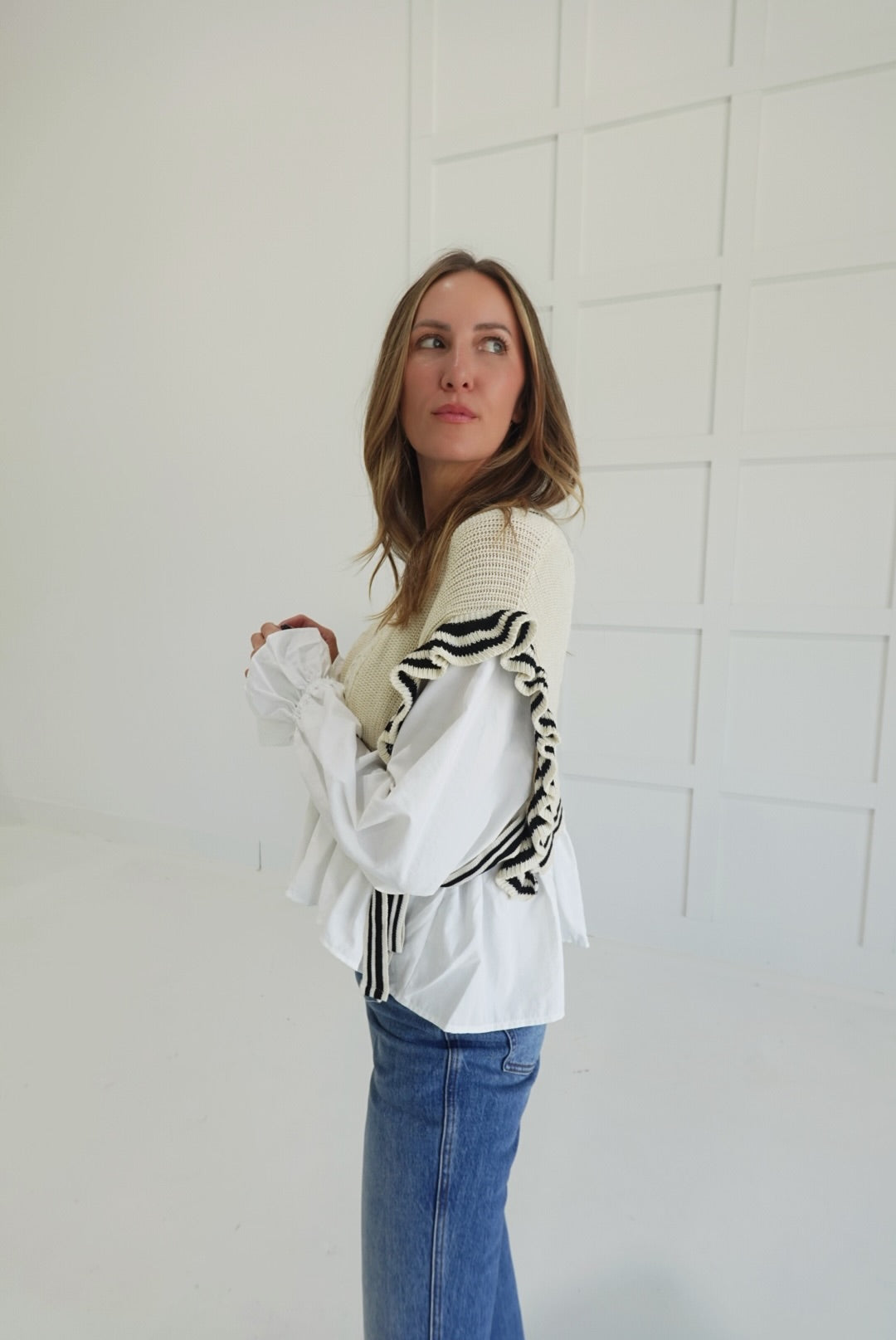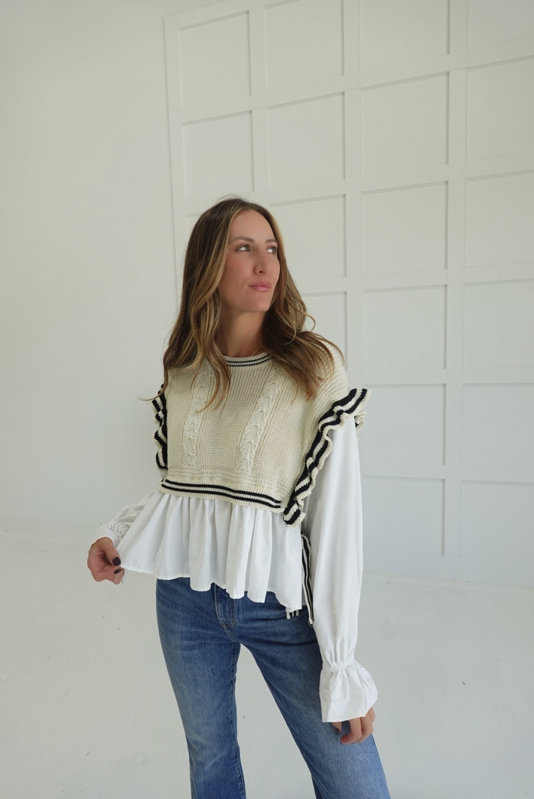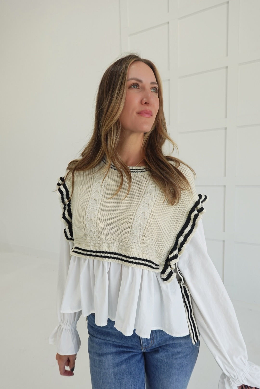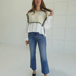 - Stripe Knitted Vest + Blouse Combo Top