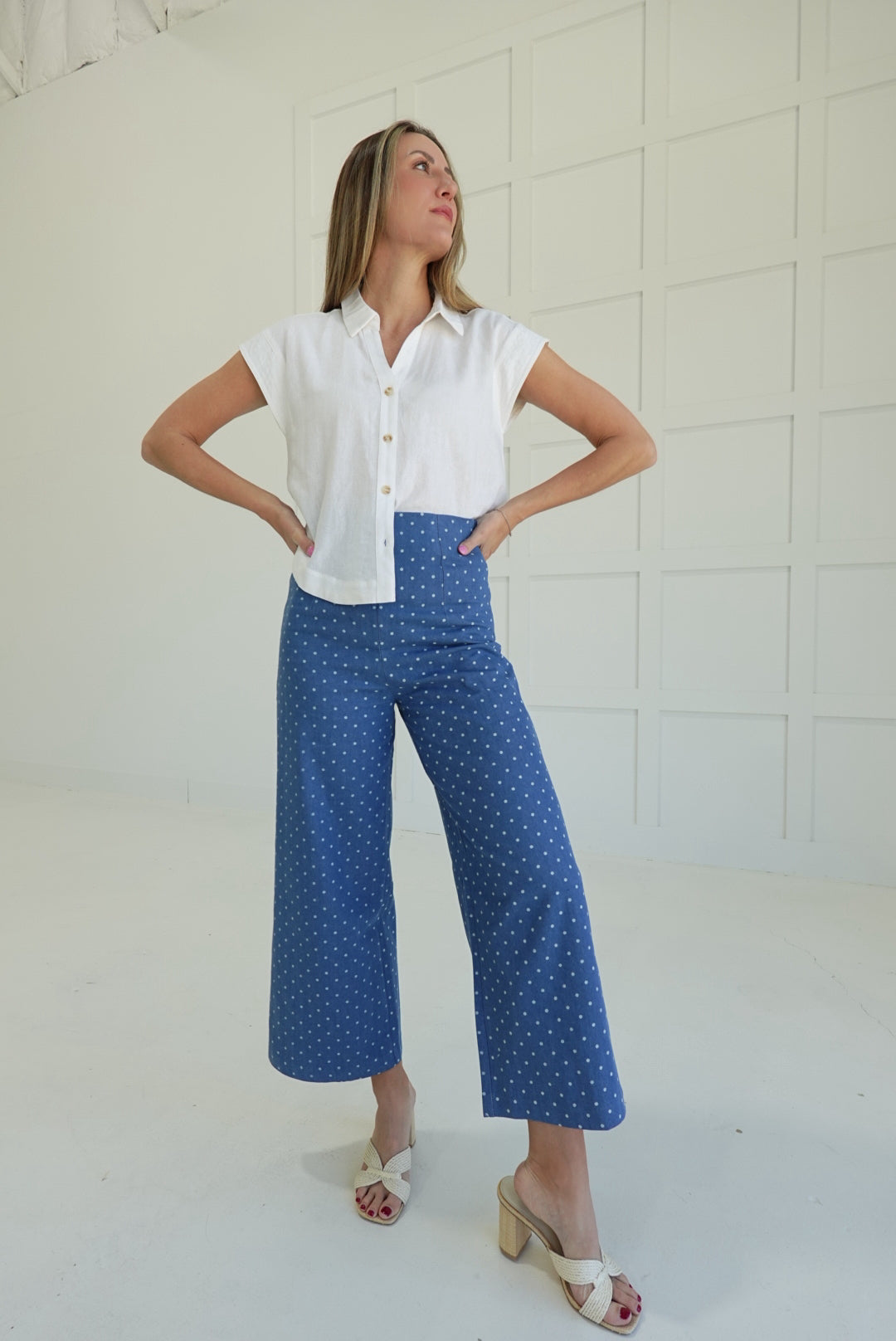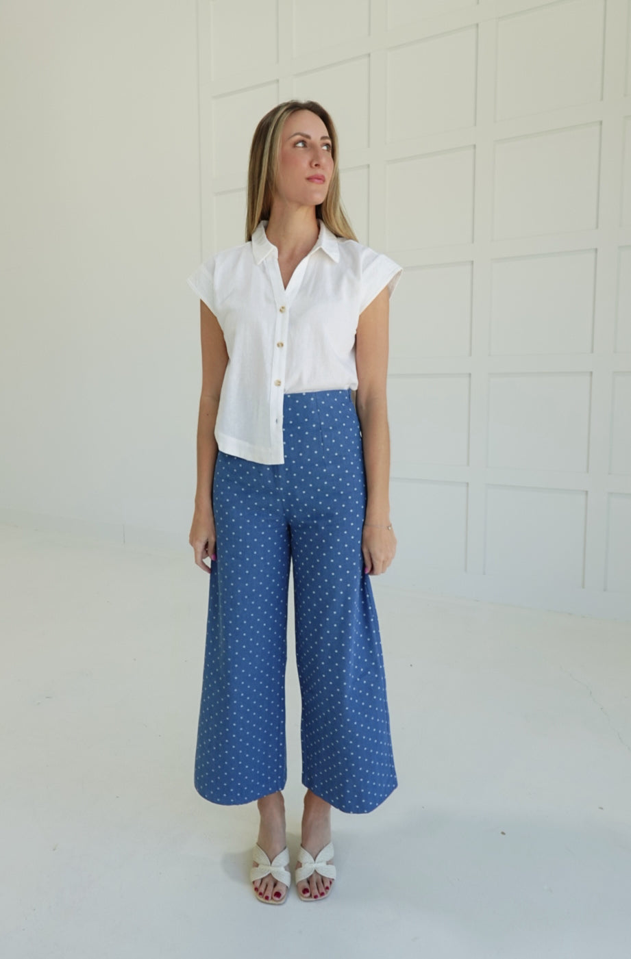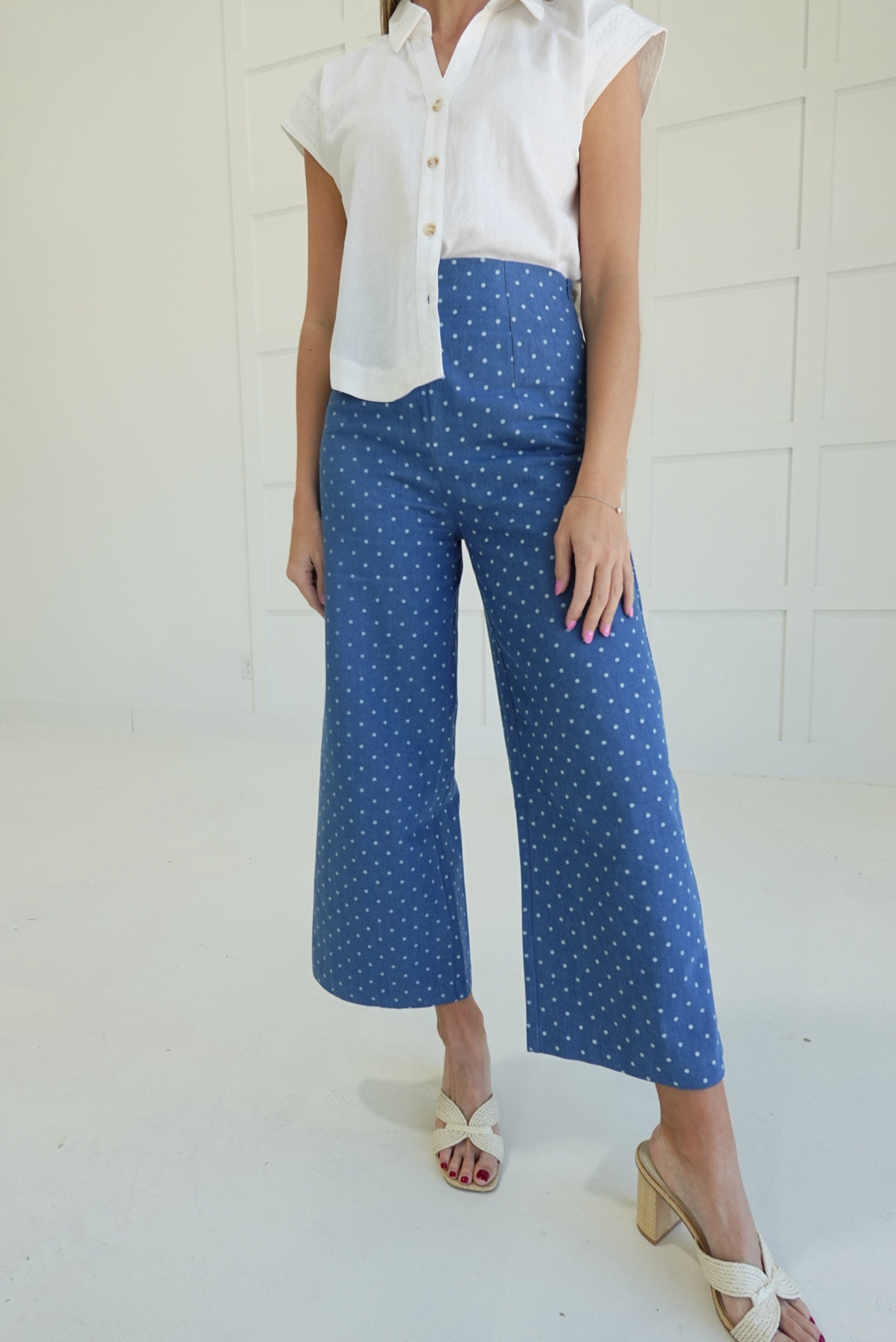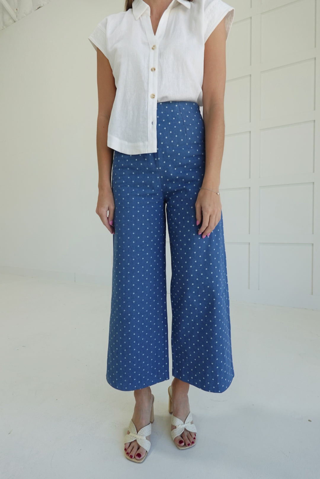 High-waist wide-leg silhouette meets bold polka-dot print in these statement pants. Designed for those who refuse to blend in, the structured waistband flatters while the flowing legs command attention. Perfect for layering over fitted tops or letting them stand solo as your outfit's main event. Versatile enough for brunch, bold enough for night out.