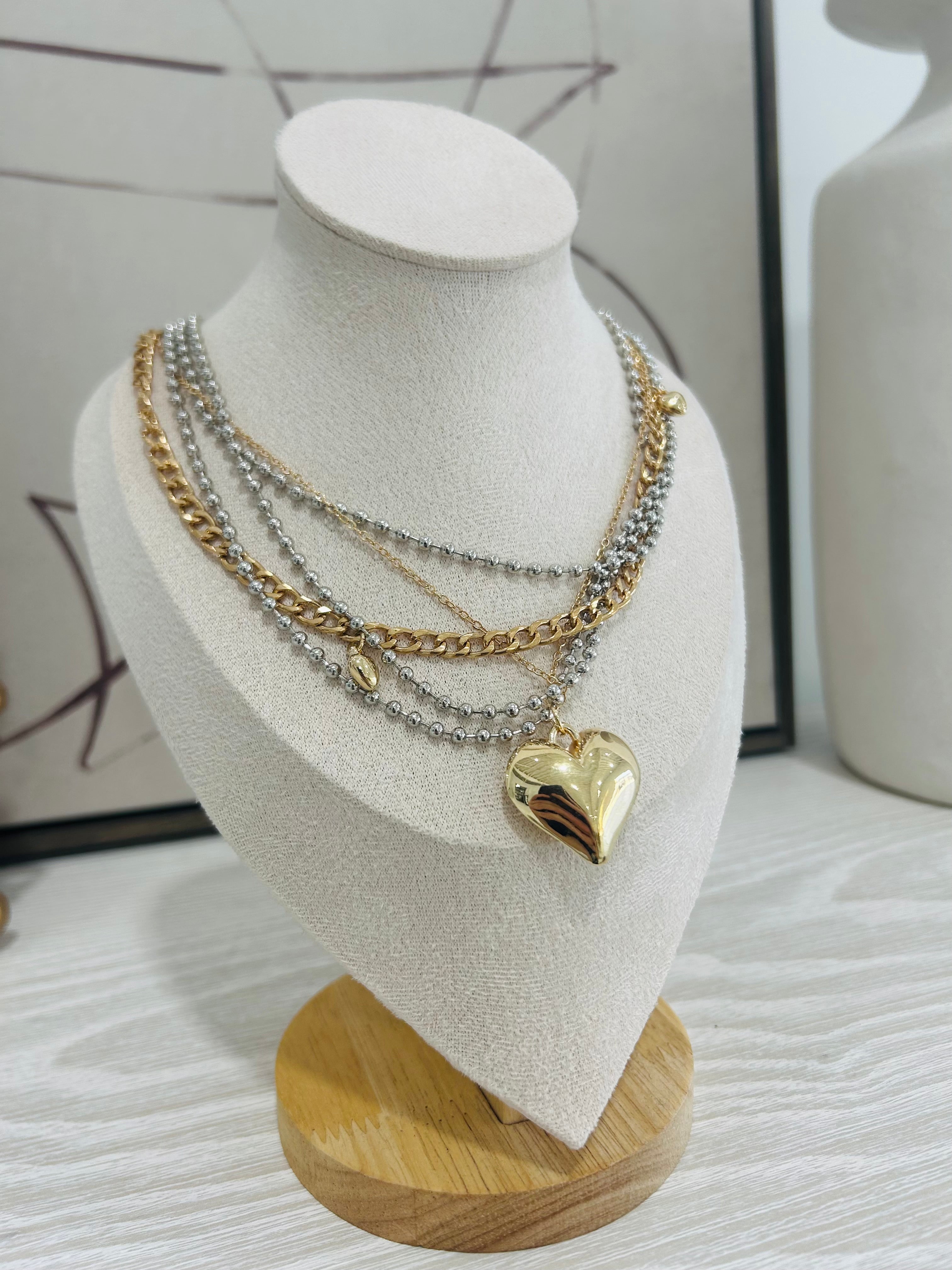 - Puff heart, layered necklace