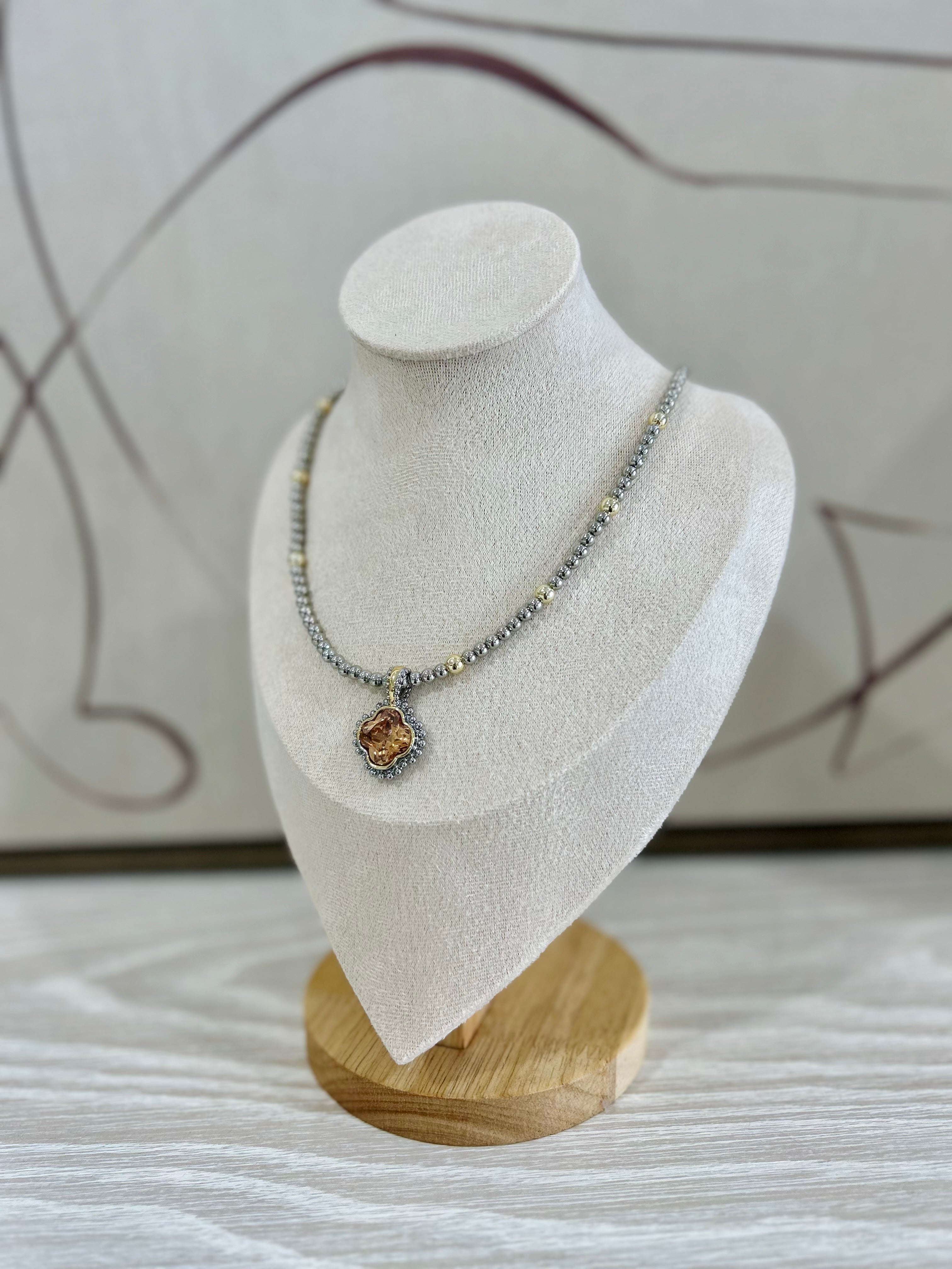 This exquisite Quatrefoil Two Tone Necklace combines the elegance of 14k gold with the sparkle of CZ stones, creating a versatile accessory that complements any outfit. Its distinctive quatrefoil design adds a touch of timeless charm, while the two-tone finish offers style flexibility. Perfect for everyday wear or special occasions, this necklace brings subtle sophistication and enduring beauty to your jewelry collection.