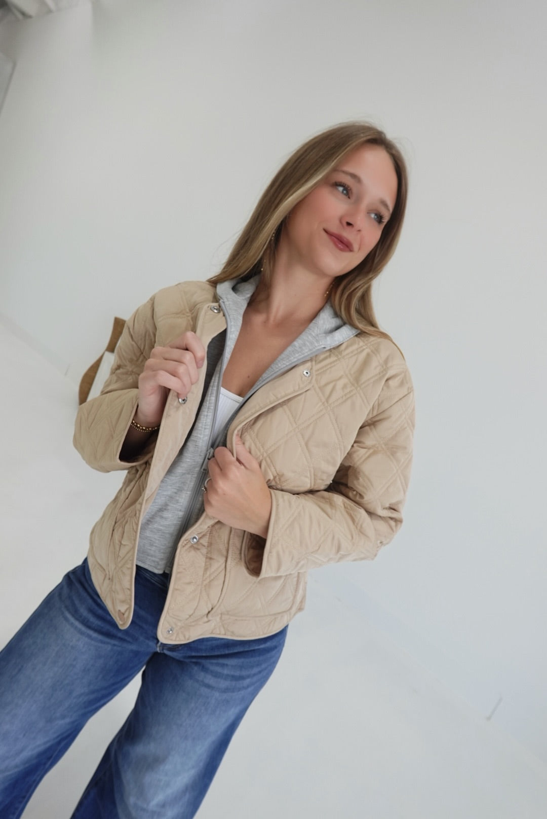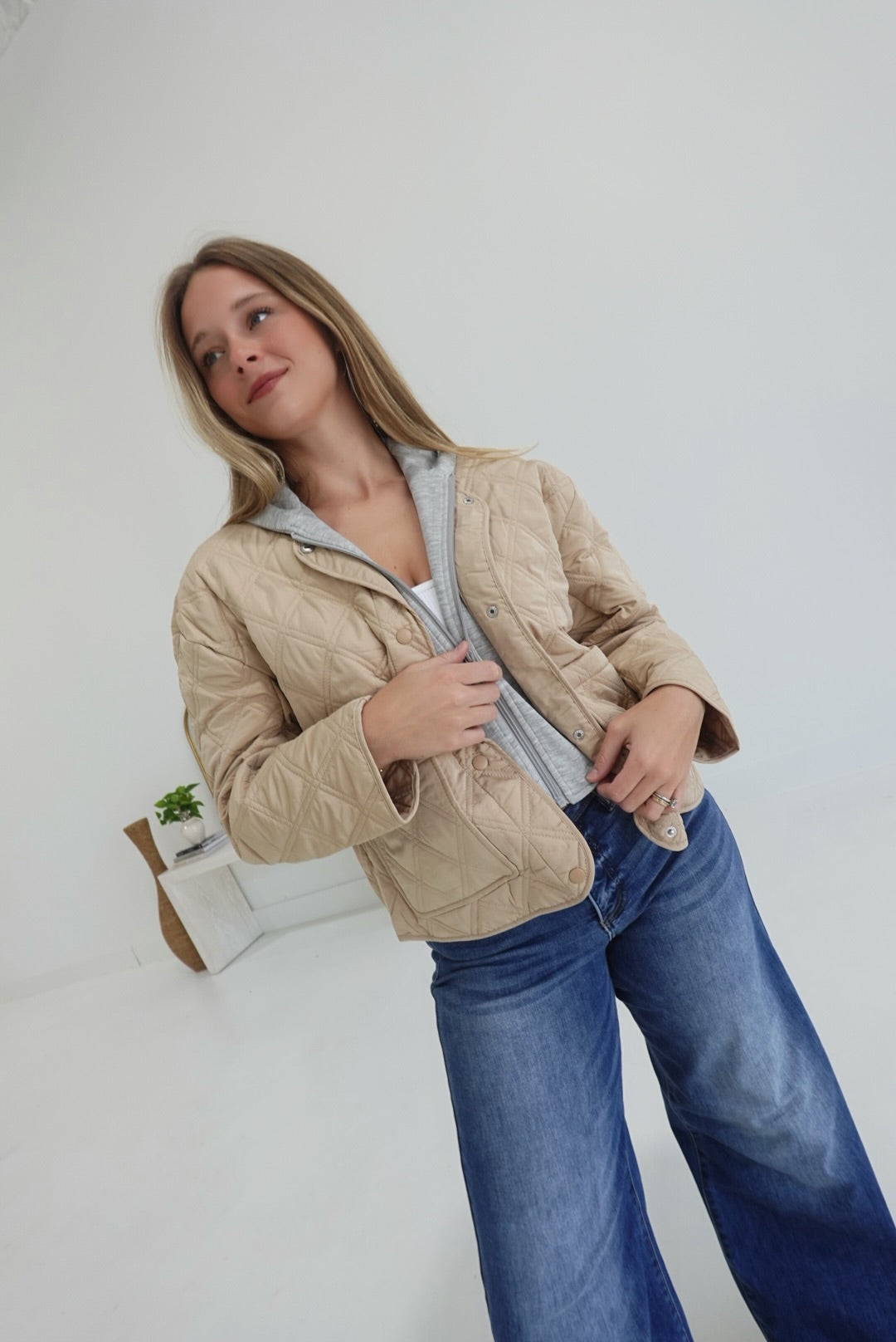 Quilted Combo Jacket - Khaki