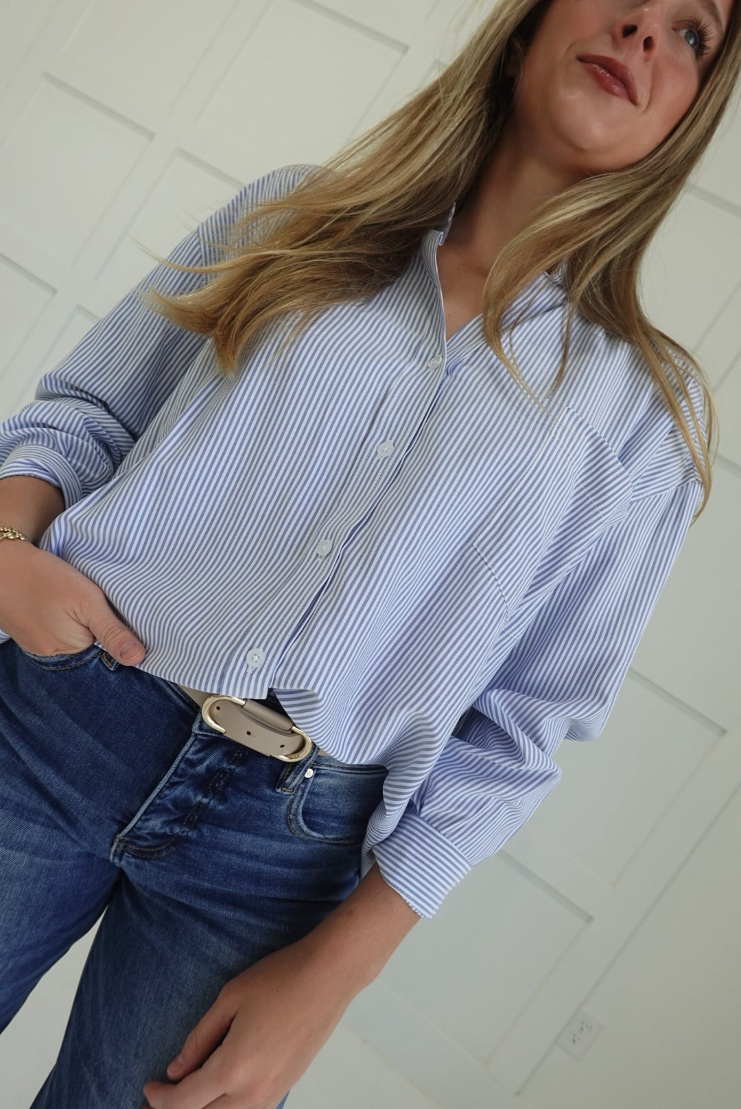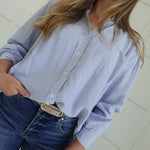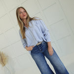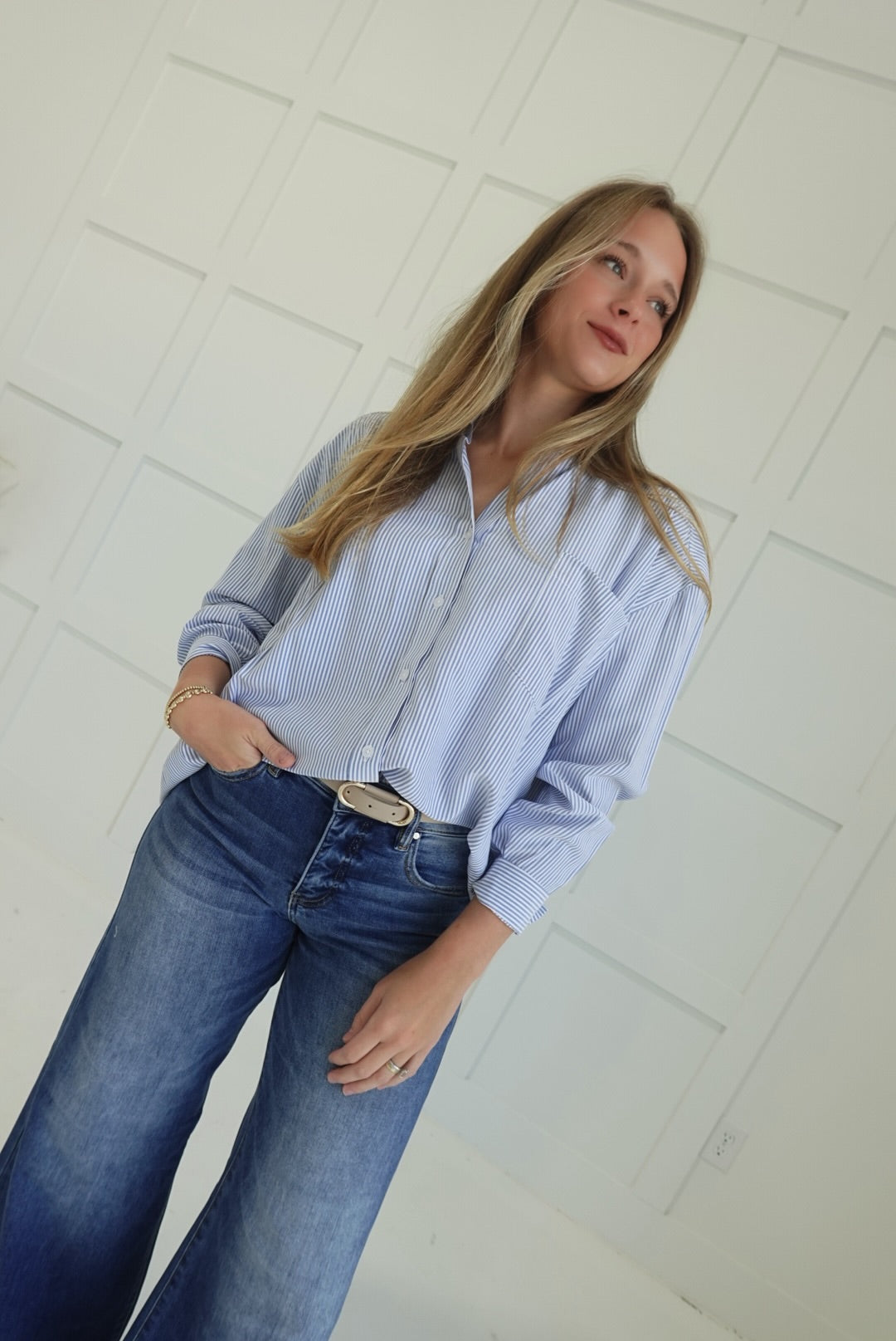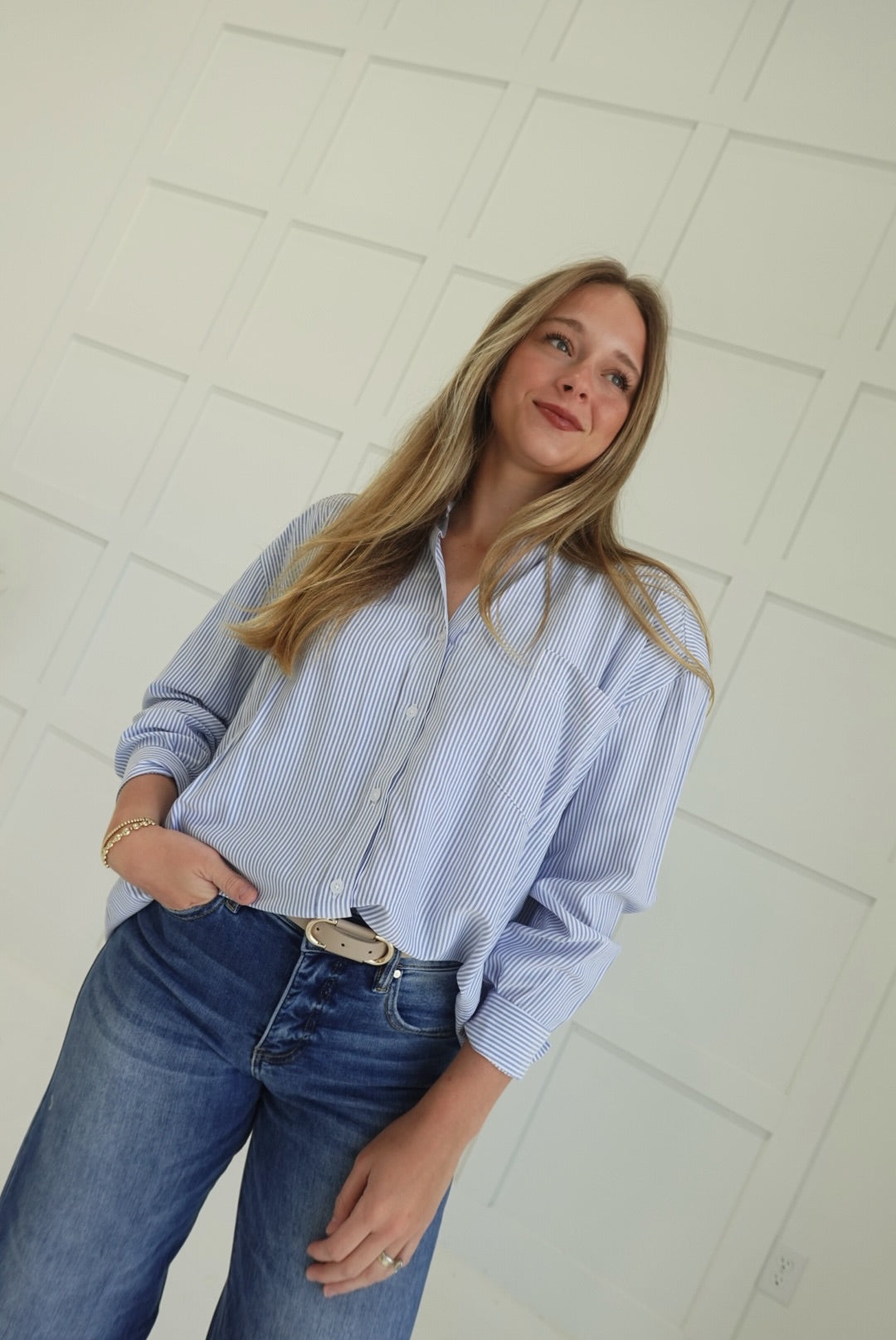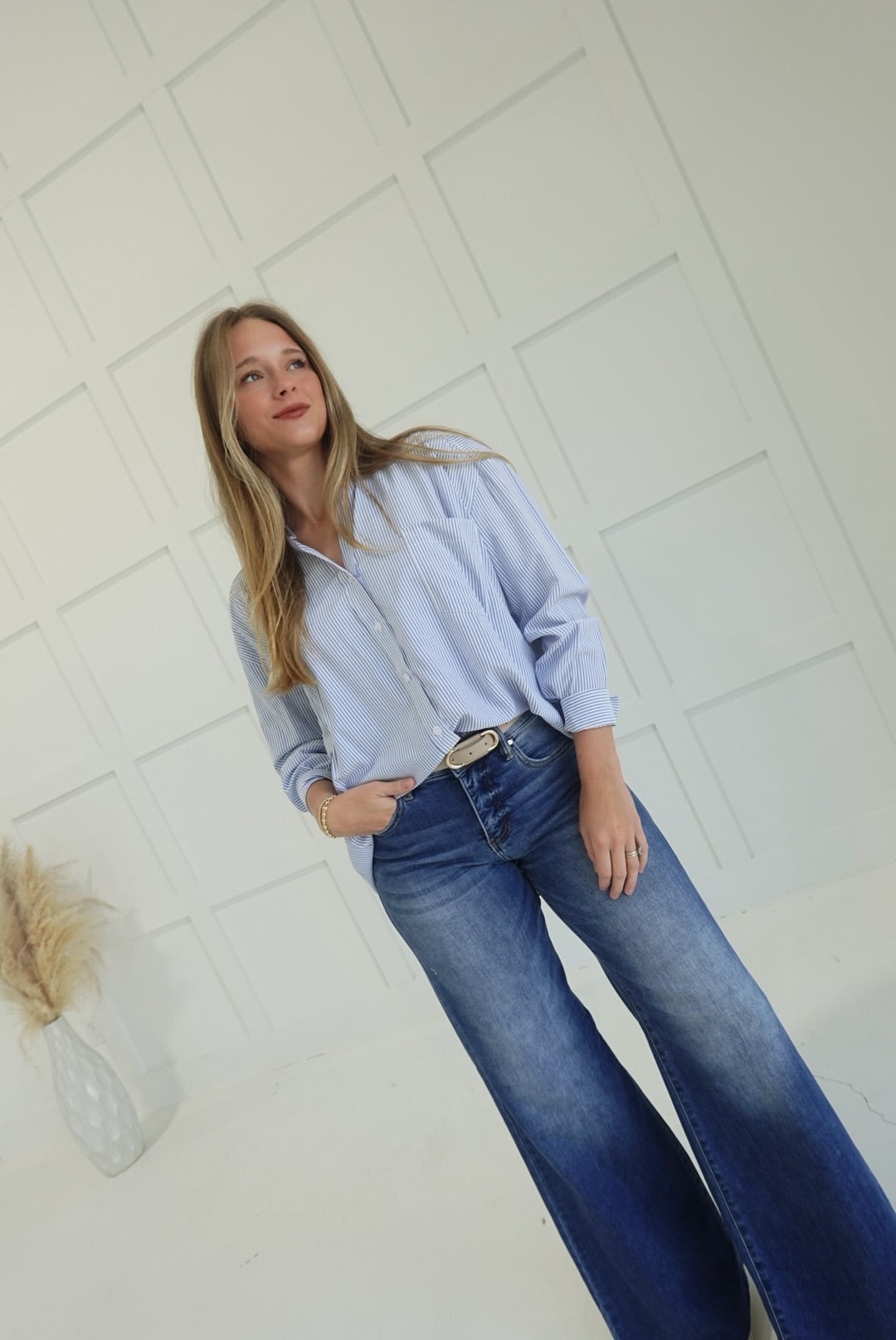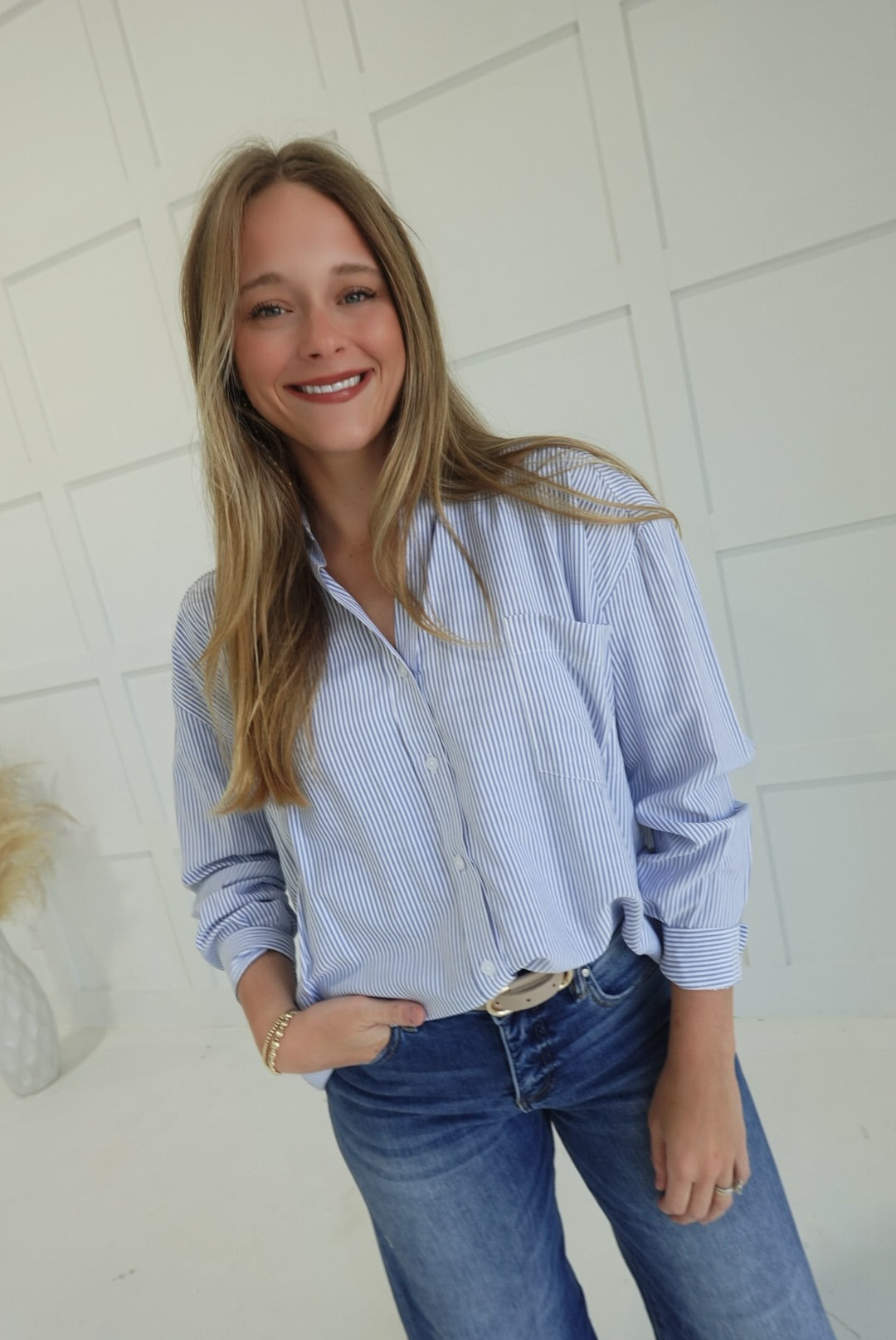 Embrace comfort and style with the Quirky Button Down Top in Blue. This oversized long sleeve shirt features a classic collar and button-down front, offering a relaxed yet polished look. Its loose fit allows for ease of movement, making it perfect for layering or wearing on its own. Crafted to keep you comfortable throughout the day, this top supports your casual and chic wardrobe effortlessly.