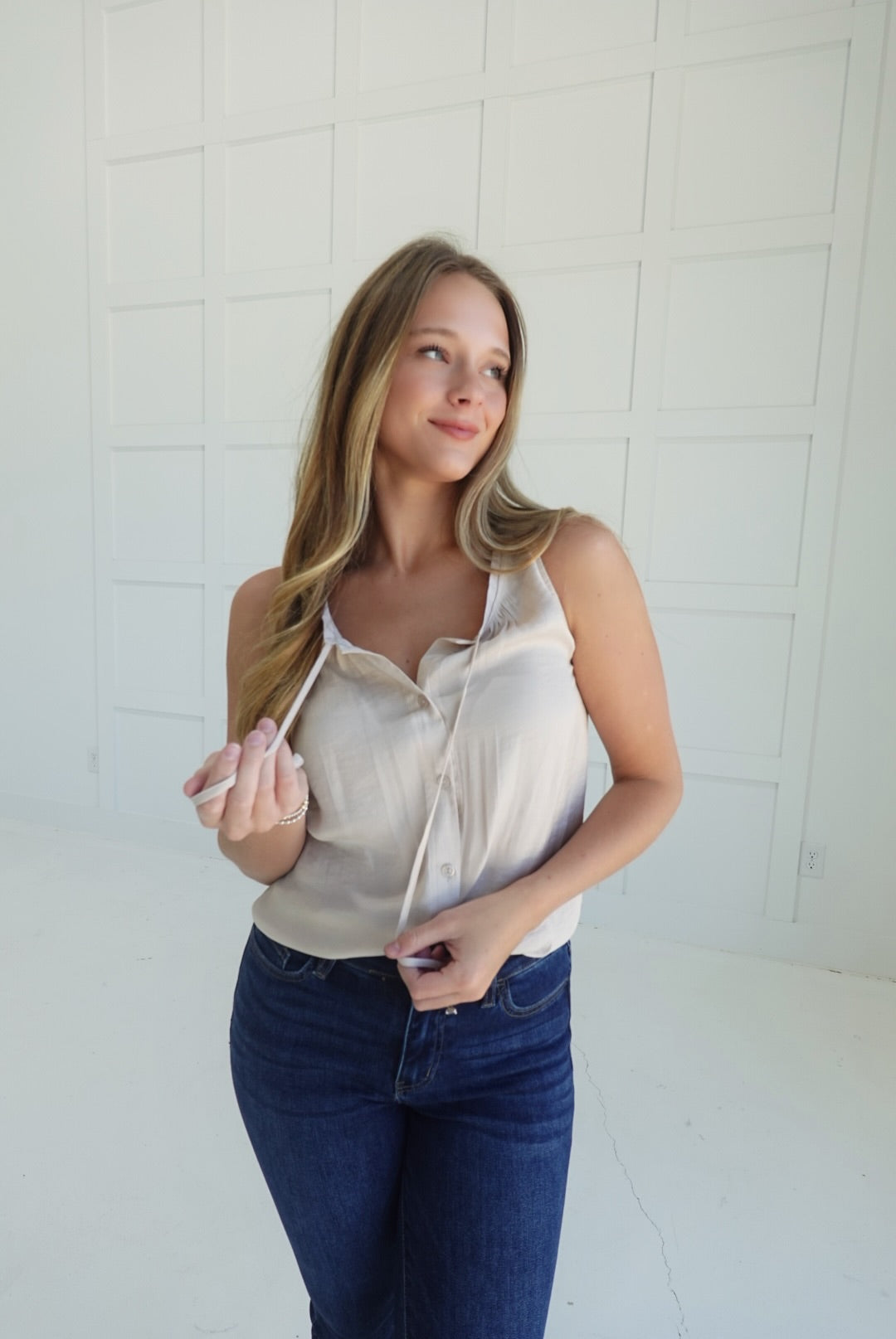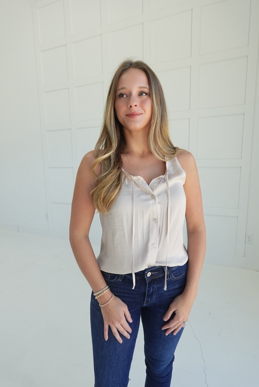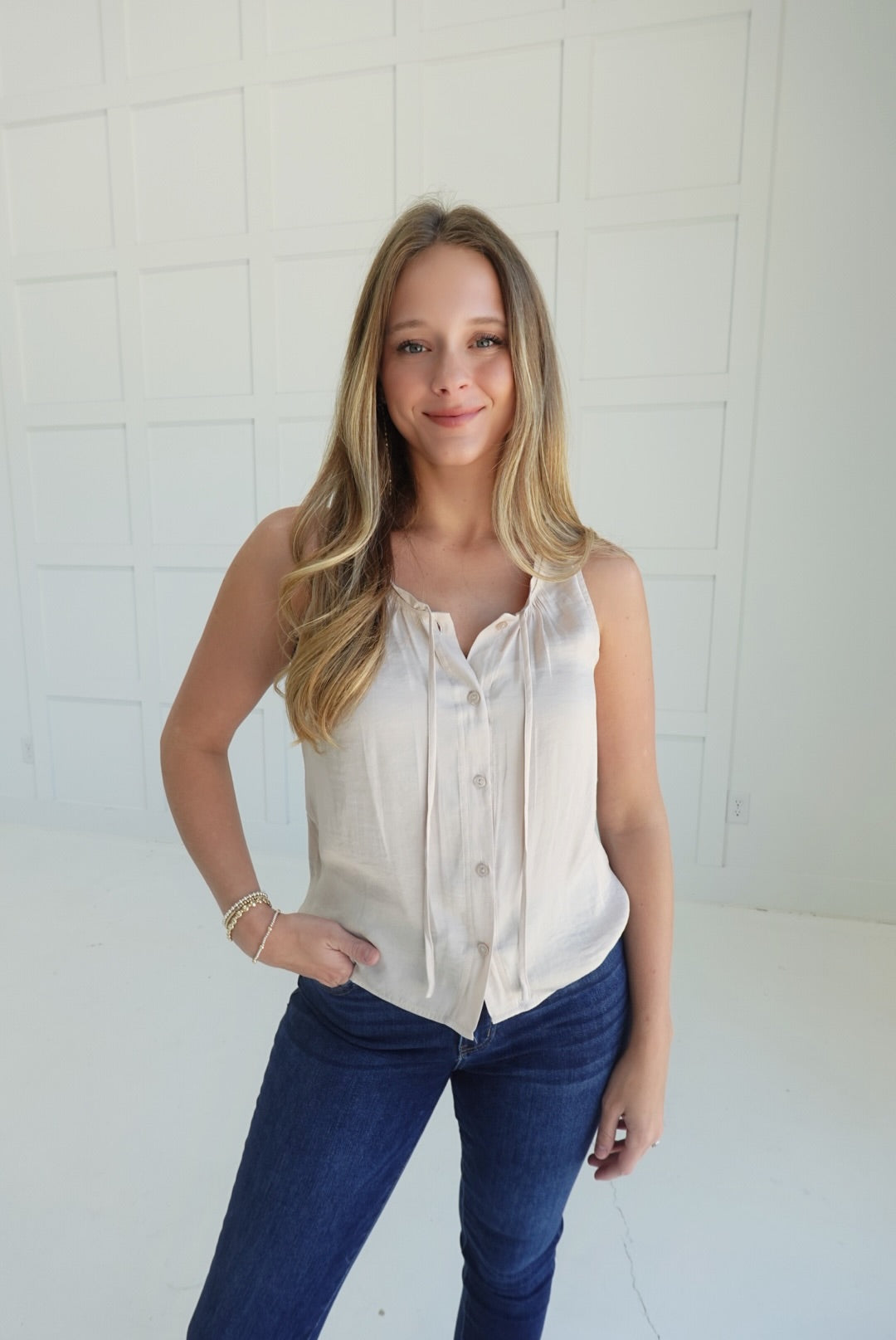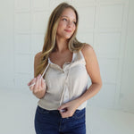 Embrace effortless comfort with the Reason To Go Top in Papyrus. This relaxed button-front tank offers a laid-back fit that flows naturally, making it easy to wear all day. The soft fabric and simple design provide breathability and ease, perfect for layering or wearing solo on warm days. It’s a dependable, stylish choice that adapts to your pace, supporting you in every step of your day.