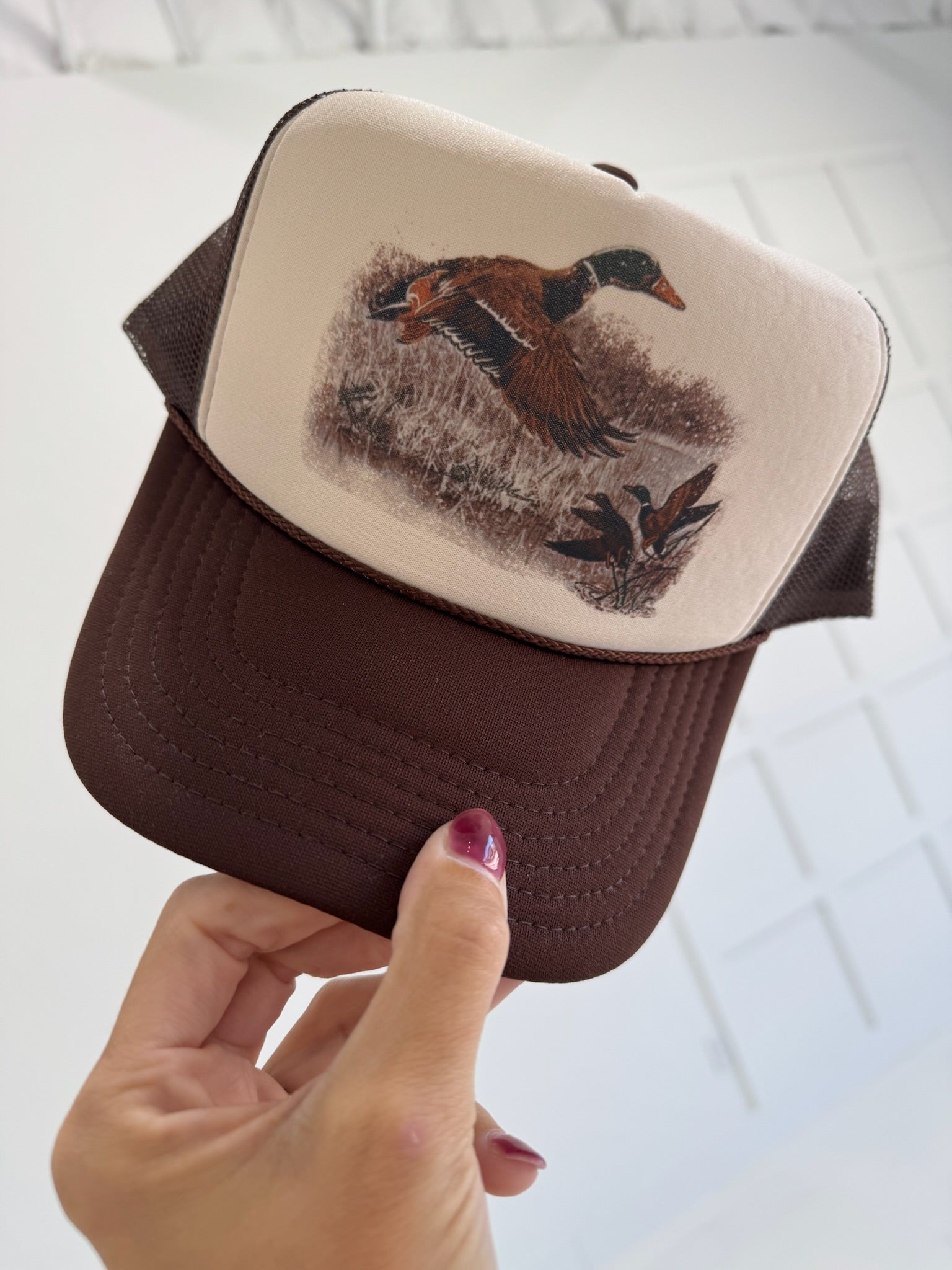 Embrace vintage style with this classic retro duck trucker cap. Featuring a structured six-panel design and curved bill, it's the perfect blend of nostalgic charm and everyday wearability. The breathable mesh back keeps you comfortable during warm weather, while the adjustable snapback closure ensures a personalized fit for everyone. Whether you're channeling '80s vibes or just love timeless headwear, this cap delivers authentic trucker aesthetic with modern comfort. A versatile wardrobe essential that pairs effortlessly with casual outfits.
