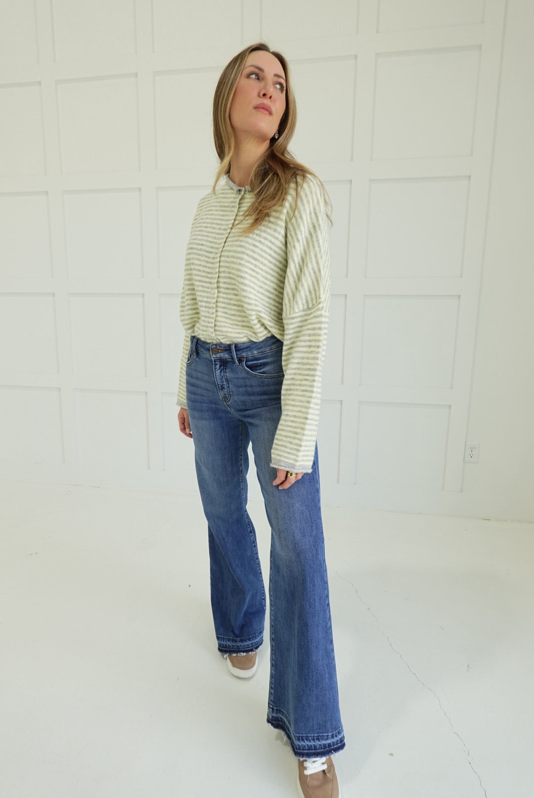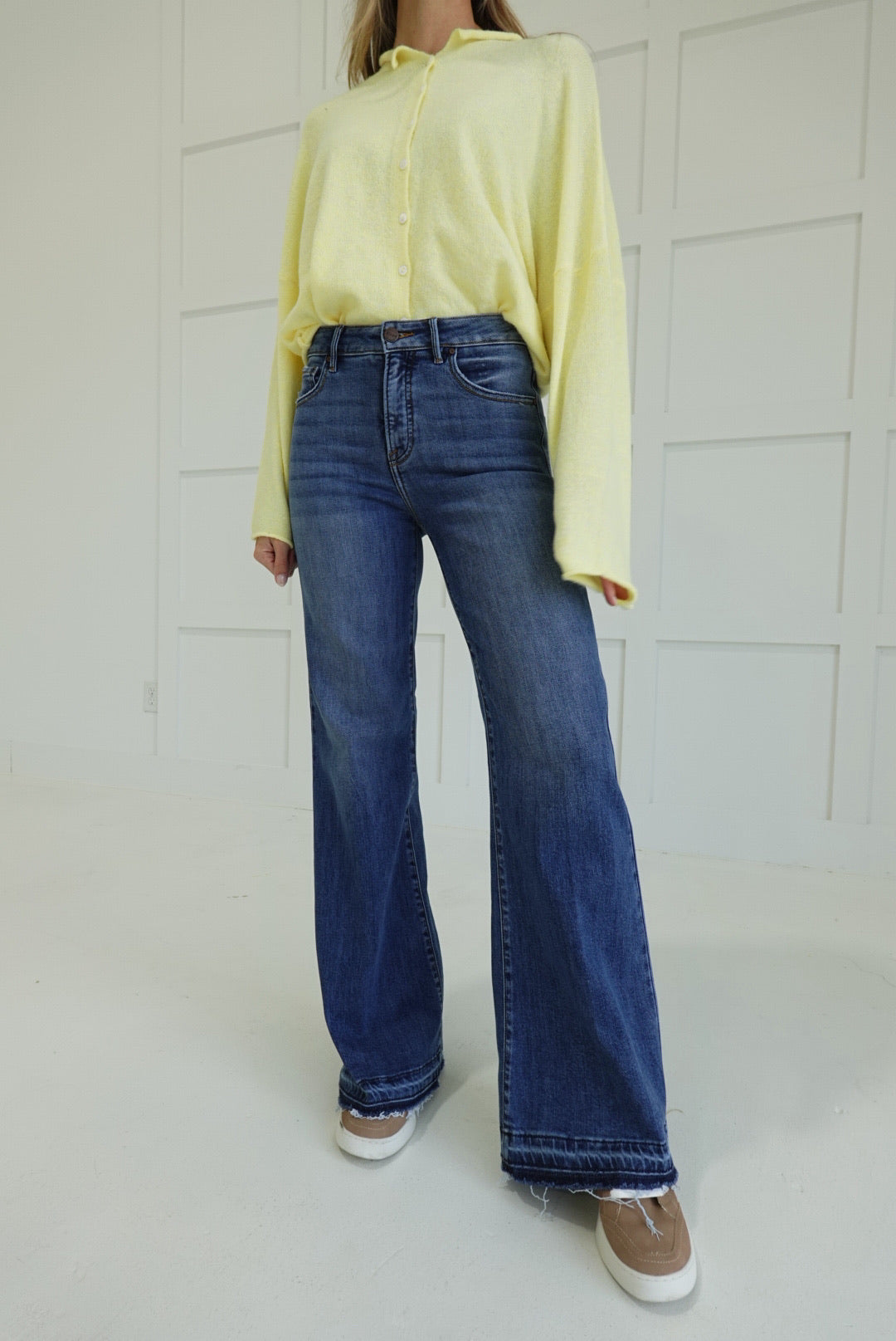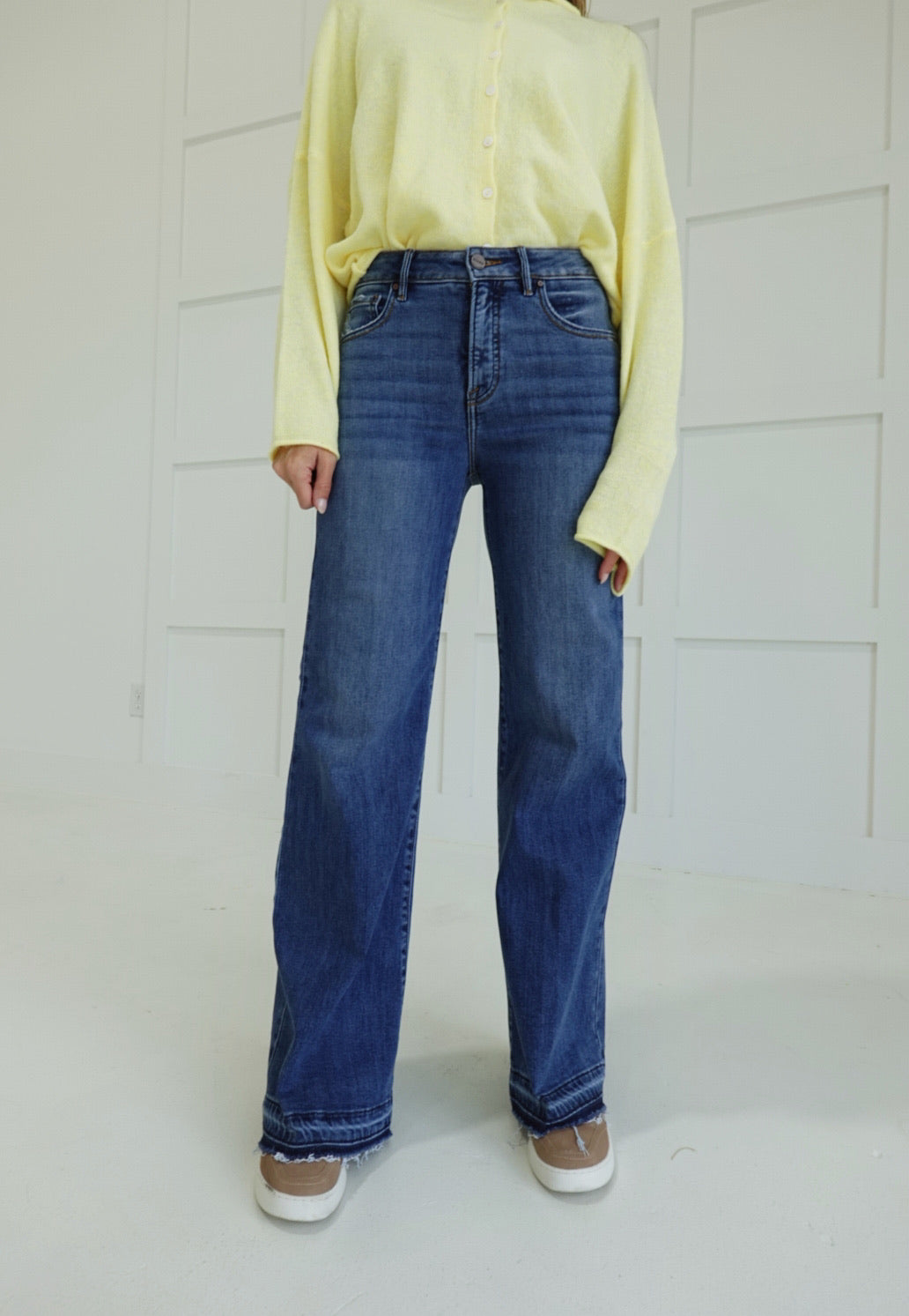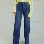 Revel in effortless confidence with these high-rise wide-leg jeans that command attention. The elevated waistline flatters and elongates, while the generous leg creates a bold, fashion-forward silhouette. A released hem adds an undone edge—perfect for styling with everything from minimalist sneakers to statement heels. Versatile enough for everyday wear yet daring enough to anchor any editorial look, these jeans are a wardrobe essential for those who refuse to blend in.