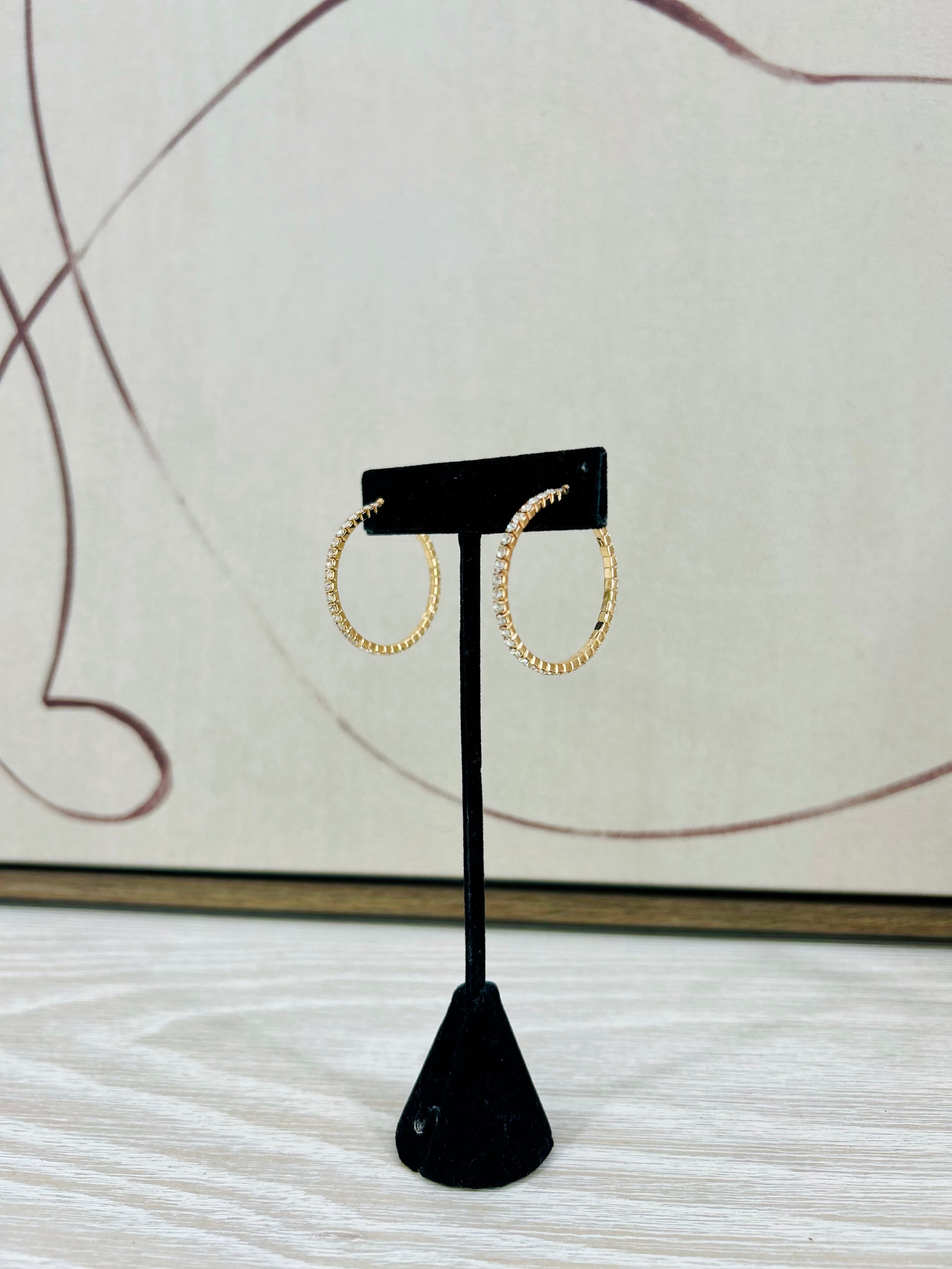Add a touch of sparkle to your everyday look with these 30mm rhinestone paved hoop earrings. Their shimmering rhinestone detail catches the light beautifully, making them perfect for both casual outings and special occasions. Lightweight and comfortable, they offer a stylish way to elevate any outfit effortlessly.