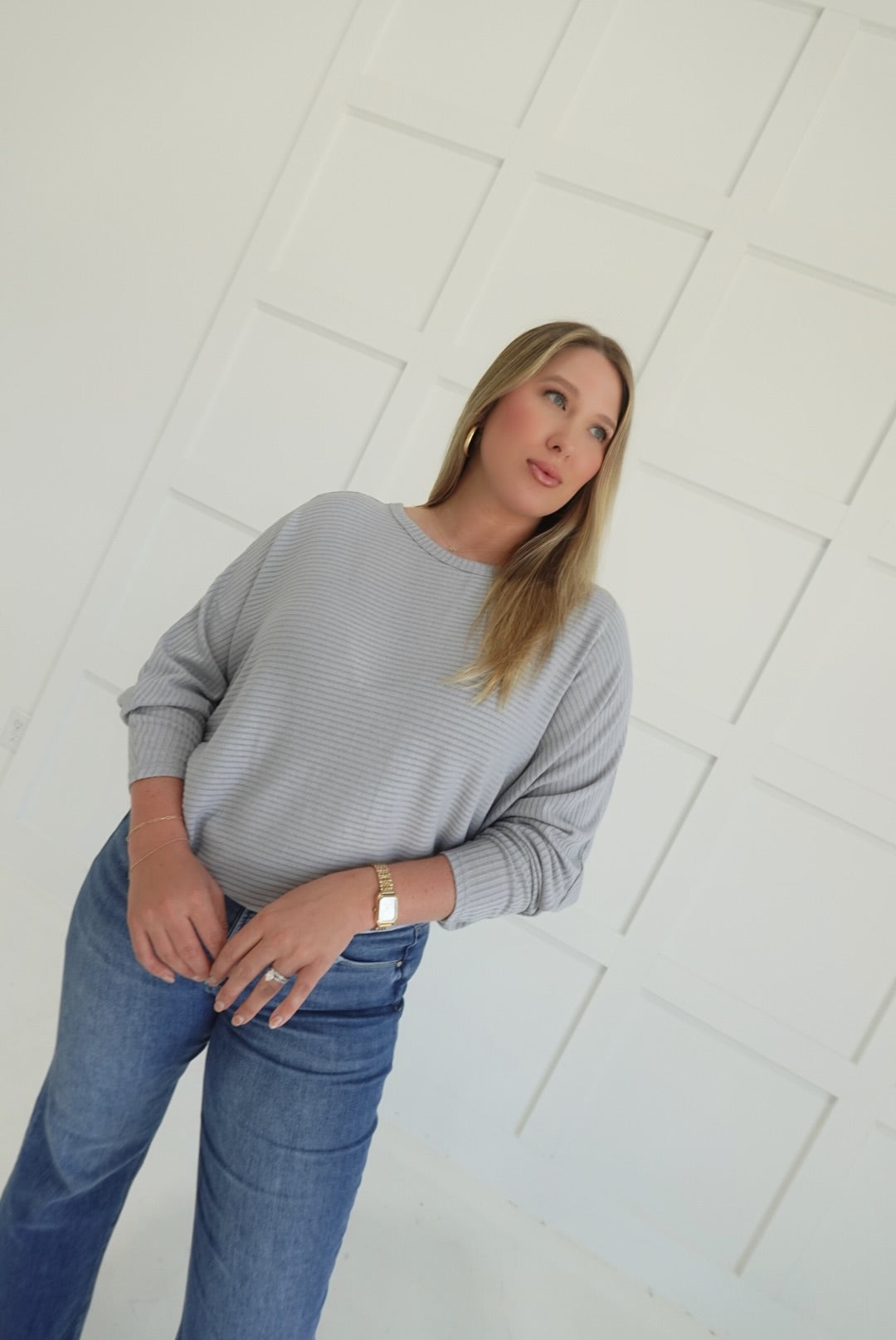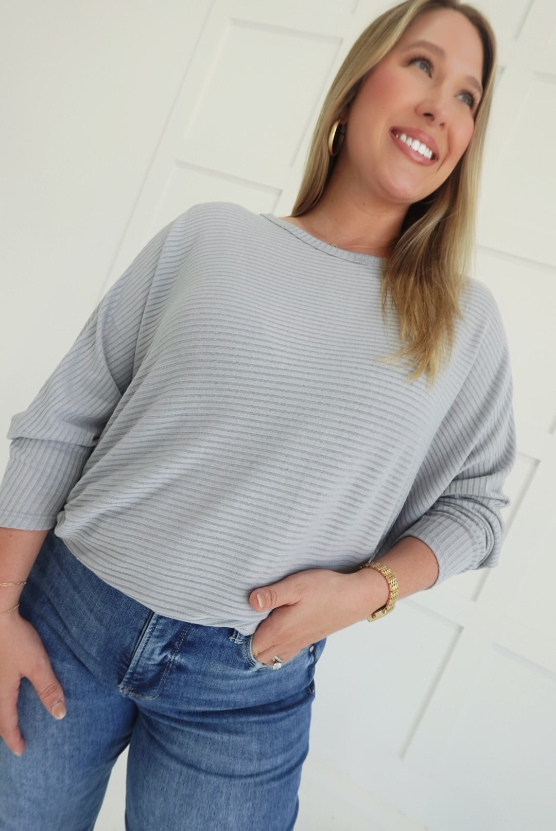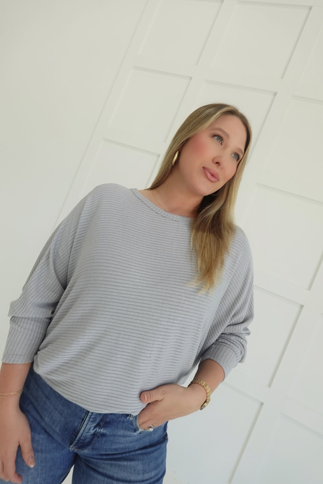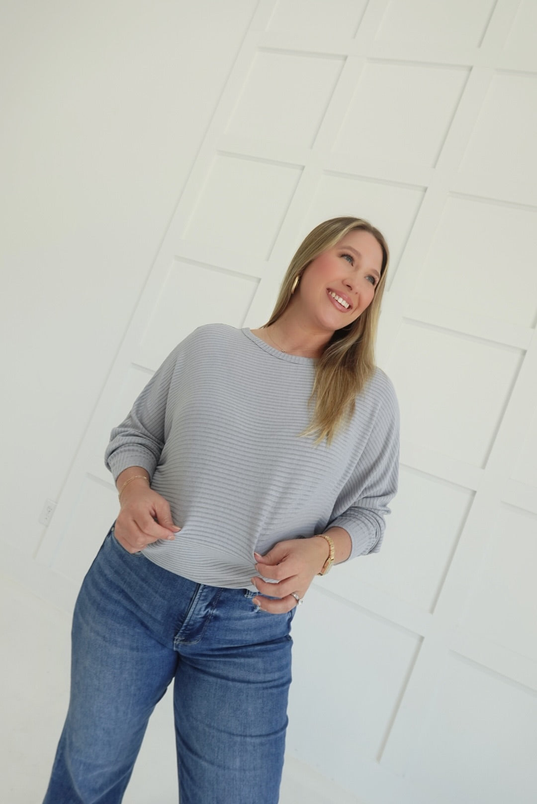 Stay comfortable and stylish in the Ribbed + Ready Top. Featuring a flattering boat neck and relaxed batwing sleeves, this ribbed sweater offers ease of movement and cozy warmth. Its soft fabric and thoughtfully designed fit make it an ideal choice for everyday wear, supporting your confidence with both comfort and subtle elegance.