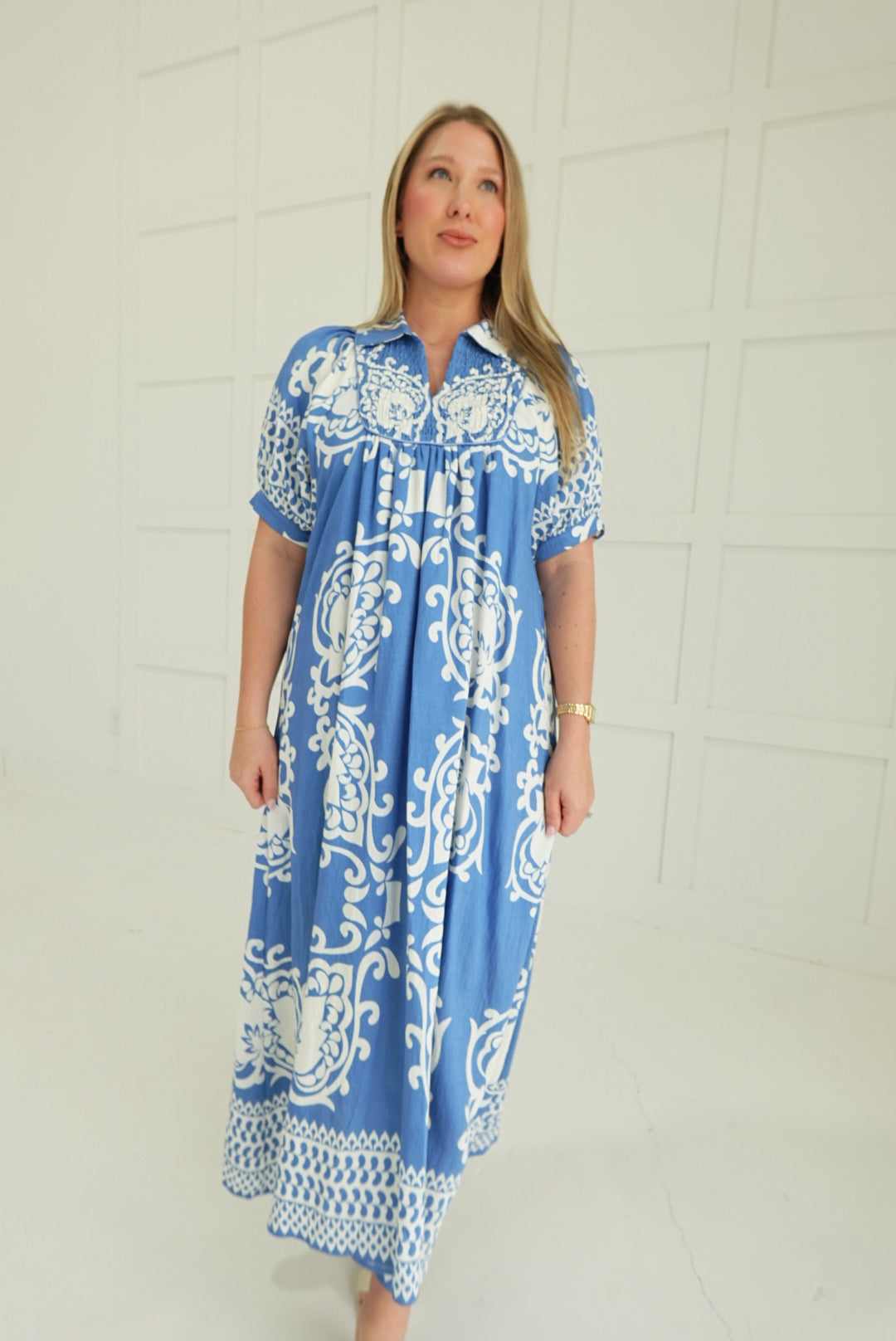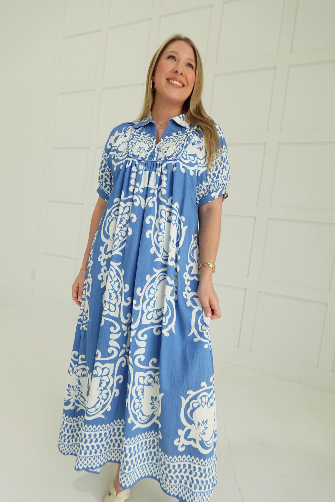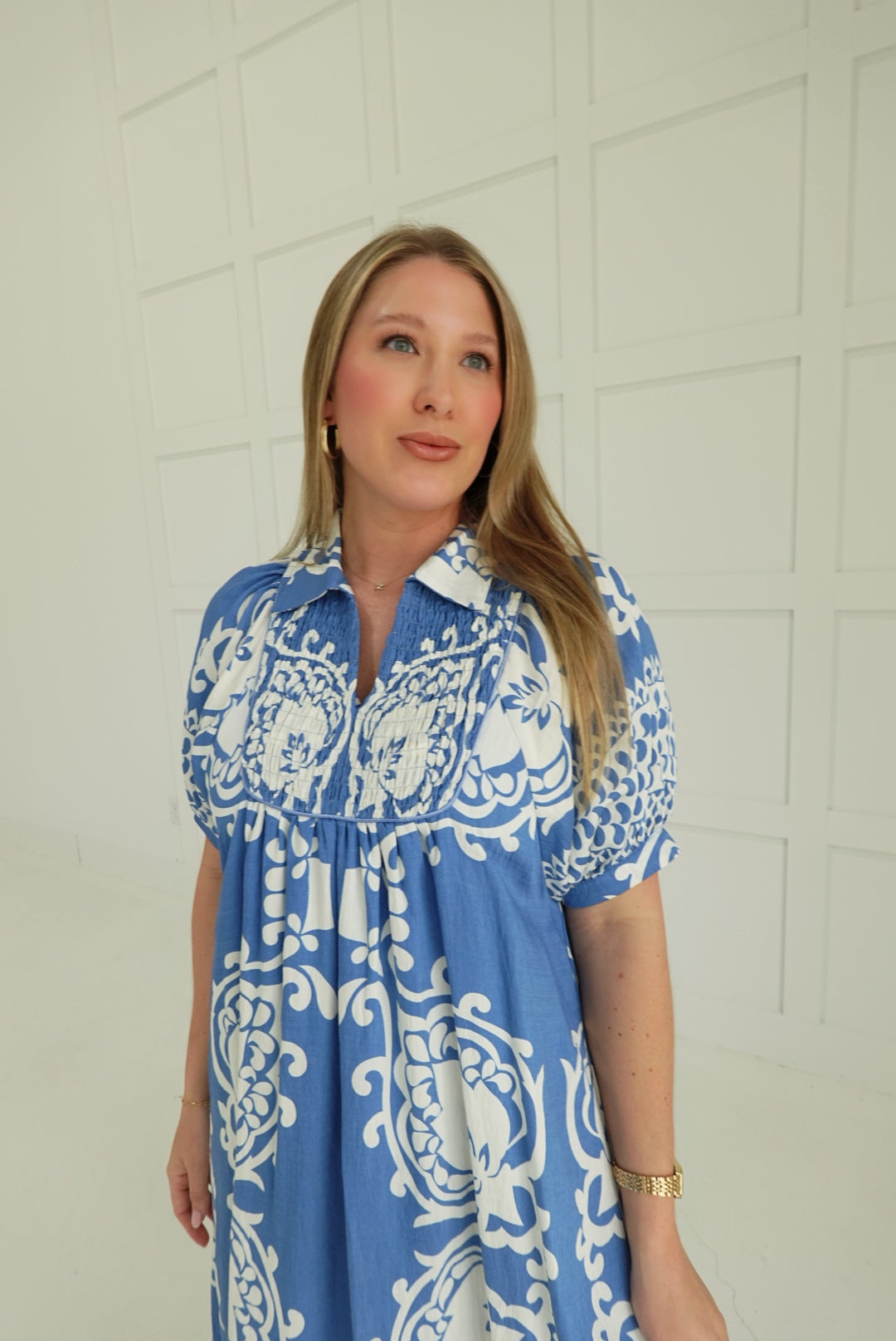 - Short Puff Sleeves With Smocked Yoke
