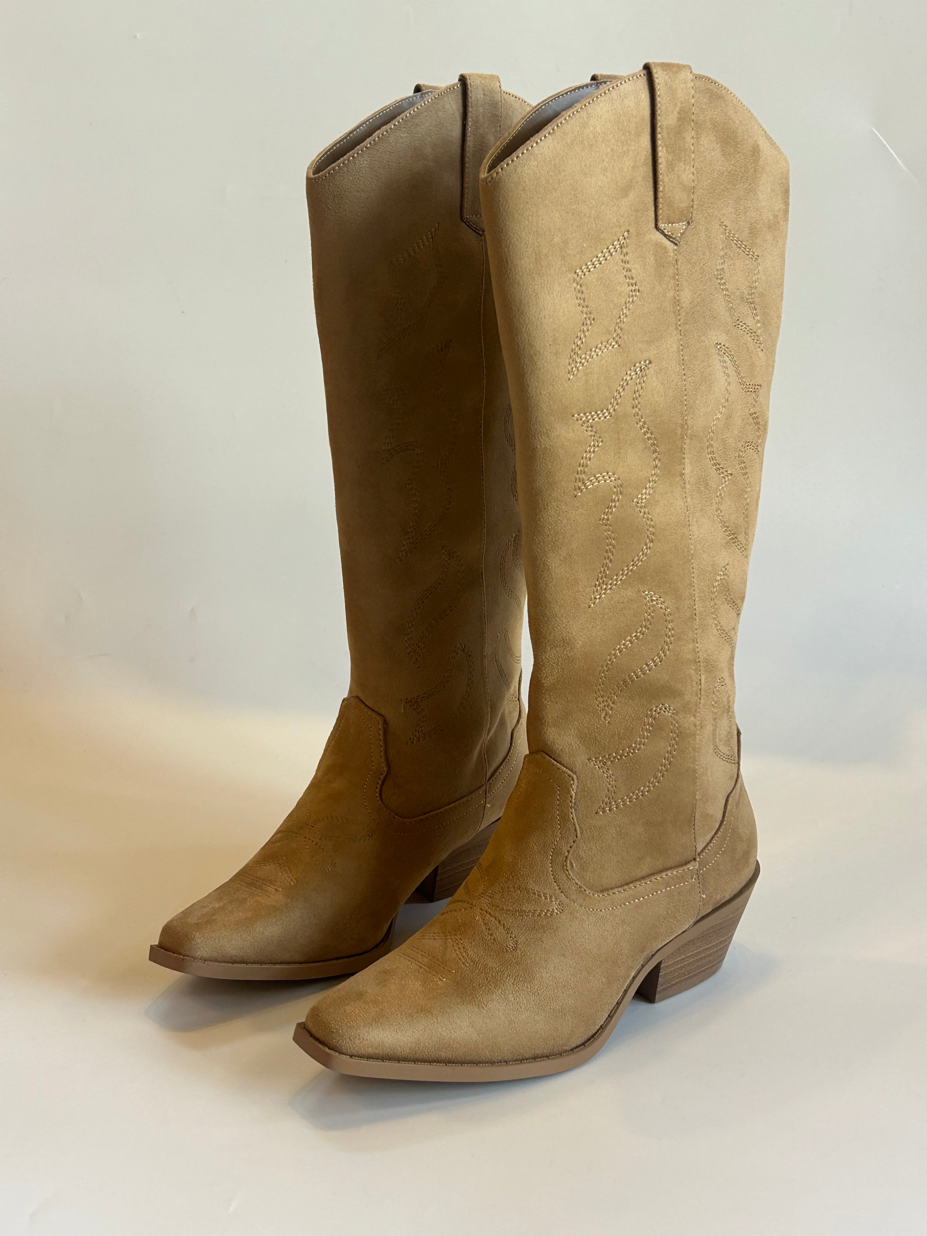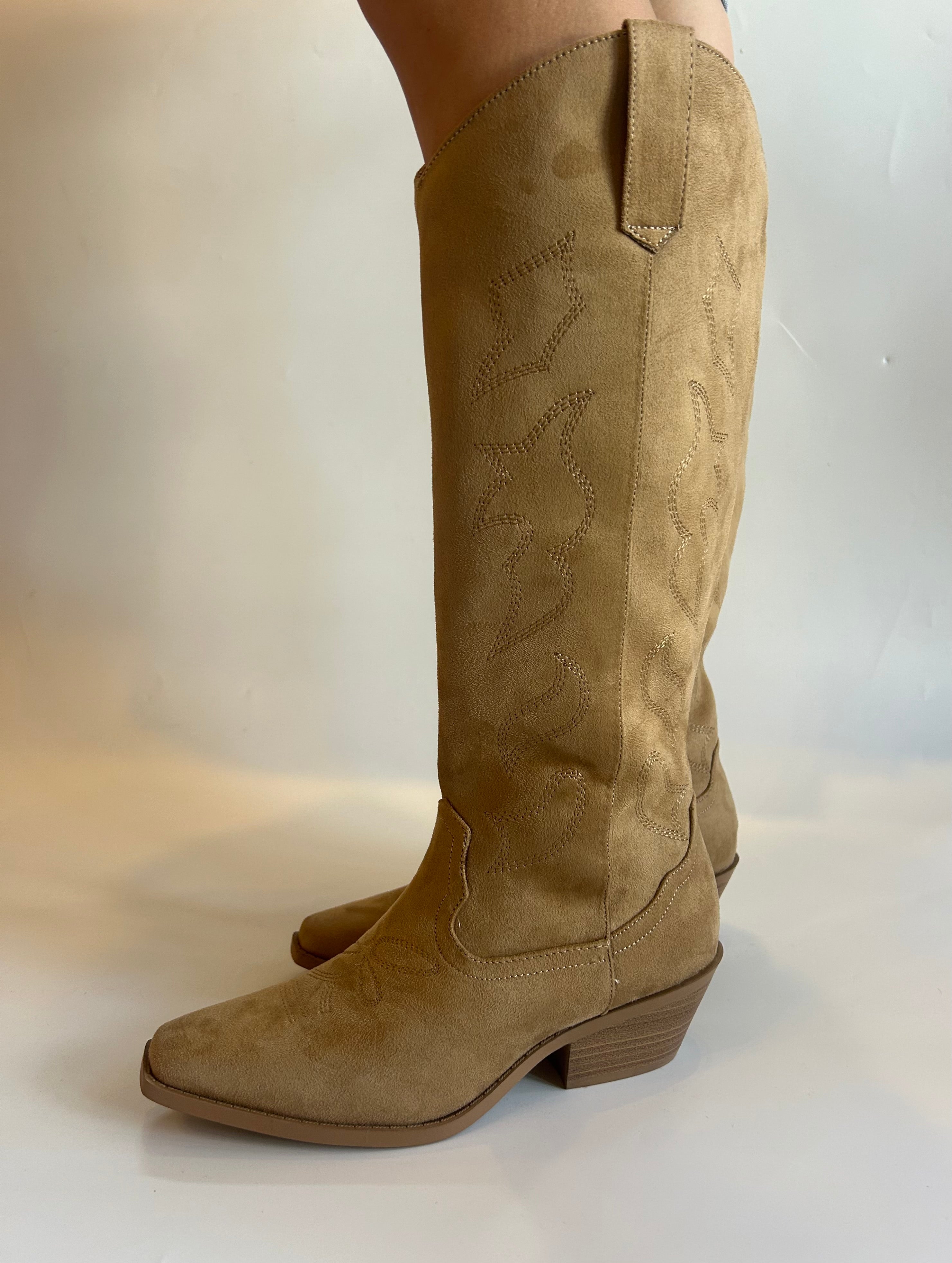 Step out in comfort and style with the Sahara Boot. Crafted in a soft camel faux suede, this western-inspired boot features a low block heel that provides reliable support for all-day wear. Its casual design effortlessly complements any outfit, making it a versatile addition to your wardrobe. Perfect for those seeking both fashion and comfort in one easy-to-wear boot.