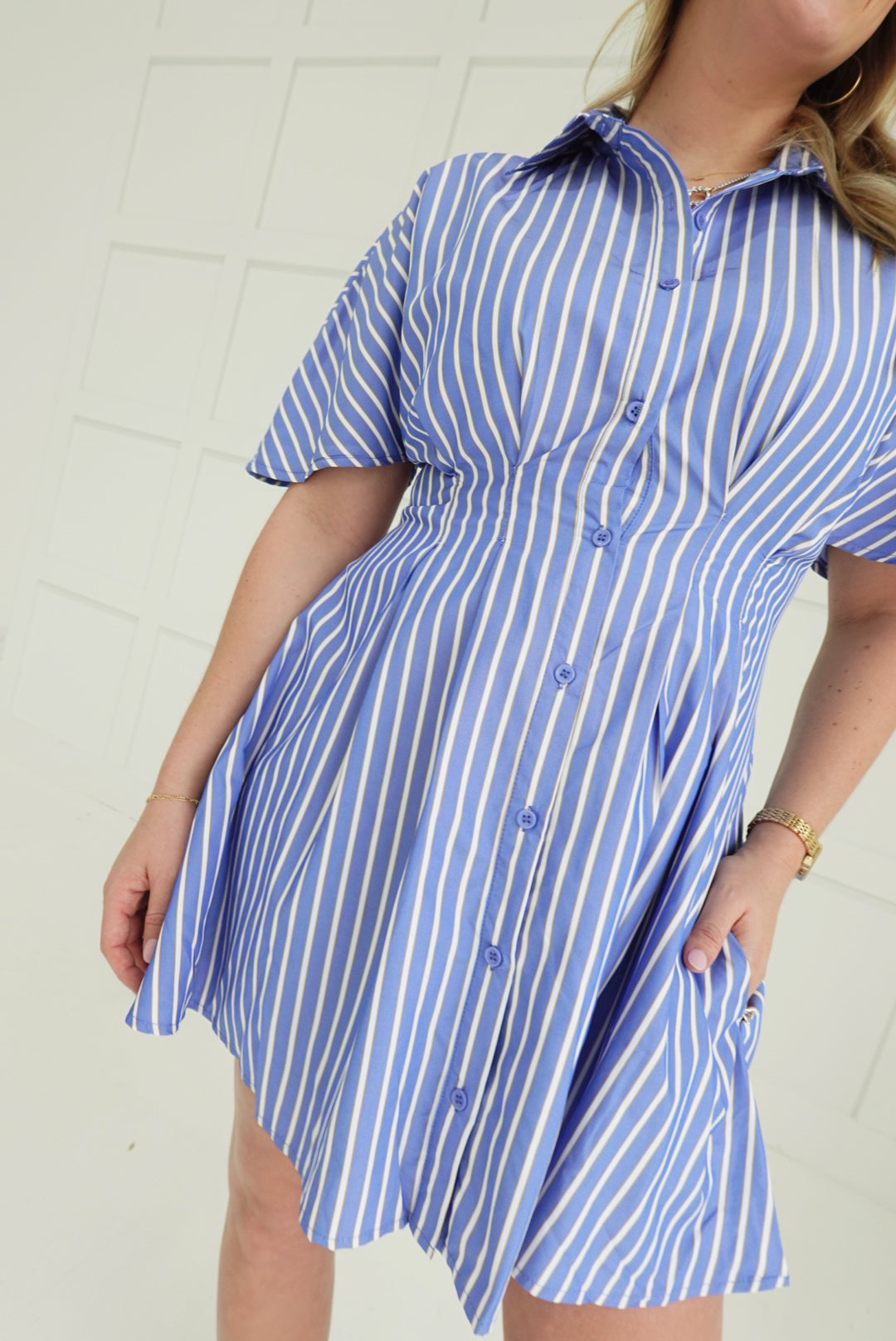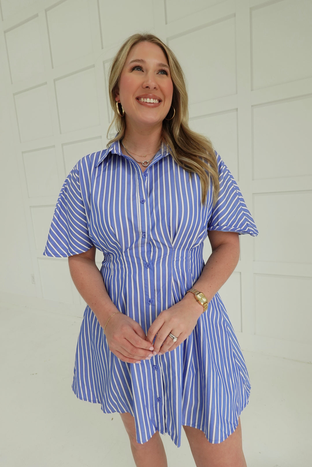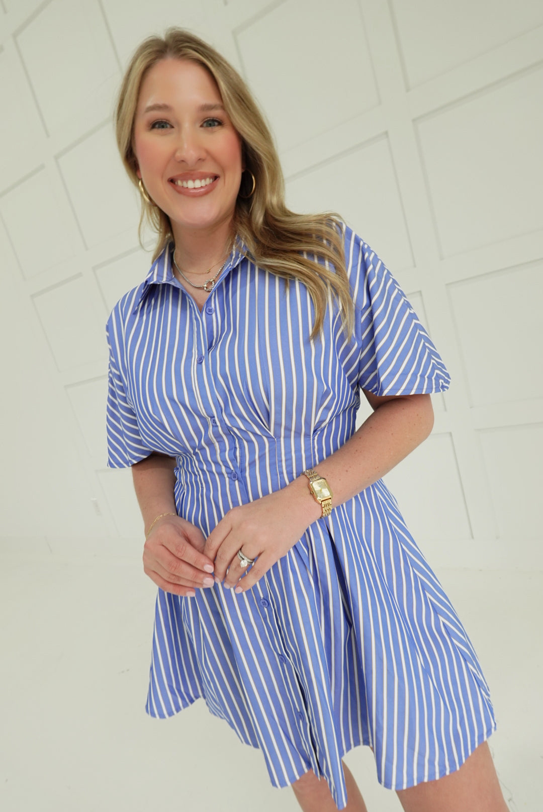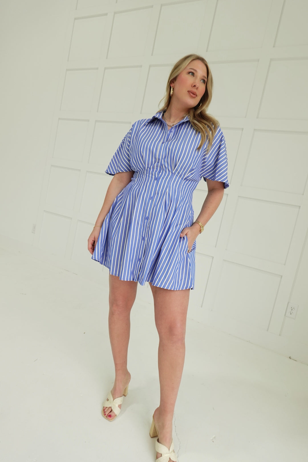 Effortlessly bold and undeniably chic, the Sanders Mini Dress commands attention with its cinched waist silhouette and crisp button-front design. Short sleeves keep things fresh and modern, while the tailored fit flatters every curve. Dress it up for nights out or down with sneakers for weekend confidence. A versatile staple that refuses to blend in.