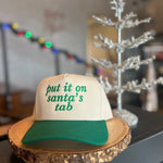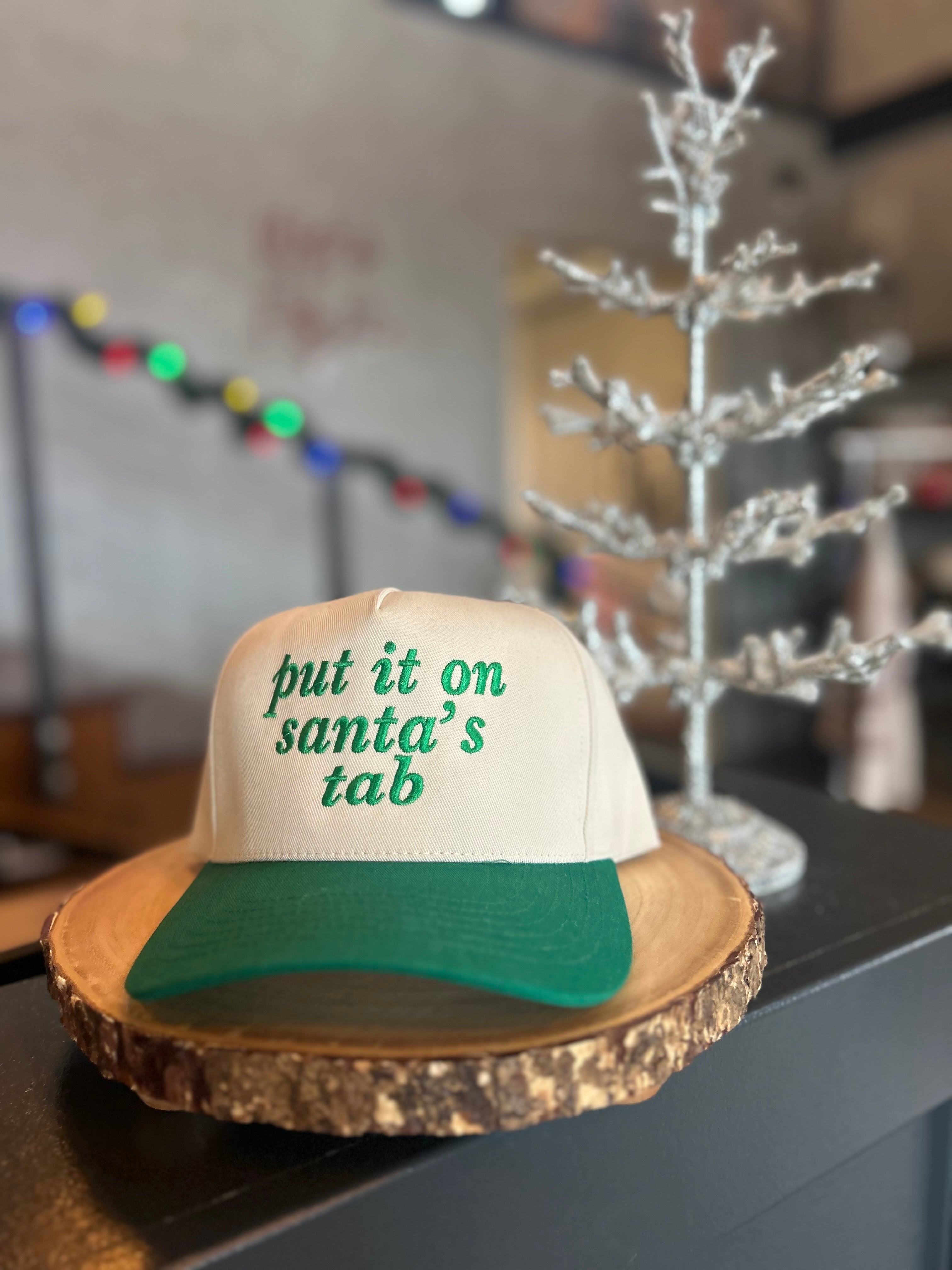 Get in the holiday spirit with Santa's Tab Hat! This stylish baseball cap features "Put It On Santa's Tab" embroidery that adds some festive flair. Perfect for any Santa enthusiast, this hat is a great gift or accessory for spreading holiday cheer.