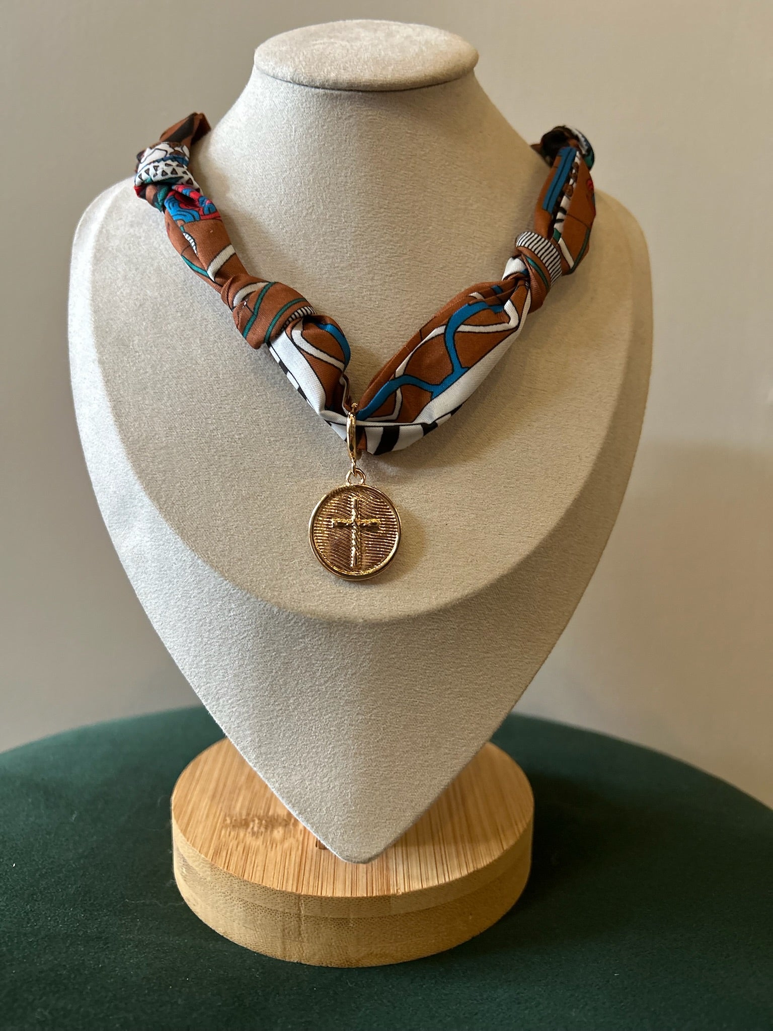 Scarf Necklace - Coin Cross Charm