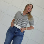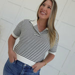 The Scotty Collared Top features a classic collared neckline and short sleeves finished with ribbed hems for added comfort. Designed with a relaxed fit, it offers ease of movement and a flattering silhouette. The ribbed trim along the hemline adds subtle detail, making this top a versatile and comfortable choice for everyday wear.