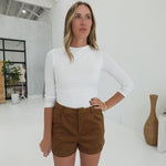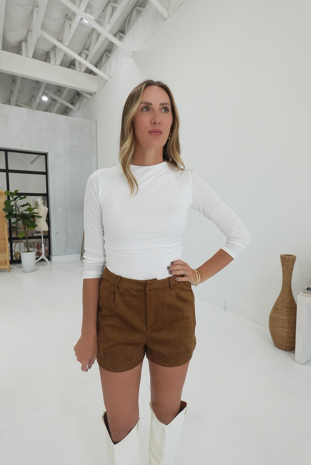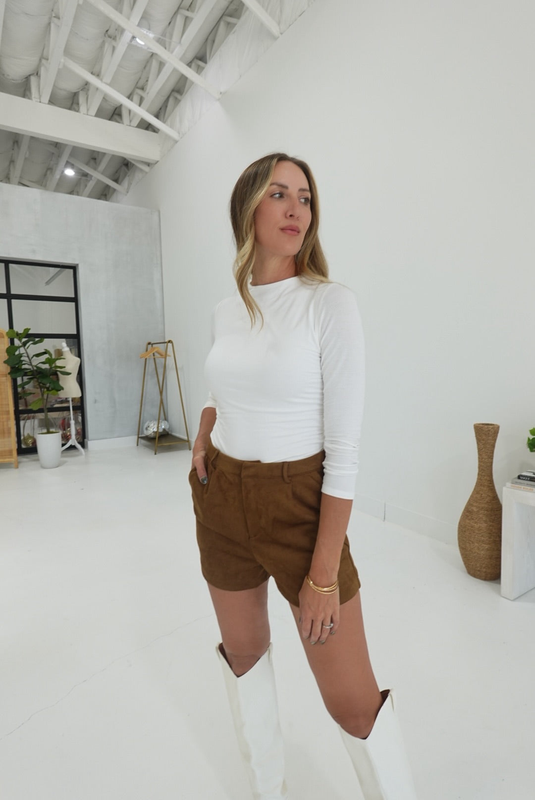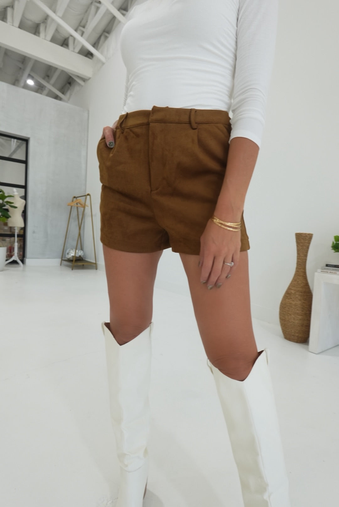 These Seasons Suede Shorts offer a flattering high-waist design that enhances your silhouette while providing comfort. Featuring practical pockets and belt loops, they combine style with functionality, making them a versatile addition to your wardrobe for any season.