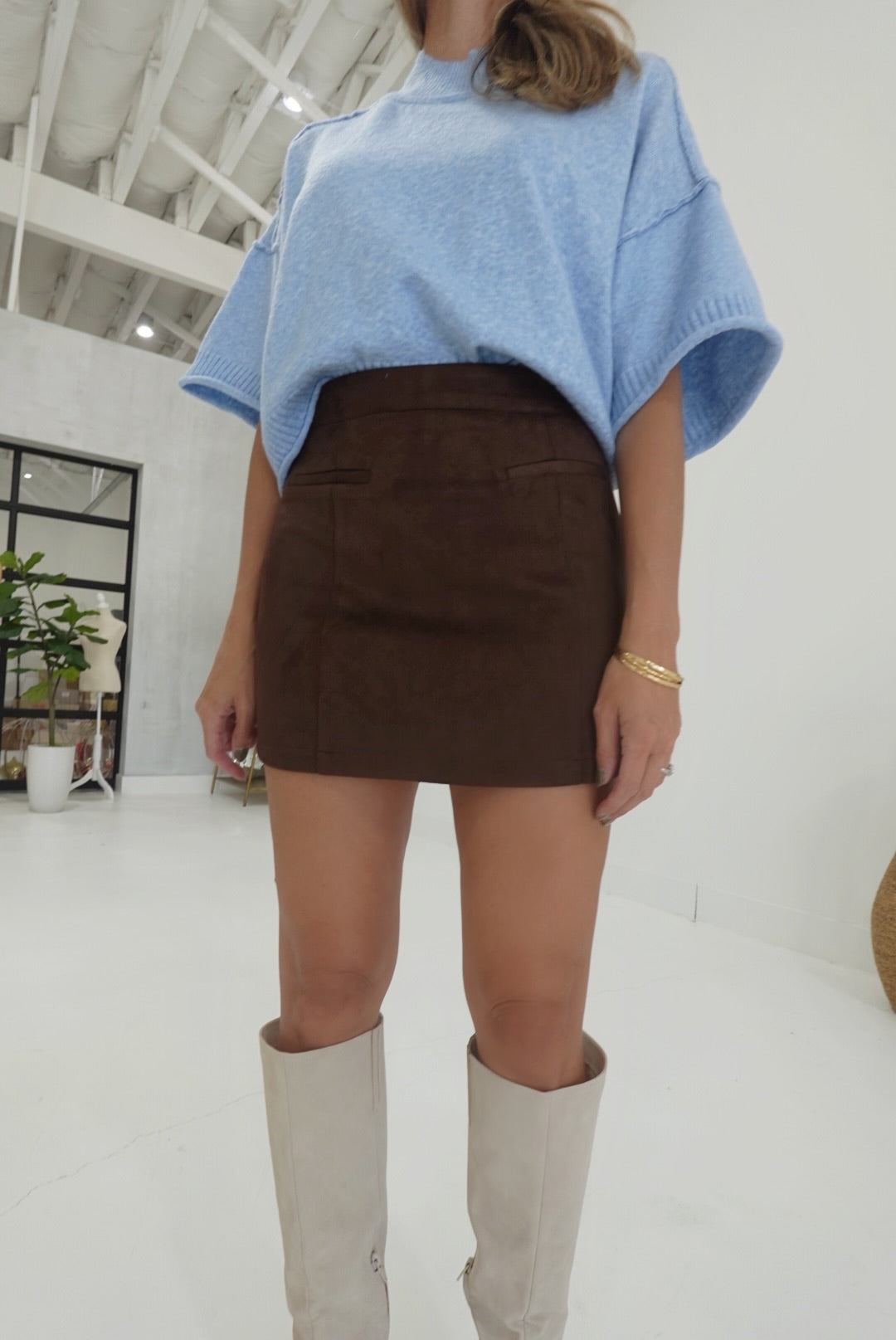 The Seekers Suede Mini Skirt in chocolate brown offers a soft, luxurious feel with its high-quality suede material. Its flattering mini length enhances your silhouette while providing versatile styling options for day or night. Comfortable and effortlessly chic, this skirt adds a warm, rich tone to your wardrobe essentials.