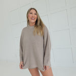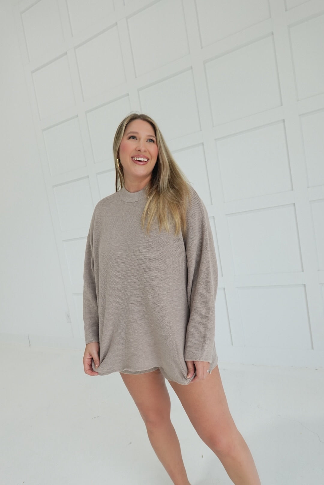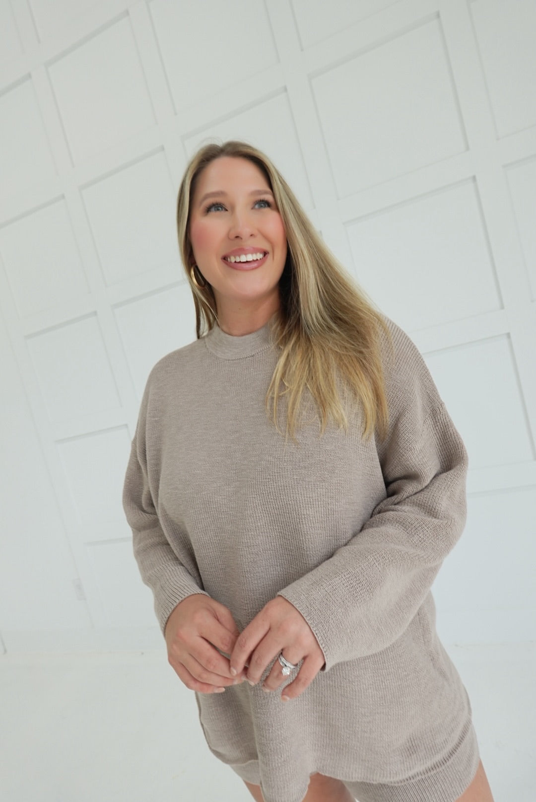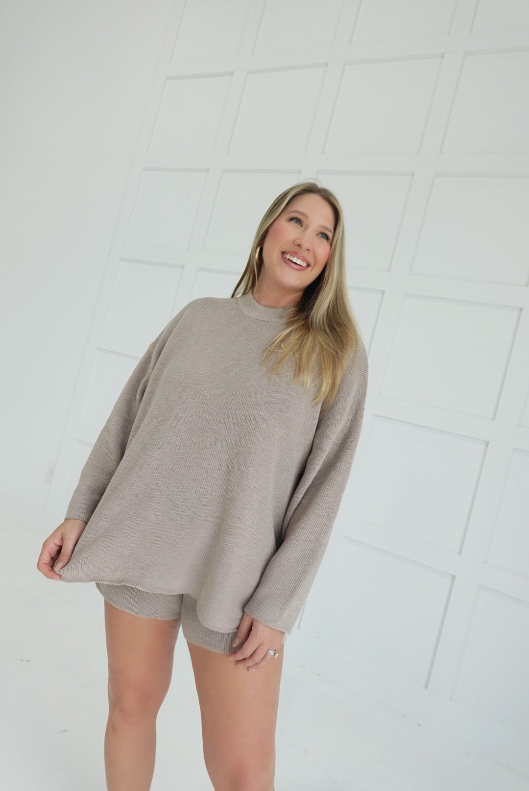 Experience cozy comfort with the Set on Saturday — Ash Mocha, featuring a round neck long sleeve sweater paired with matching shorts. This set offers effortless style and relaxed fit, perfect for lounging or casual outings. The soft fabric ensures all-day ease, making it your go-to for laid-back weekends.