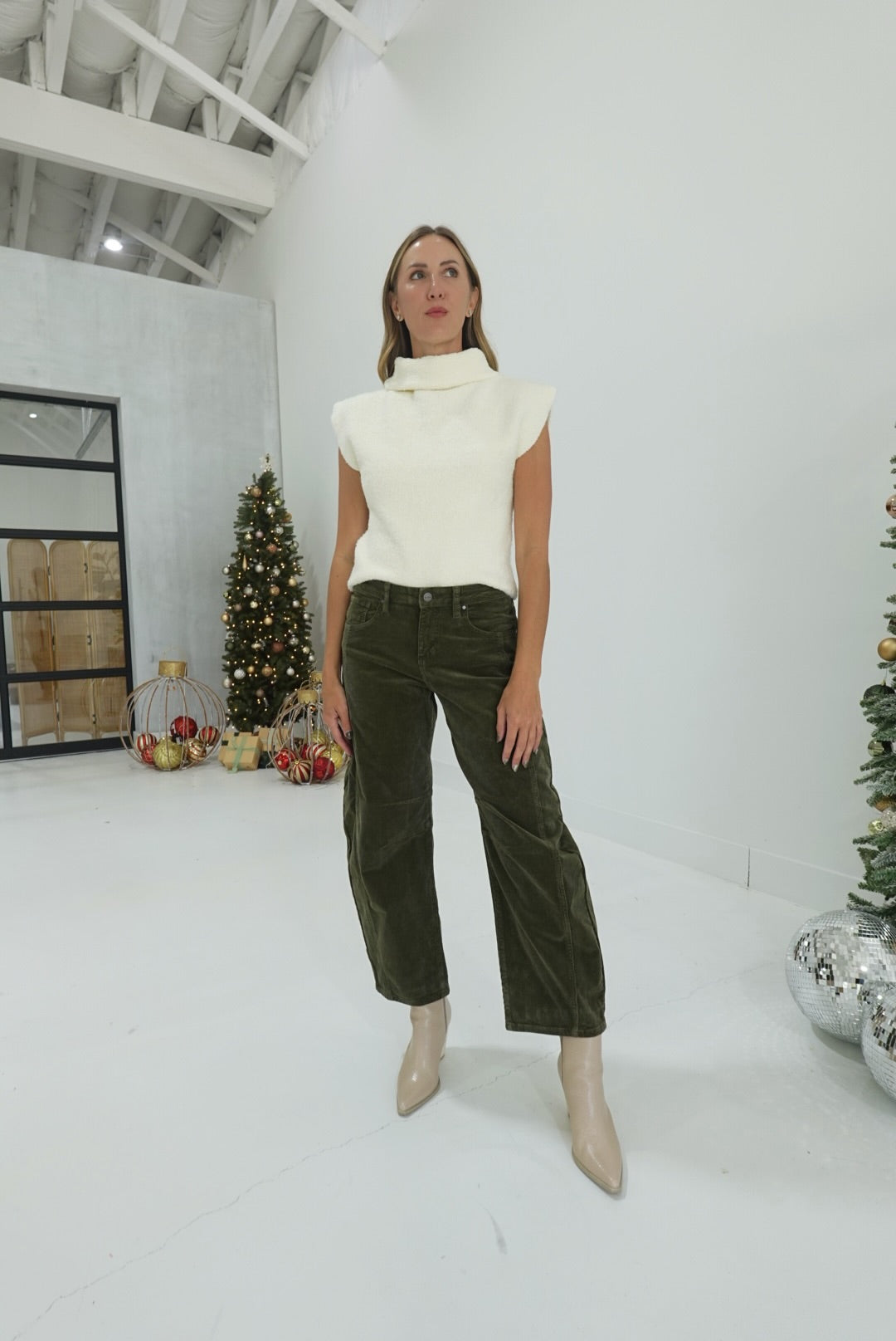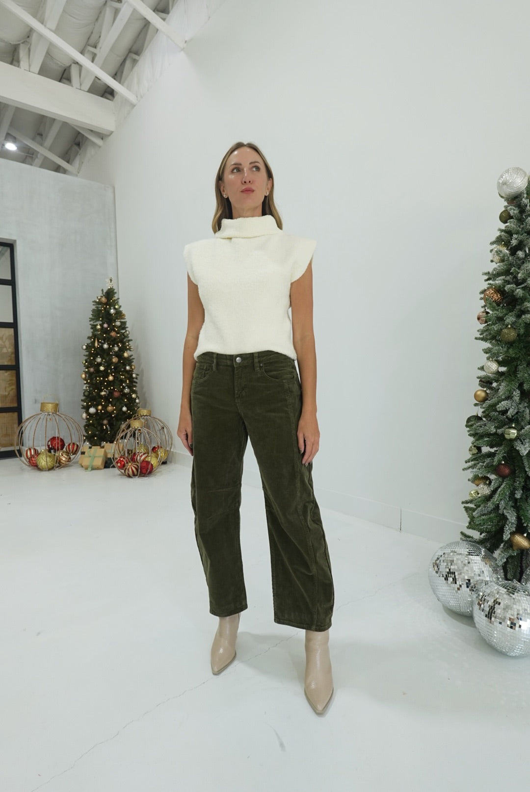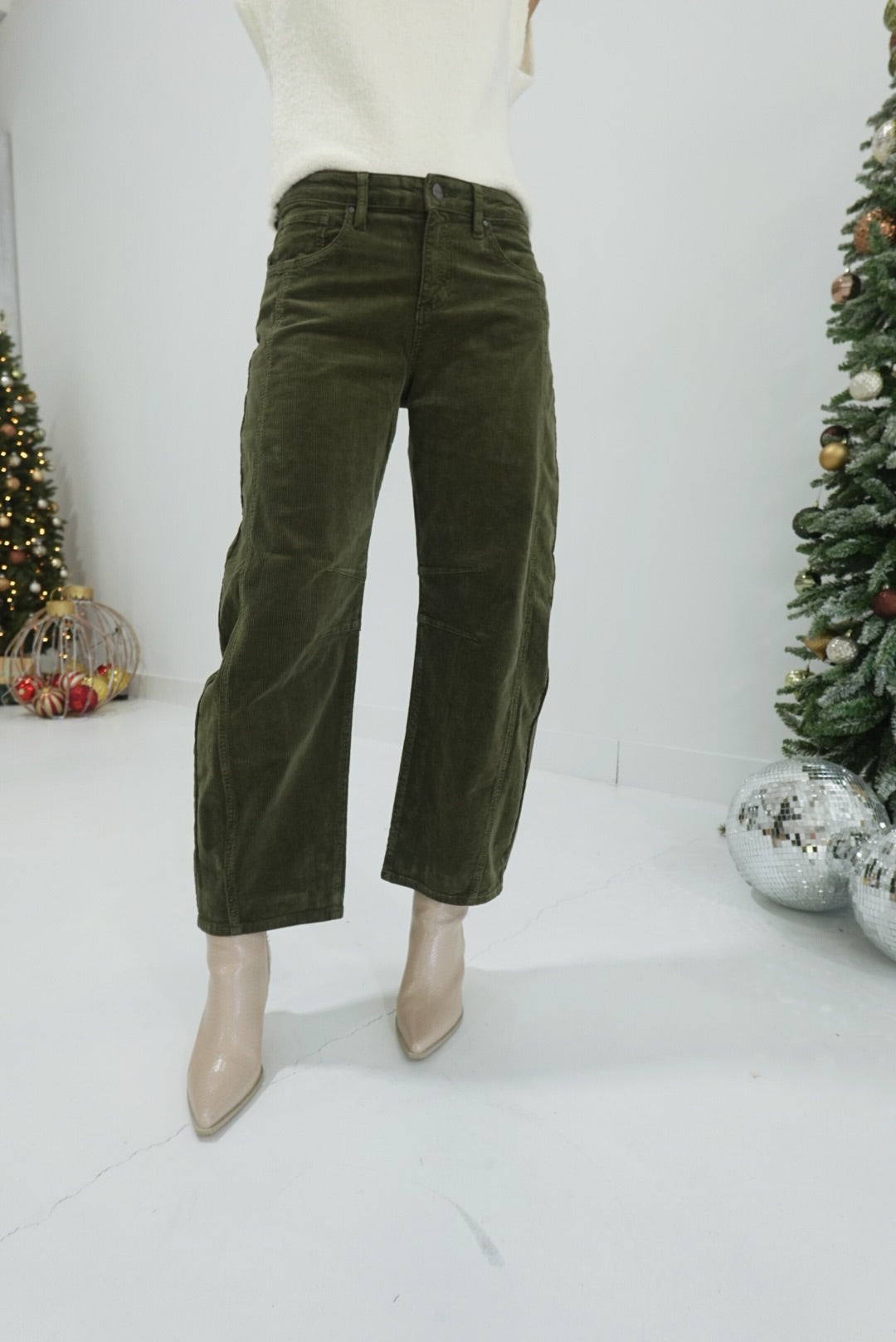 Experience ultimate comfort with the Sheridan Barrel Jeans in Moss. These slouchy ankle-length corduroy pants offer a relaxed fit that moves with you, blending casual style with soft, textured fabric. Perfect for everyday wear, they provide a cozy feel while maintaining a trendy silhouette that pairs effortlessly with your favorite tops and shoes.
