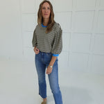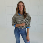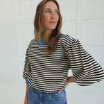 - 3/4 Puff Sleeve Stripe Top with Contrast Binding