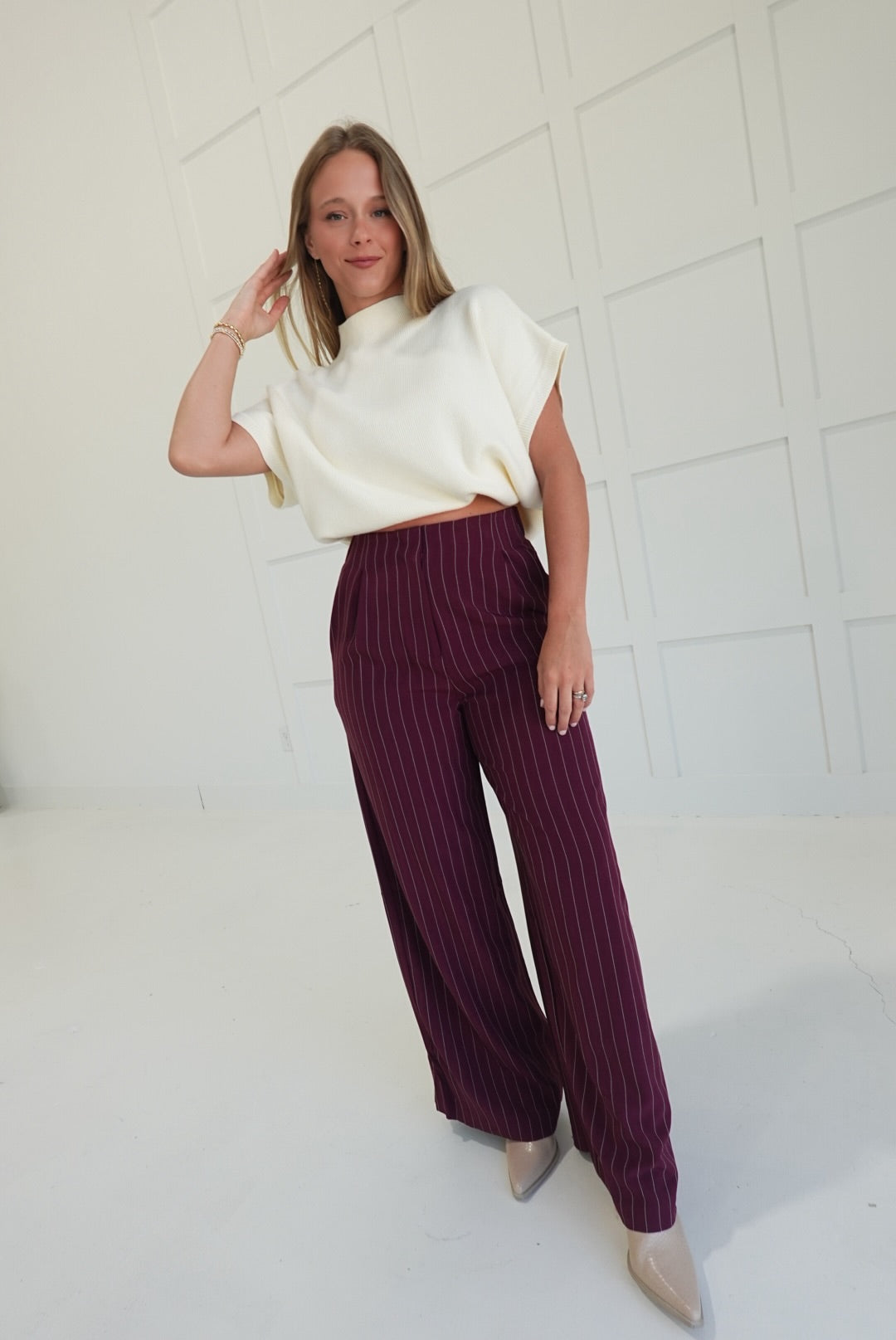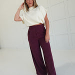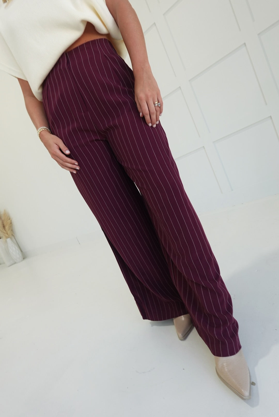 The Sibly Trouser Pants offer a flattering high-waist fit with a sophisticated pinstripe design, perfect for dressier occasions. Crafted to provide both style and comfort, these pants elevate your look while ensuring a polished silhouette throughout the day. Ideal for pairing with blouses or blazers, they deliver versatile options for work or formal settings.